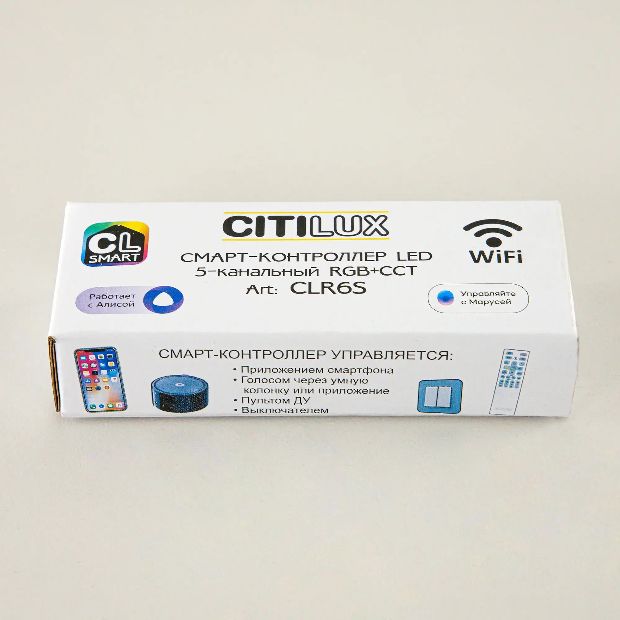 Умный Смарт Контроллер Citilux CLR6S является компонентом экосистемы CITILUX SMART. После подключения и настройки, используя домашние сети WiFi, добавляет возможность легко управлять любой светодиодной лентой со смартфона или планшета, через приложение CITILUX SMART, а также голосовыми помощниками Алиса от Яндекс и Маруся от mail.ru. Доступно управление пультом и обычным настенным выключателем.