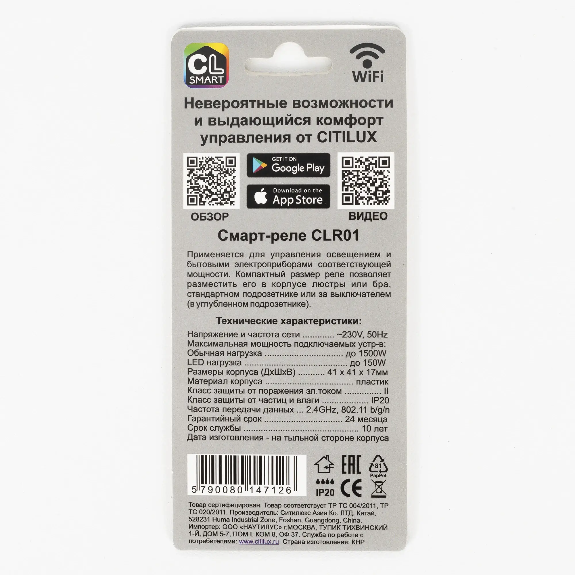 Умное одноканальное Wi-Fi реле Citilux Смарт Реле CLR01 применяется для управления освещением и бытовыми электроприборами соответствующей мощности. Компактный размер реле 41х41х17мм позволяет разместить его в корпусе люстры или бра, стандартном подрозетнике или за выключателем (в углублённом подрозетнике, подключение с нейтралью).