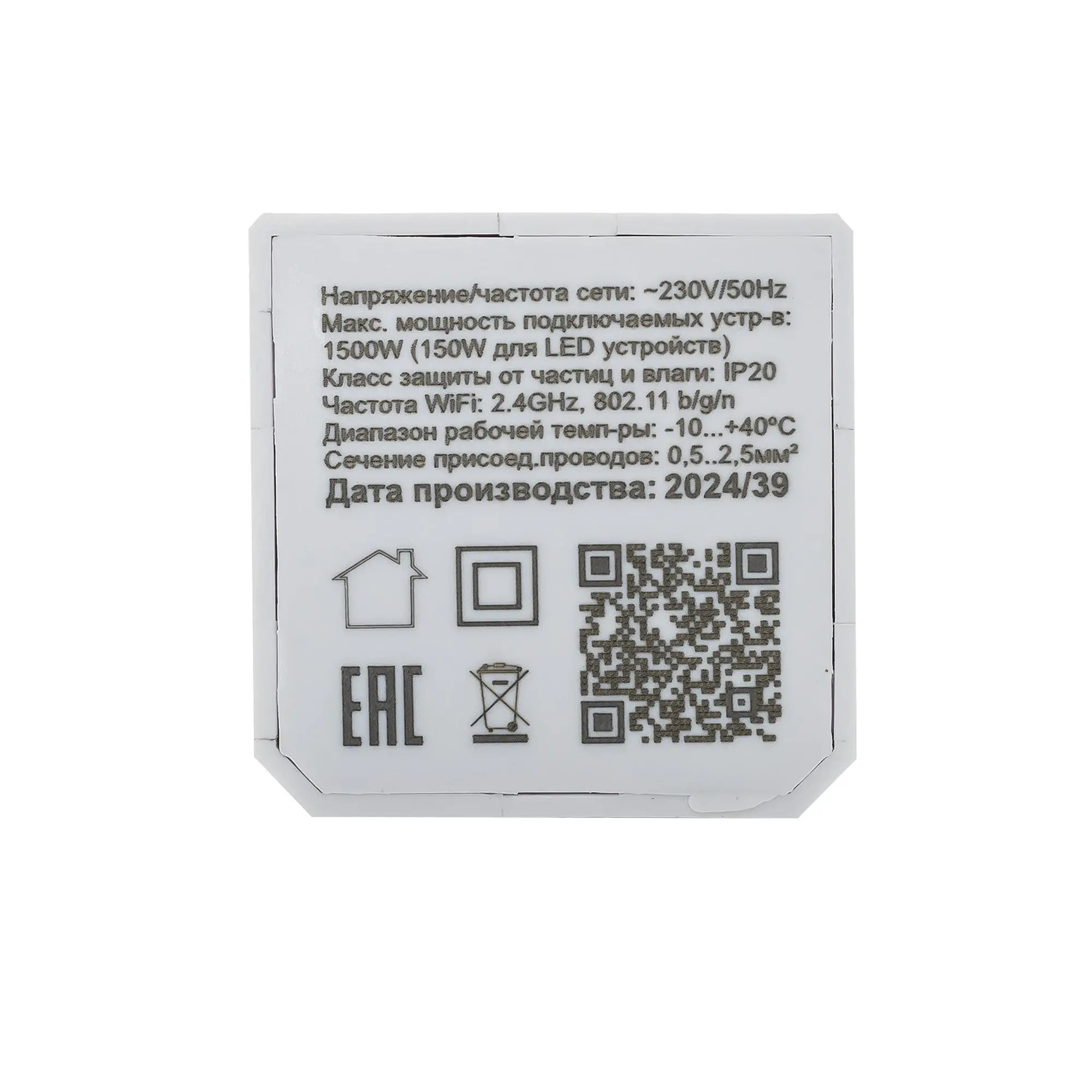 - Напряжение и частота сети – 230V, 50Hz - Максимальная мощность подключаемых устройств: - LED нагрузка до 150W; - Обычная нагрузка до – 1500W; - Класс защиты от поражения электротоком – II - Частота передачи данных – 2,4GHz, 802.11b/g/n