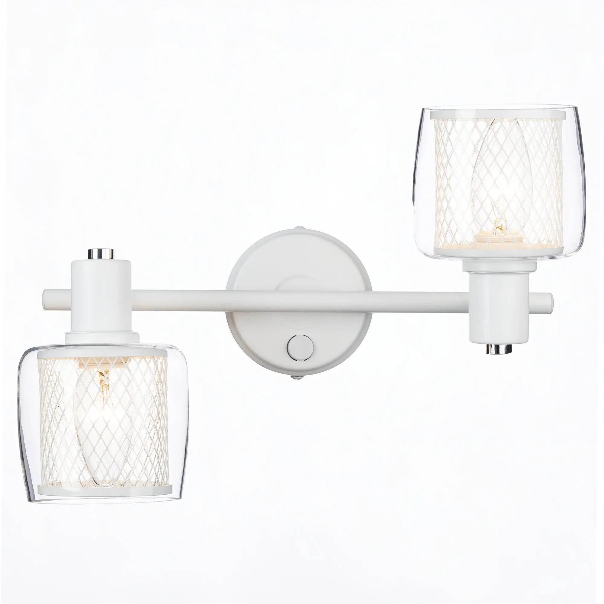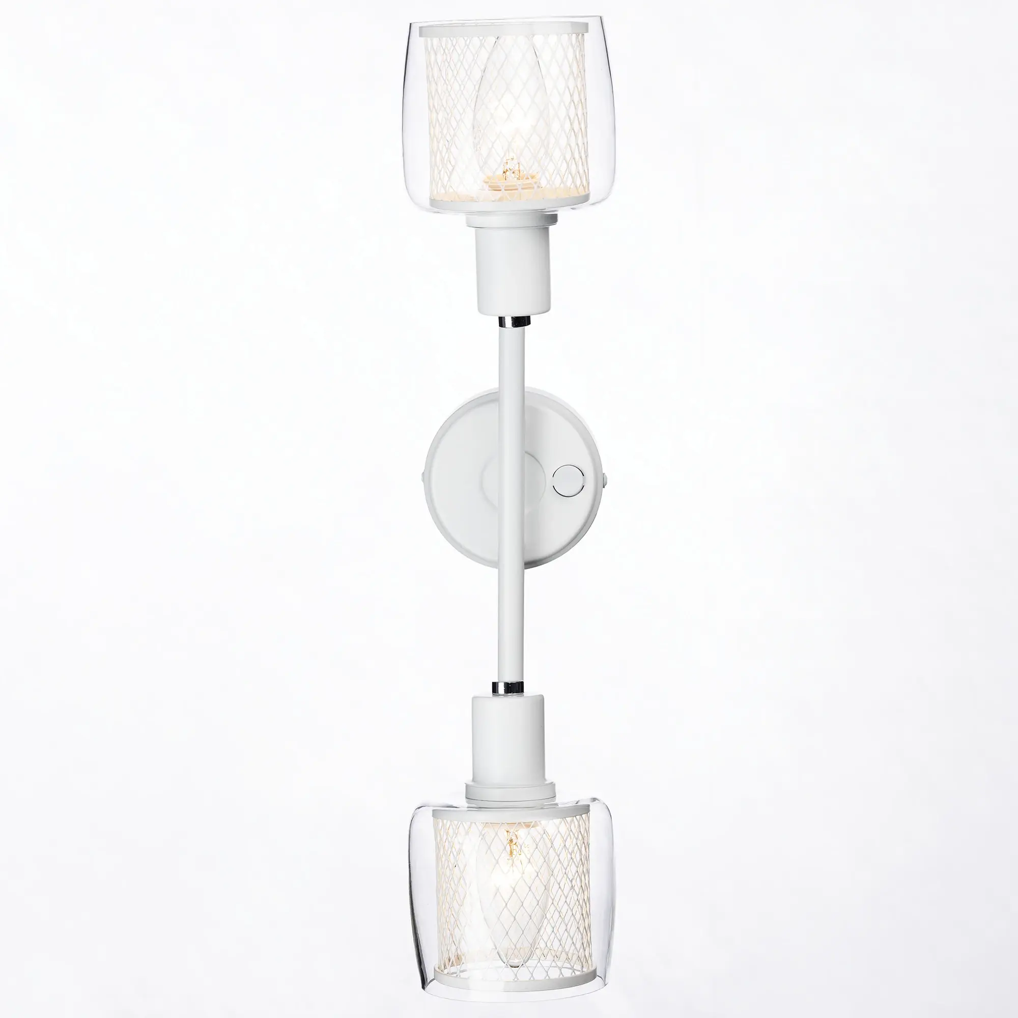 Уникальный дизайнерский плафон состоит из двух частей: внутренний металлический сетчатый плафон цилиндрической формы и внешний плафон из прозрачного стекла. Такое сочетание обеспечивает равномерное распределение света и придает светильнику особую изысканность.