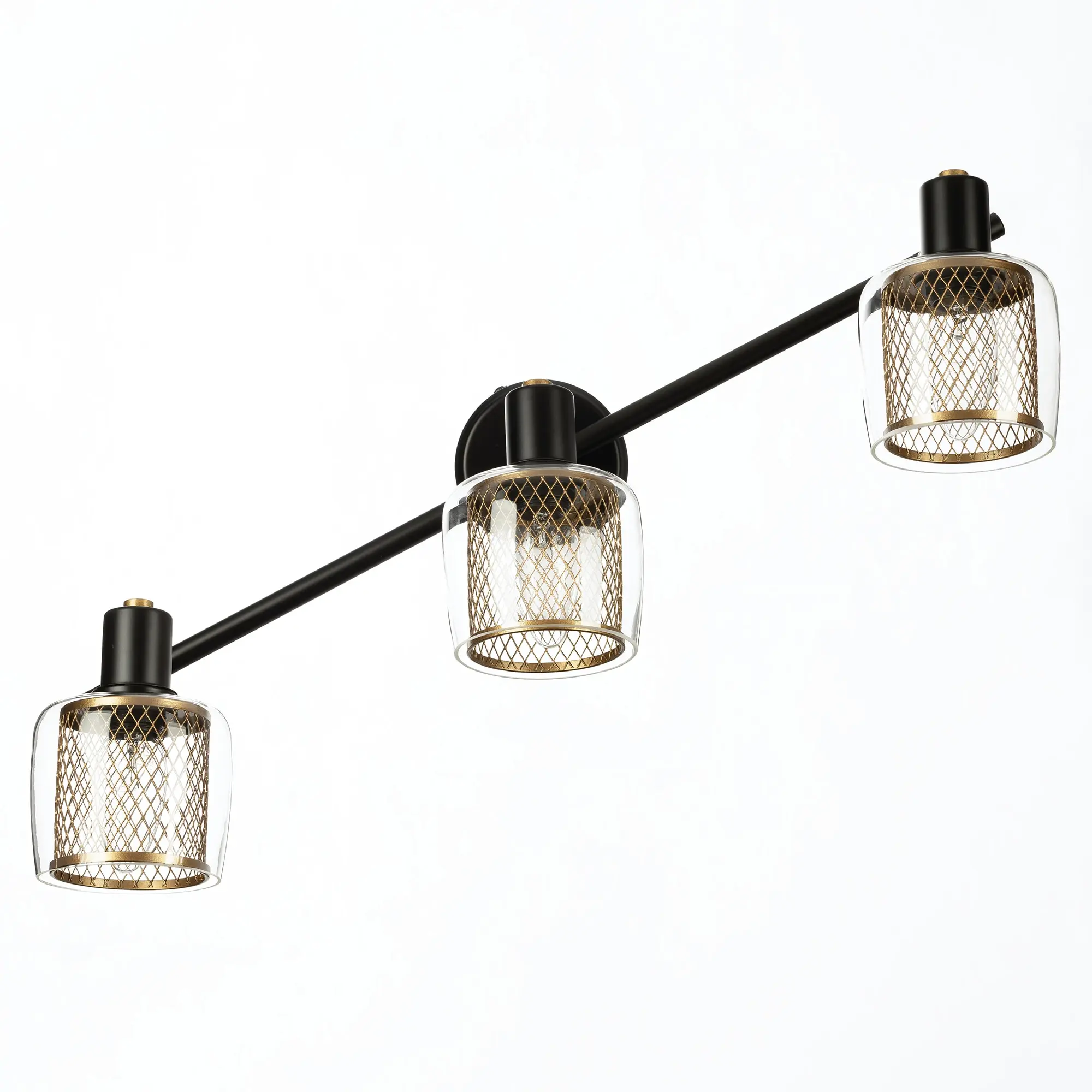Уникальный дизайнерский плафон состоит из двух частей: внутренний металлический сетчатый плафон цилиндрической формы цвета бронзы и внешний плафон из прозрачного стекла. Такое сочетание обеспечивает равномерное распределение света и придает светильнику особую изысканность.
