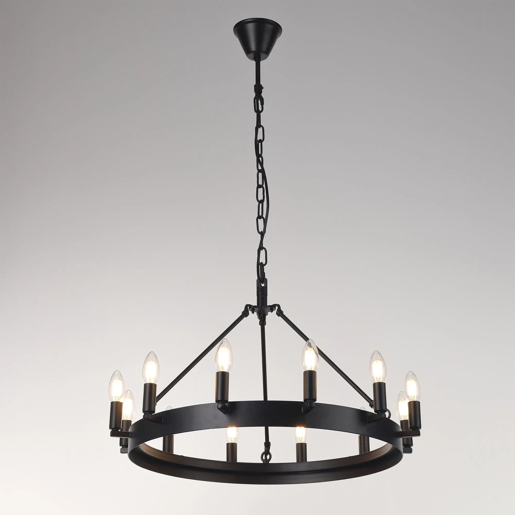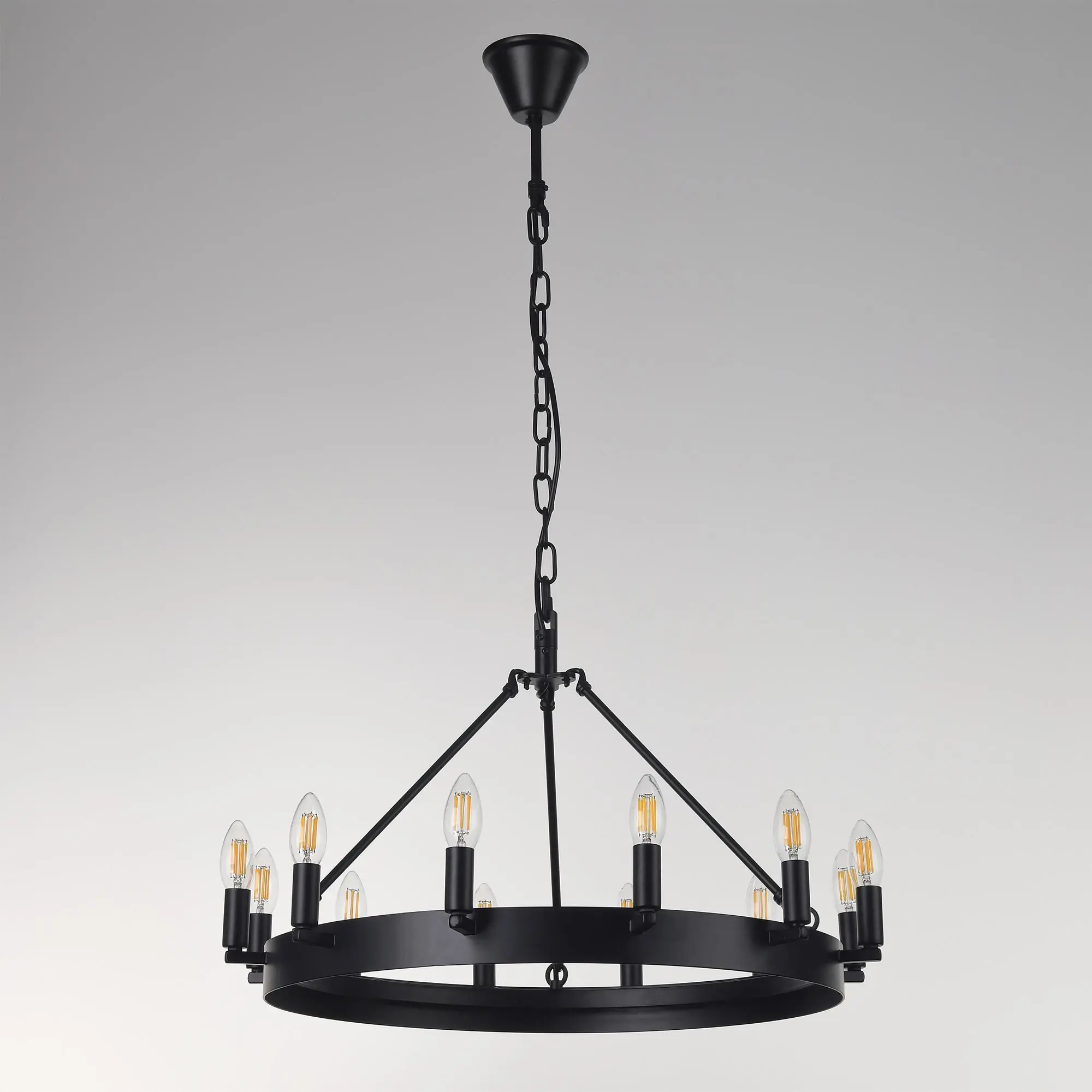 Люстра на цепи регулируется по высоте в диапазоне от 60см до 1,5м, что позволяет настроить светильник для оптимального освещения помещения. Она также оснащена 12 лампами Е14 и может осветить до 31м², что делает ее идеальным выбором для больших залов, гостиных, столовых и загородных домов.