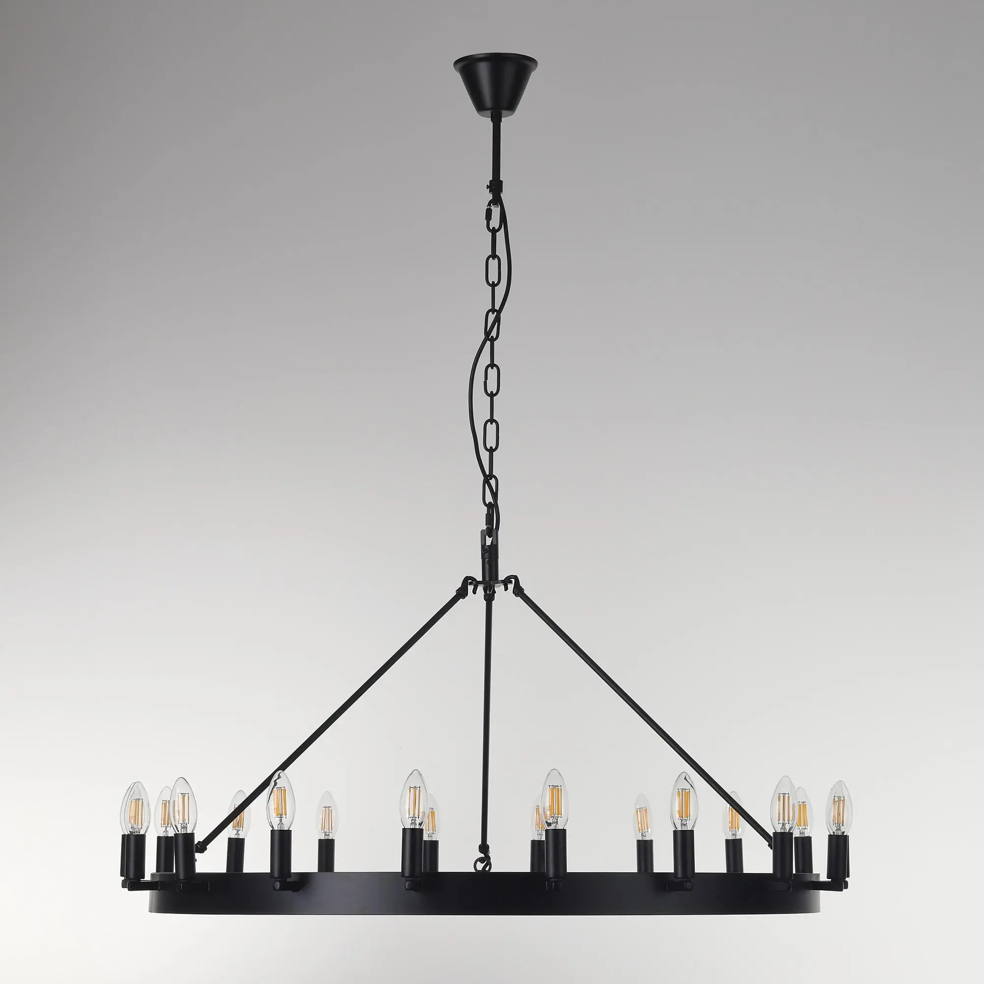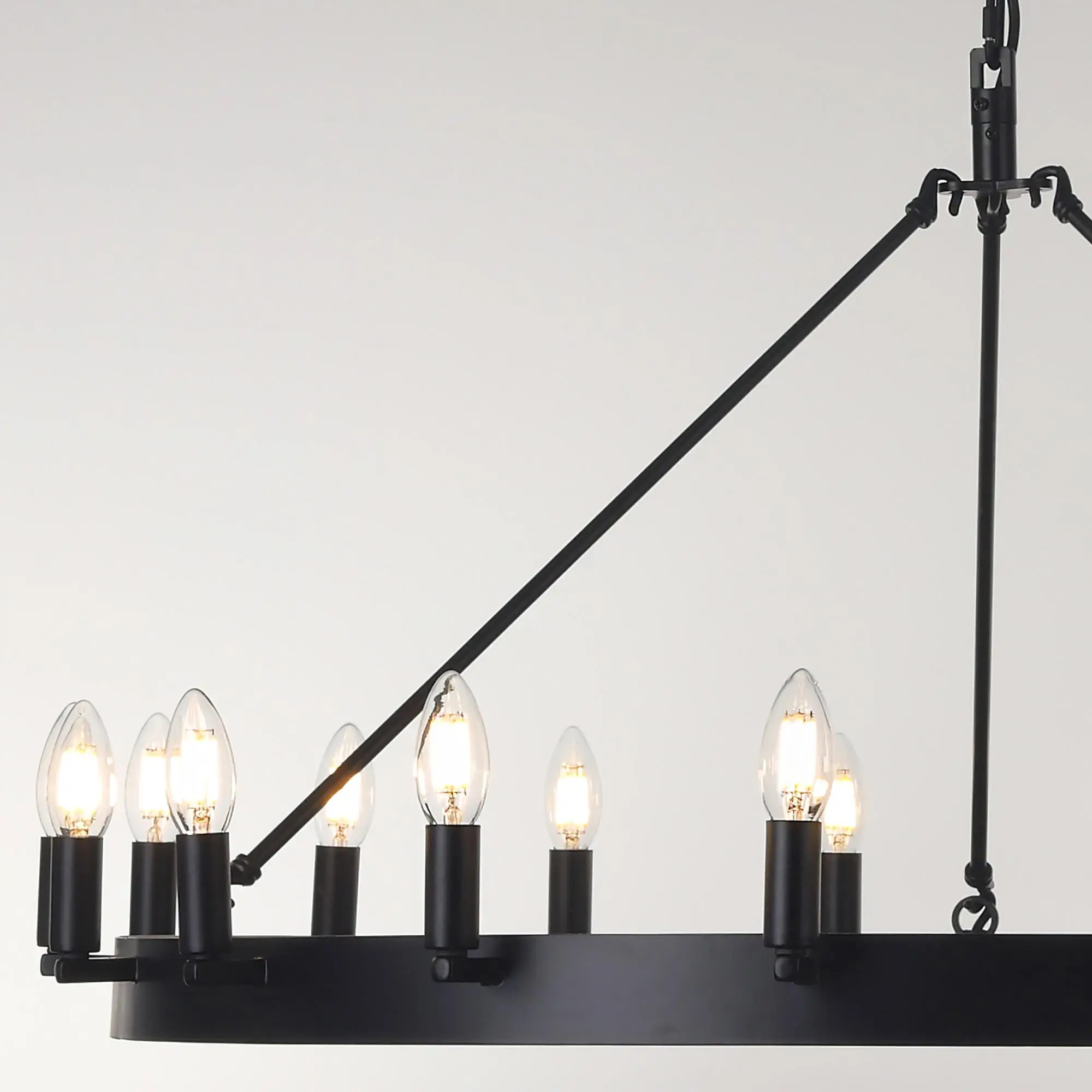 Подвесная люстра на цепи Citilux Смитсон CL470118 идеальное решение для тех, кто ищет настоящую замковую люстру. Светильник металлический в виде широкого кольца со свечами, цвет чёрный матовый.