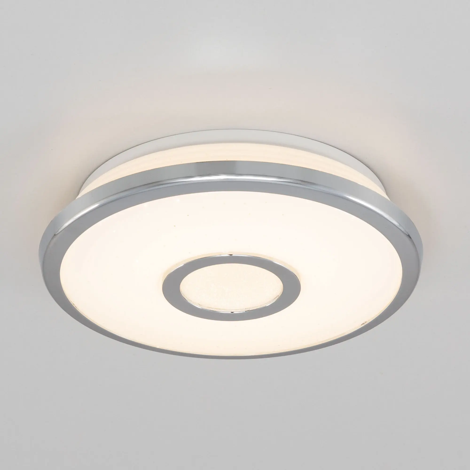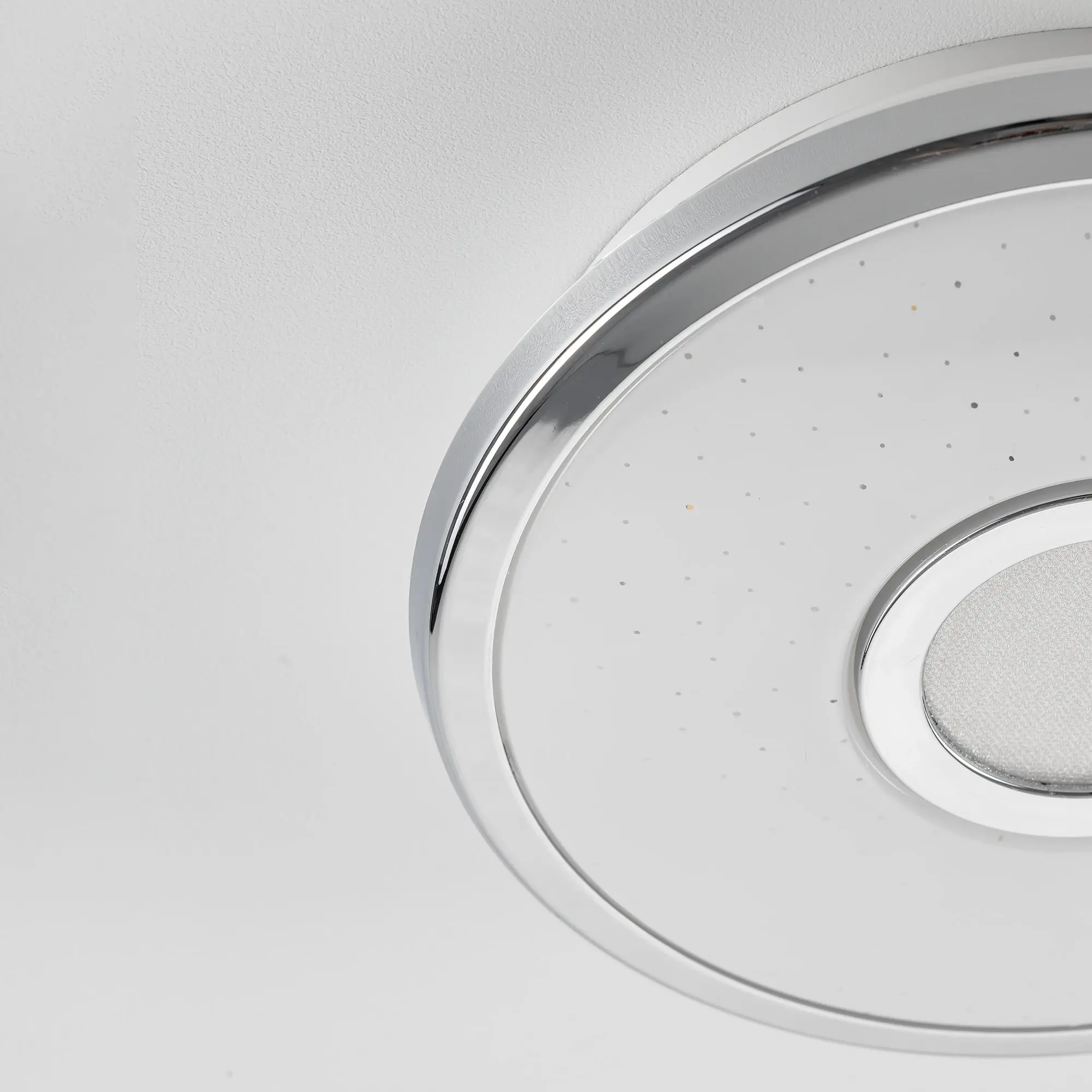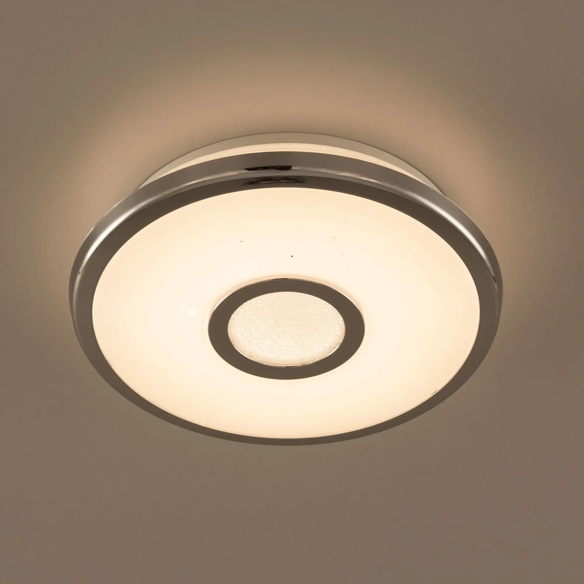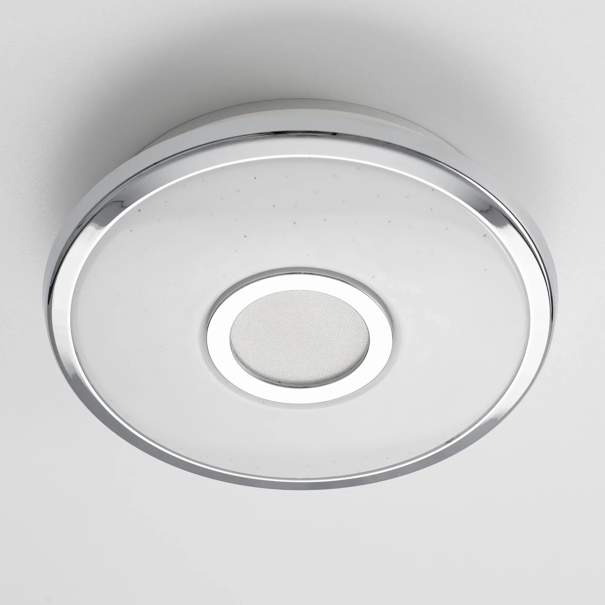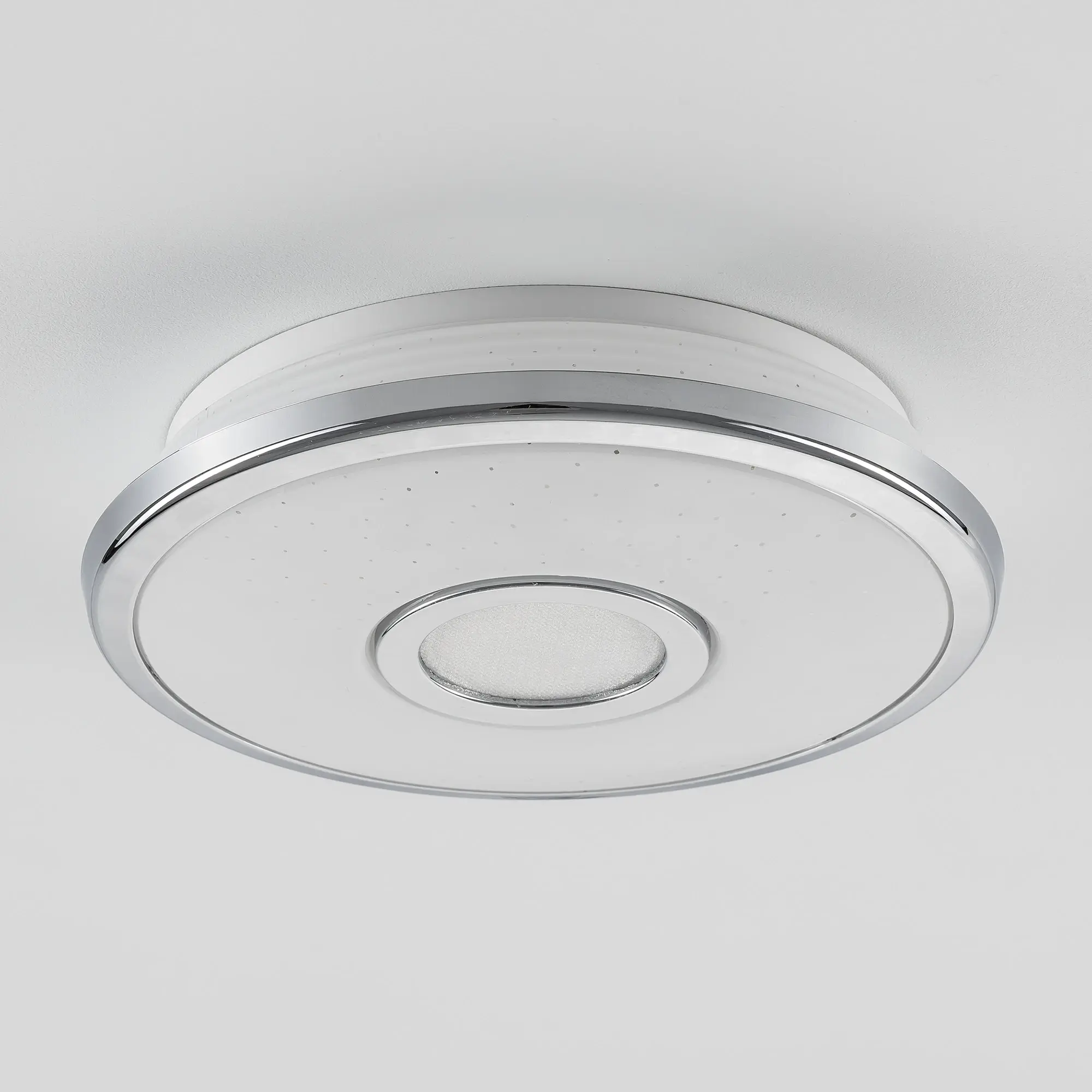 Светильник накладной светодиодный Citilux Старлайт CL70310 выполнен в современном стиле. Плафон белый глянцевый, с эффектом звездного неба и декоративными хромированными элементами. Светильник плоский, круглой формы, корпус из ударопрочного полимера, рассеиватель из оптического полимера. Мощность 12Вт, световой поток 800Лм, цветовая температура 3000К. Встроенный ступенчатый диммер 100-40-15%, управляется обычным настенным выключателем. Свет без мерцания и пульсаций, безопасен для глаз. Диаметр 21см, высота 5см, осветит до 4м²