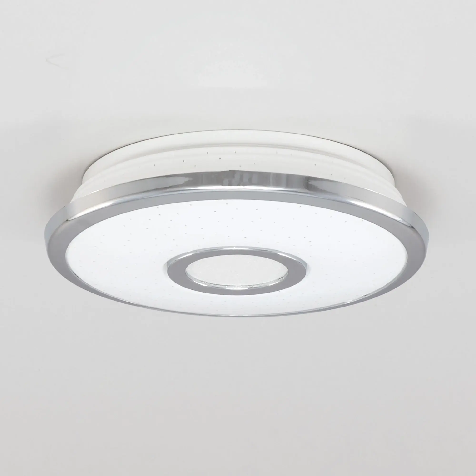 Светильник накладной светодиодный Citilux Старлайт CL70310 выполнен в современном стиле. Плафон белый глянцевый, с эффектом звездного неба и декоративными хромированными элементами. Светильник плоский, круглой формы, корпус из ударопрочного полимера, рассеиватель из оптического полимера. Мощность 12Вт, световой поток 800Лм, цветовая температура 3000К. Встроенный ступенчатый диммер 100-40-15%, управляется обычным настенным выключателем. Свет без мерцания и пульсаций, безопасен для глаз. Диаметр 21см, высота 5см, осветит до 4м².,