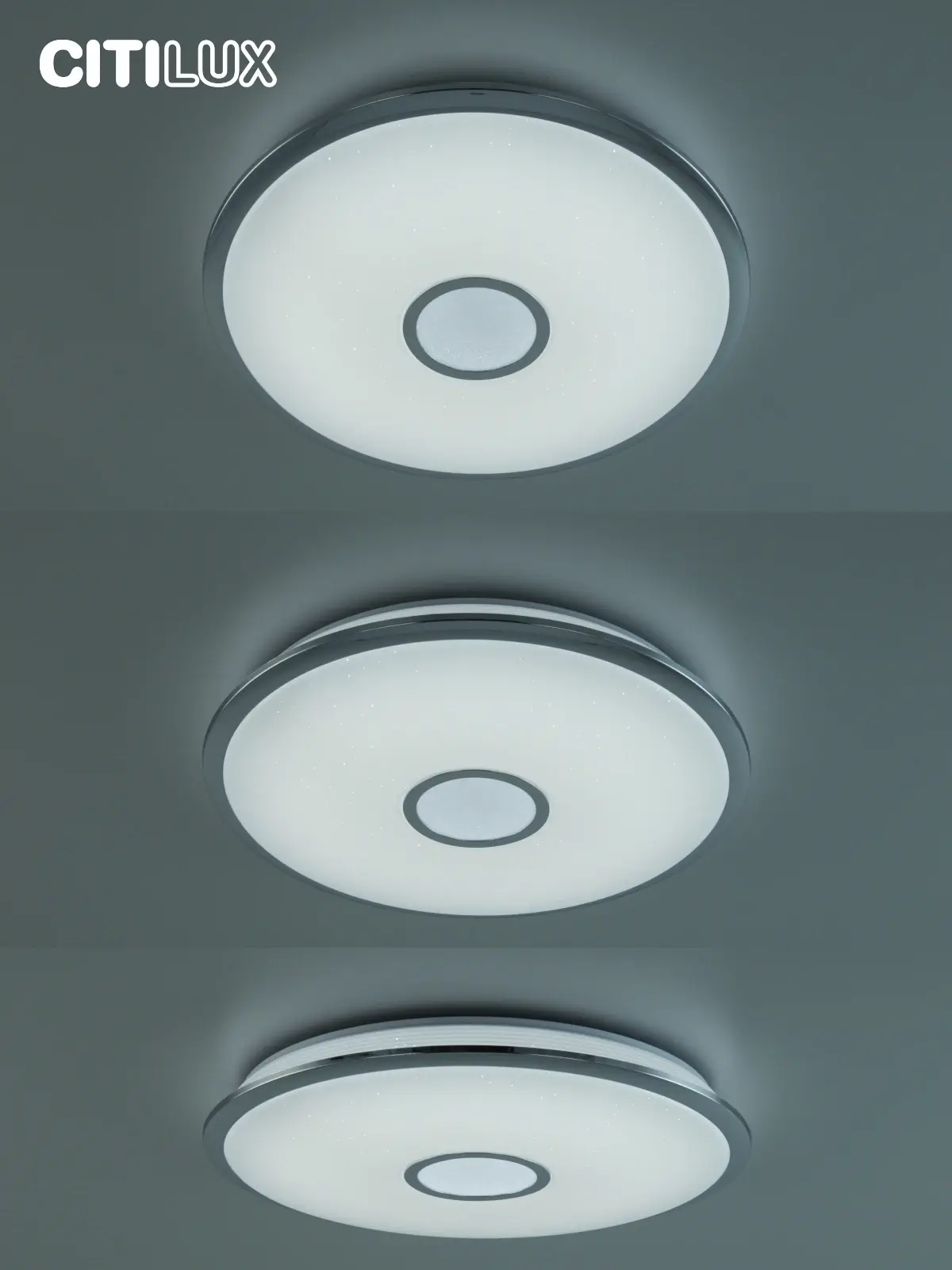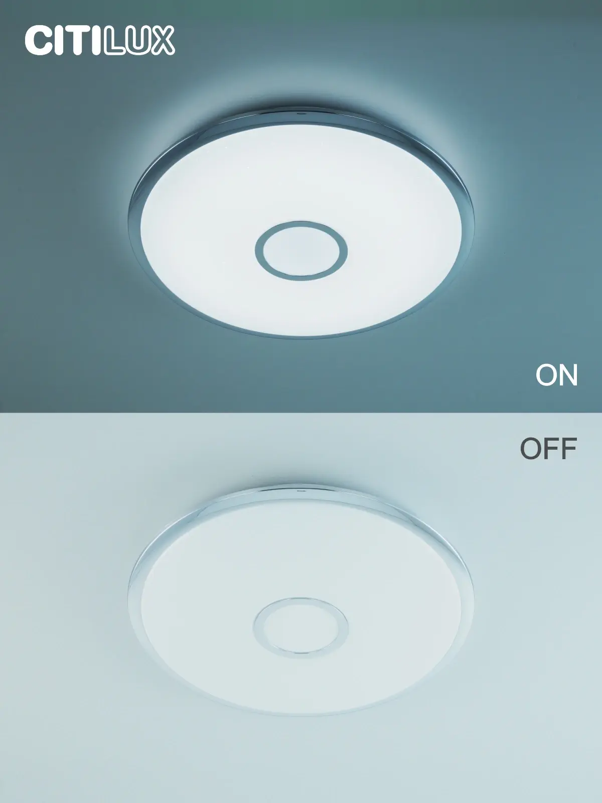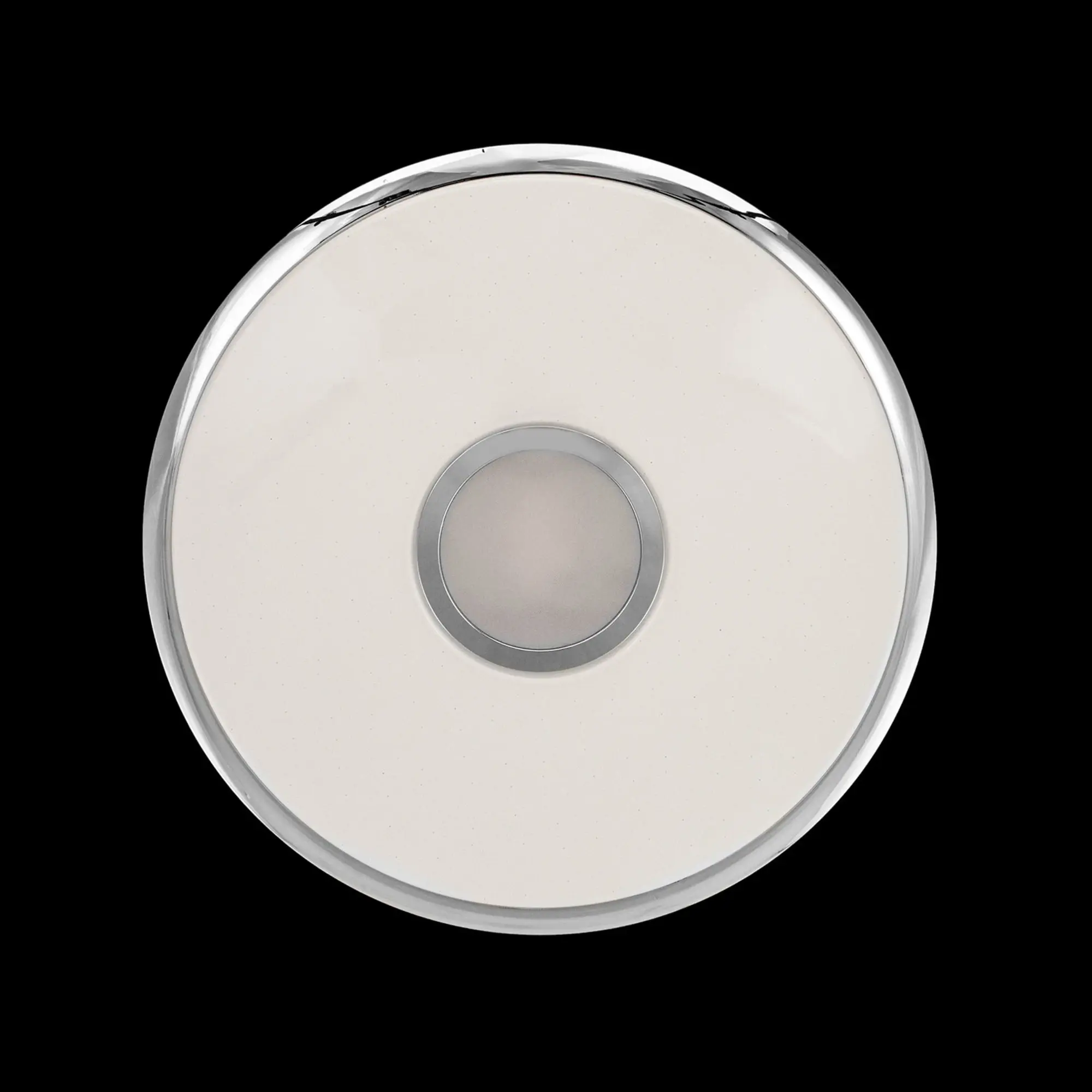 Выпускается с белым глянцевым плафоном с эффектом звездного неба и декоративными элементами в цвете хром. Светильник накладной, круглой формы, крепление подходит для всех типов потолков, в том числе натяжных.