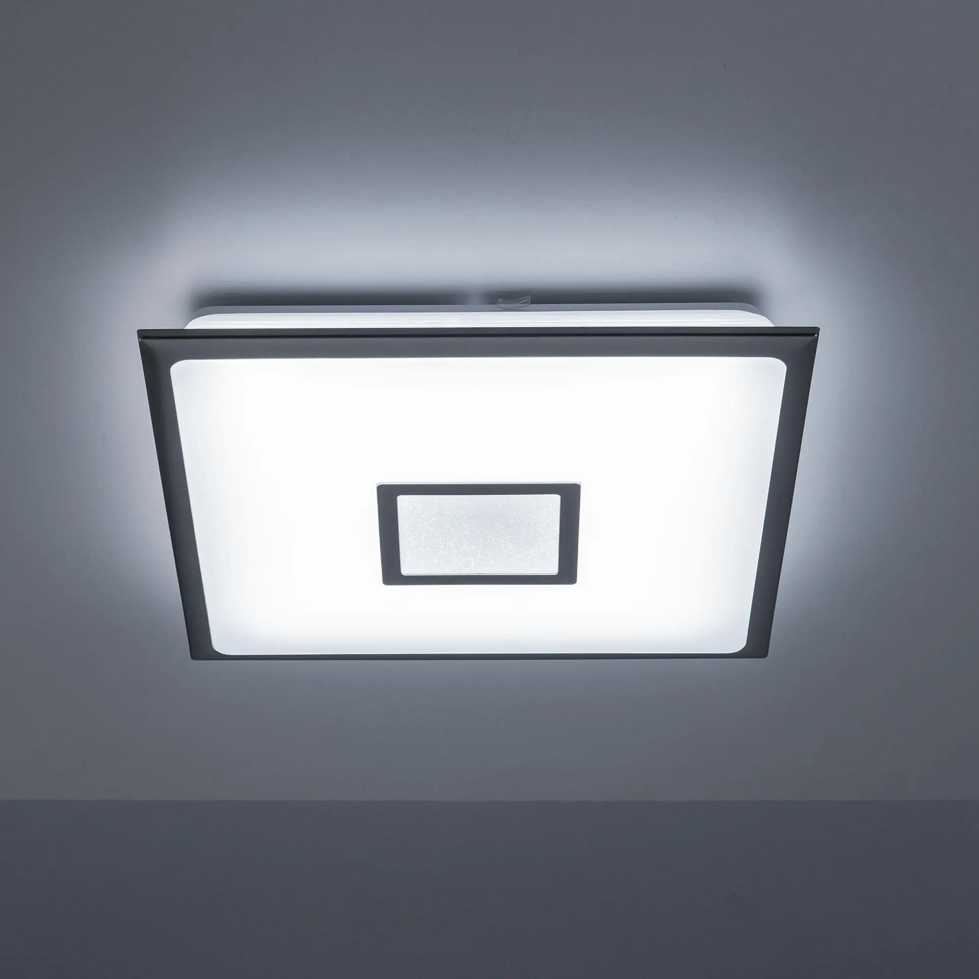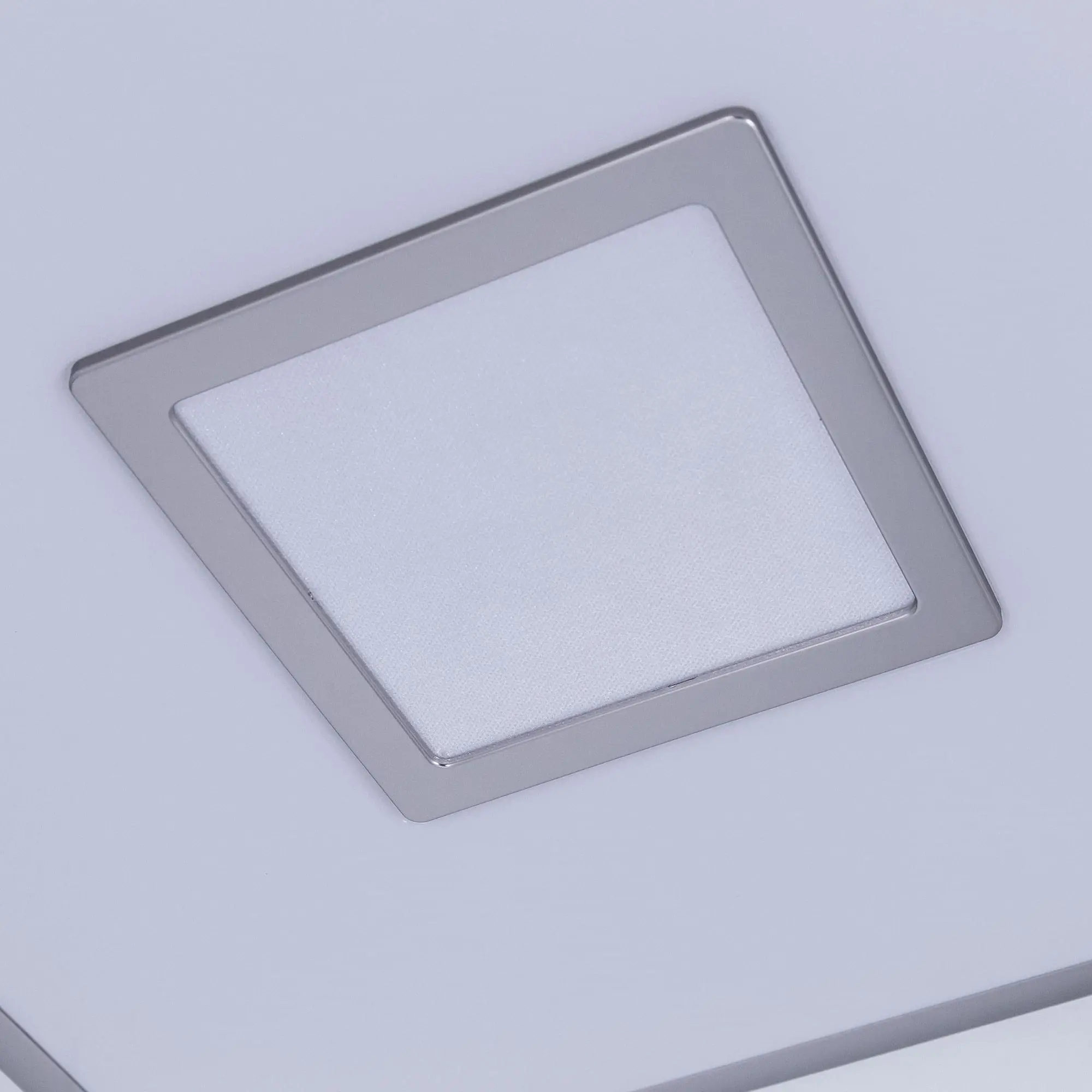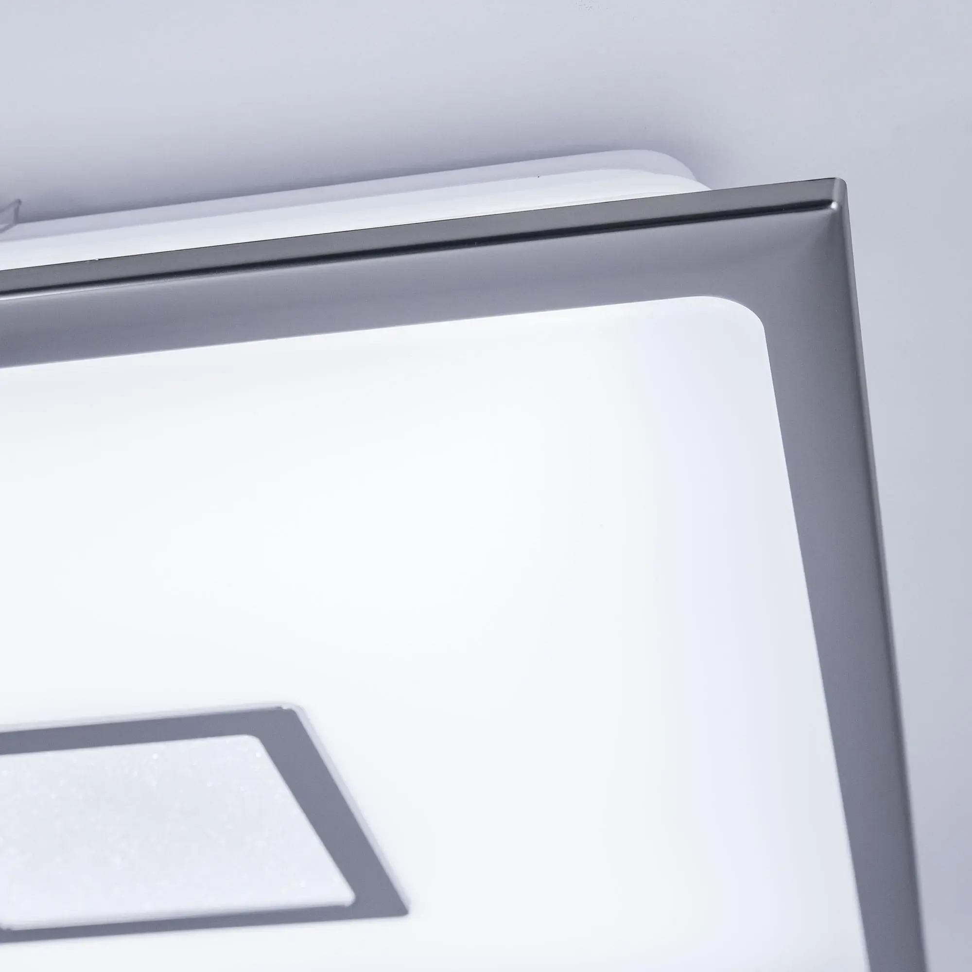 Выпускается с белым матовым плафоном и декоративными элементами в цвете матовый хром. Светильник накладной, квадратной формы, крепление подходит для всех типов потолков, в том числе натяжных.