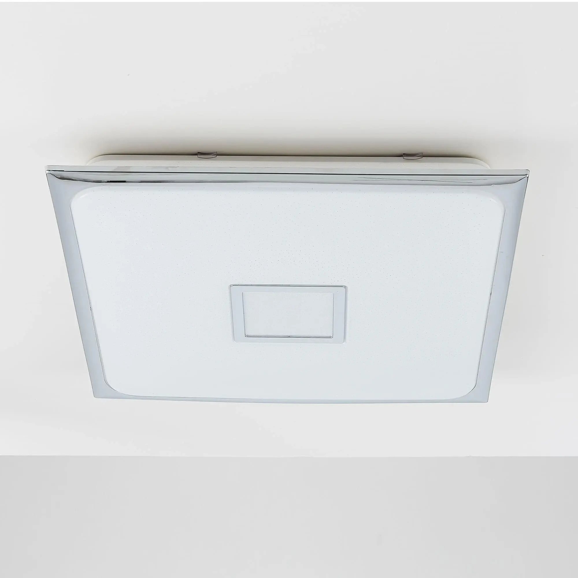 Выпускается с белым глянцевым плафоном с эффектом звездного неба и декоративными элементами в цвете хром. Светильник накладной, квадратной формы, крепление подходит для всех типов потолков, в том числе натяжных.