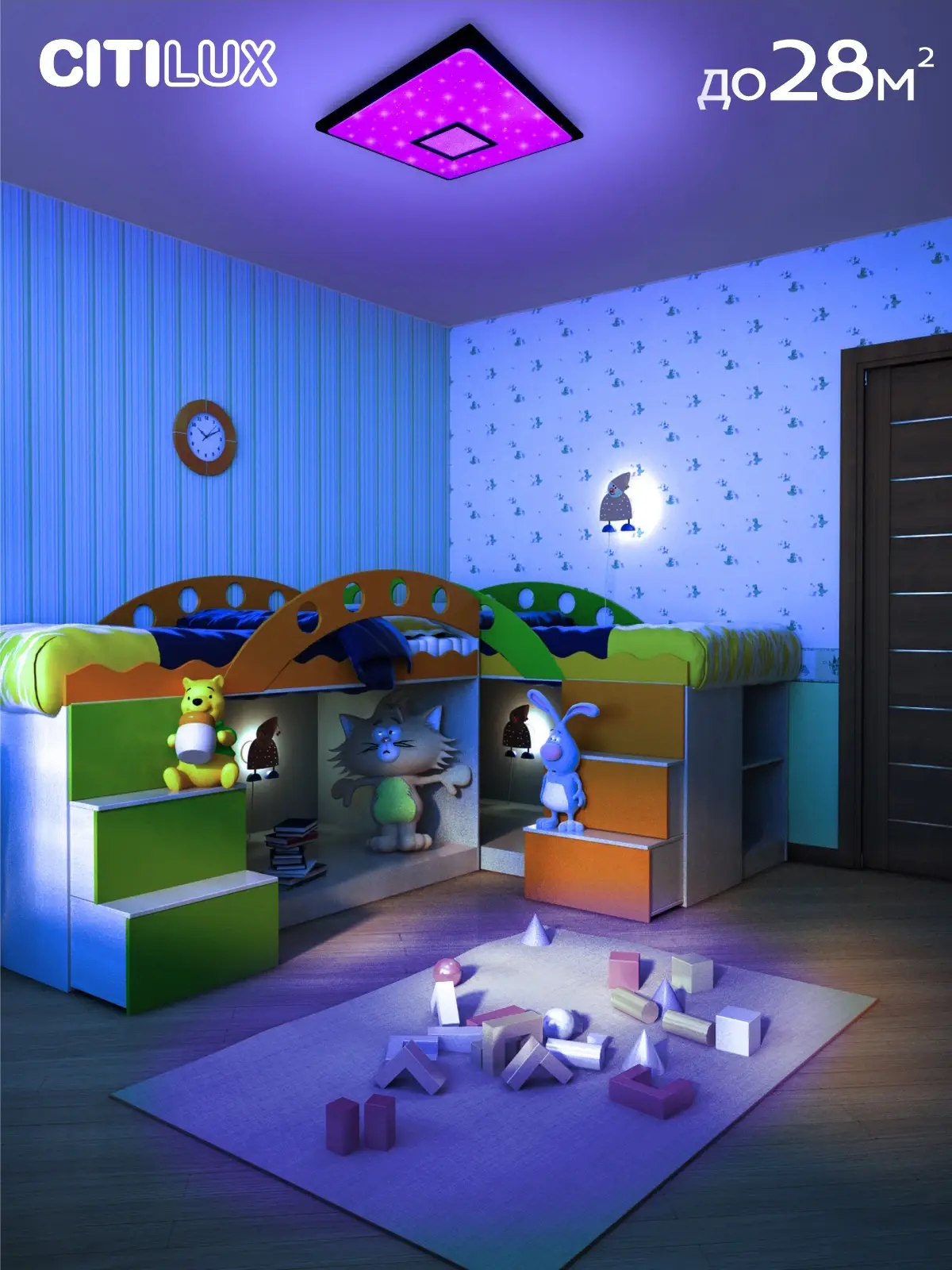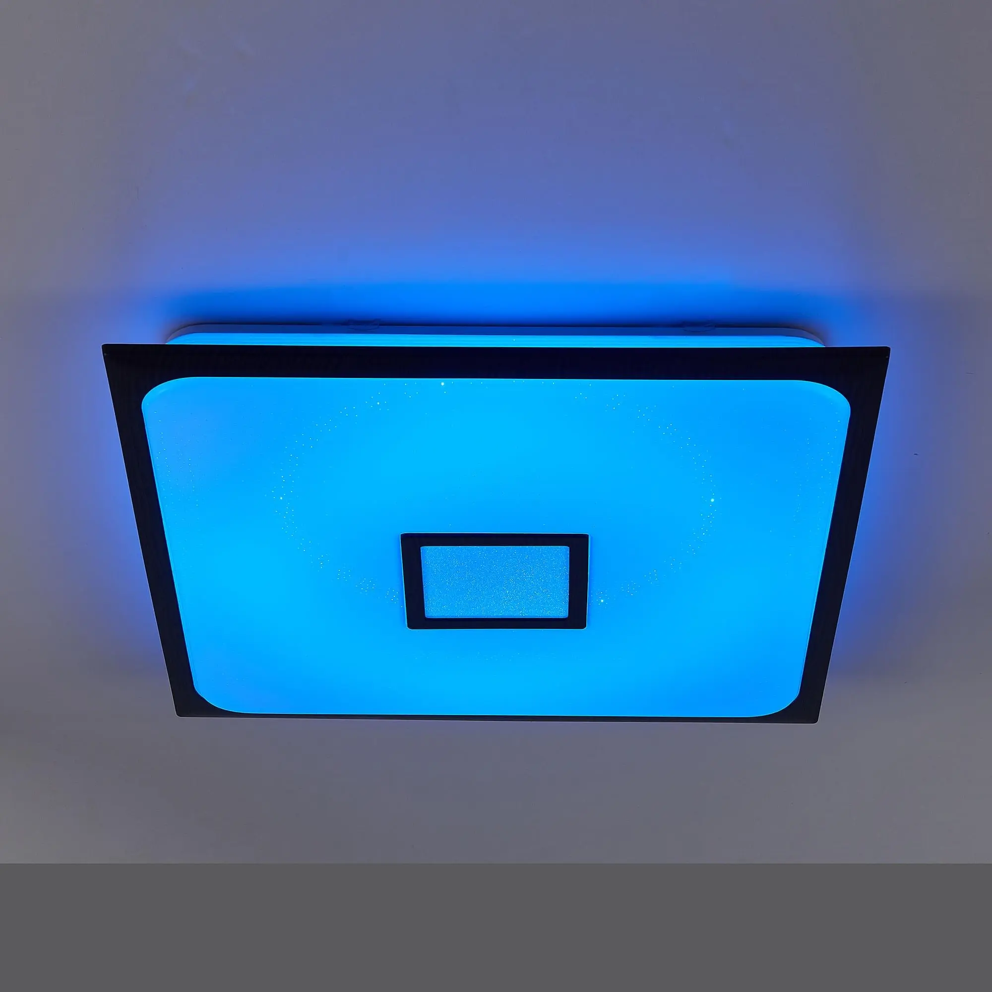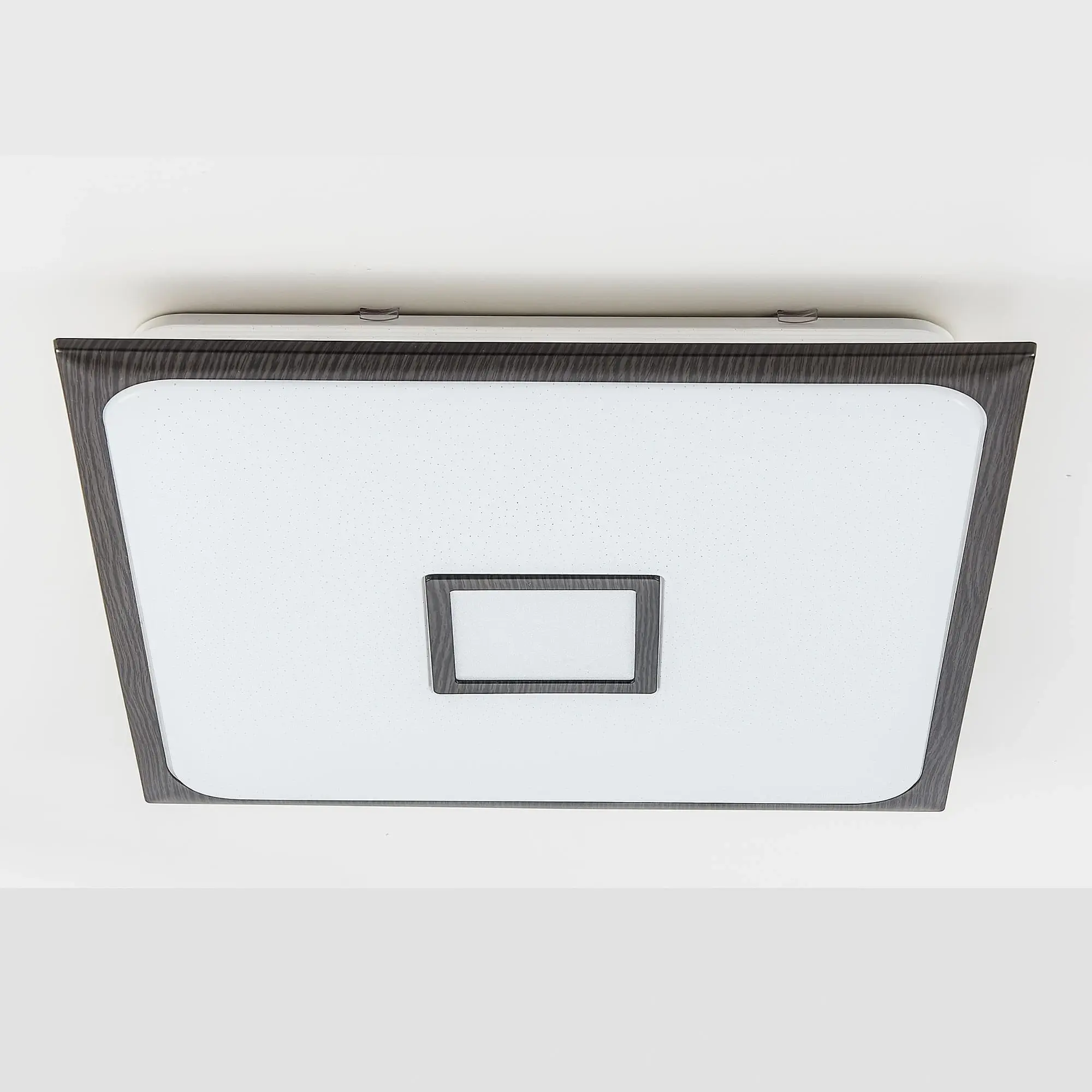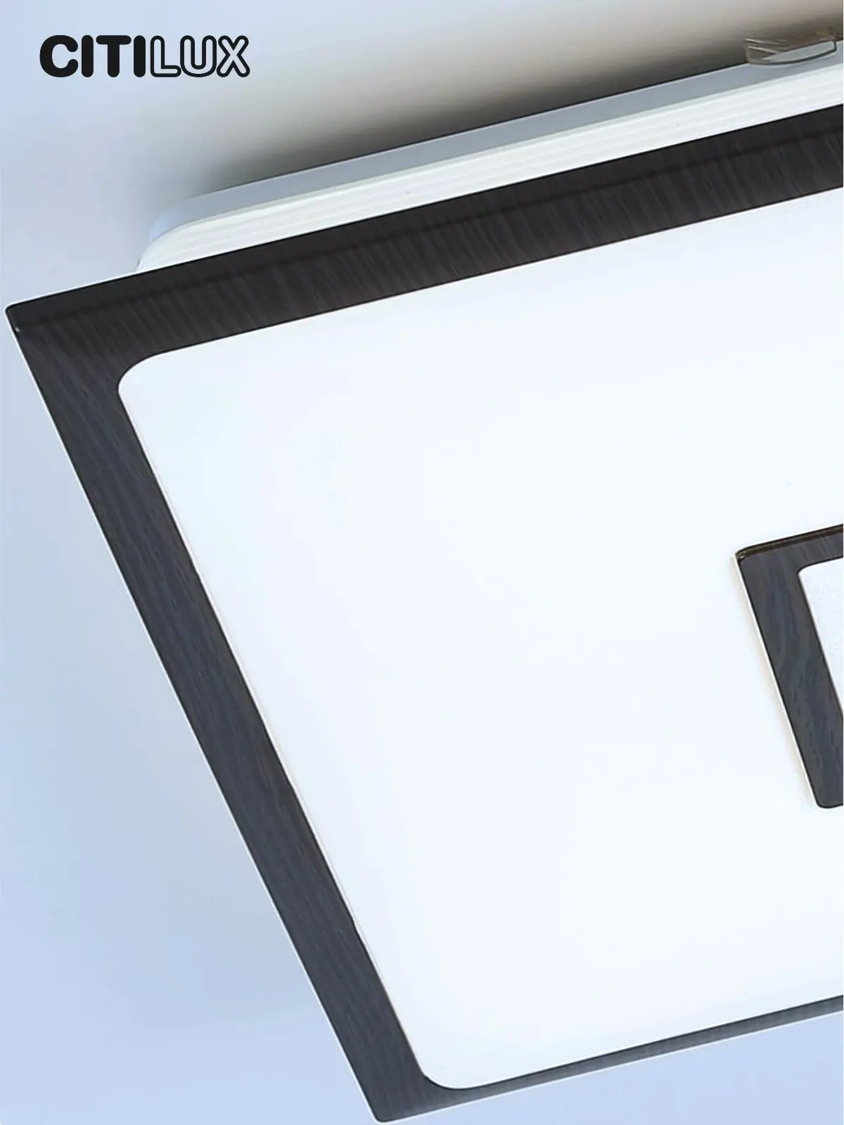 Выпускается с белым глянцевым плафоном с эффектом звездного неба и декоративными элементами цвета венге. Светильник накладной, квадратной формы, крепление подходит для всех типов потолков, в том числе натяжных.