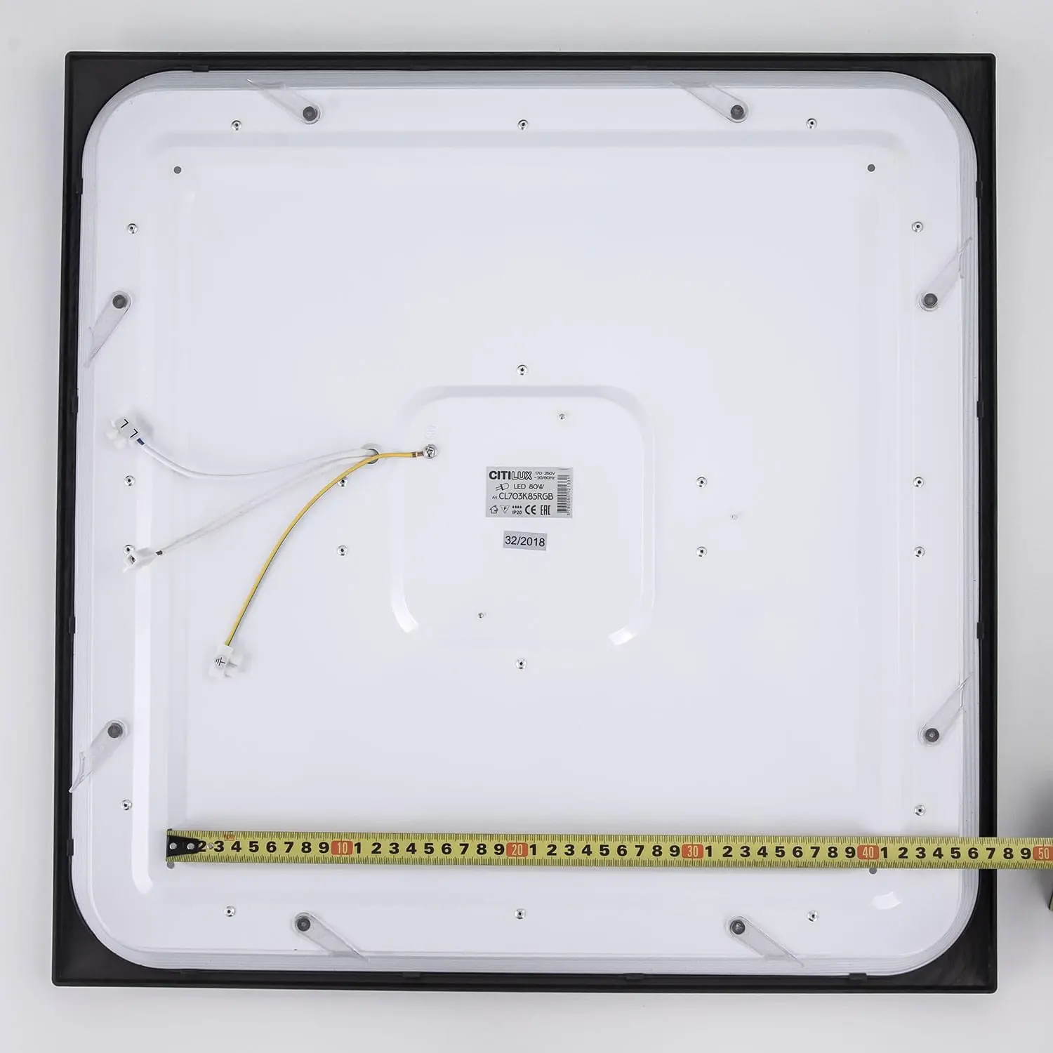 Модель оснащена мощными светодиодами холодного и теплого света, независимой цветной подсветкой RGB. Мощность светильника 95Вт, с диммером и функцией плавной регулировки.
