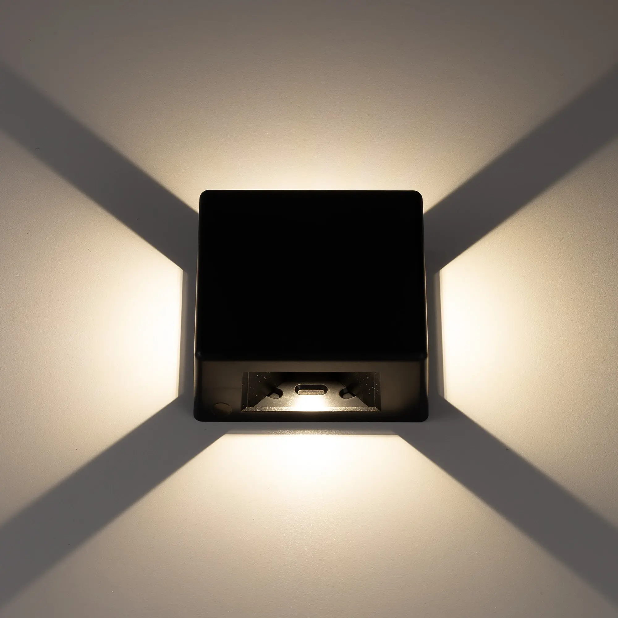 Дизайн изделия выполнен в современном стиле. Корпус квадратной формы, изготовлен из чёрного ударопрочного полимера. Мощность 6Вт, световой поток 480Лм, цветовая температура 4000К - нейтральный белый свет. Мягкое и равномерное освещение, безопасное для глаз, без мерцания и пульсаций. Свет распространяется в четырех направлениях, позволяя создавать оригинальные световые эффекты на стенах, колоннах и арках, делая ваш дом еще более привлекательным и уникальным.