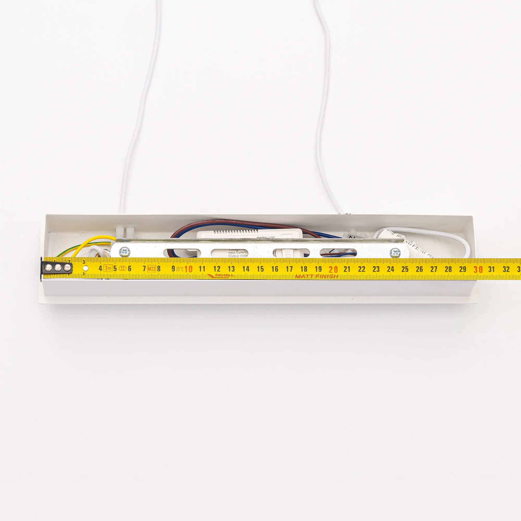Мощность изделия 30Вт, световой поток 2200Лм, индекс цветопередачи CRI>80. Светильник оборудован встроенным ступенчатым диммером 100-40-15% яркости, управляется настенным выключателем. Модель имеет ступенчатую регулировку цветовой температуры 3000К-4000К-5500К (теплый, нейтральный или холодный свет). Для выбора варианта свечения, перед монтажом, на блоке питания в основании светильника устанавливается нужный вариант.