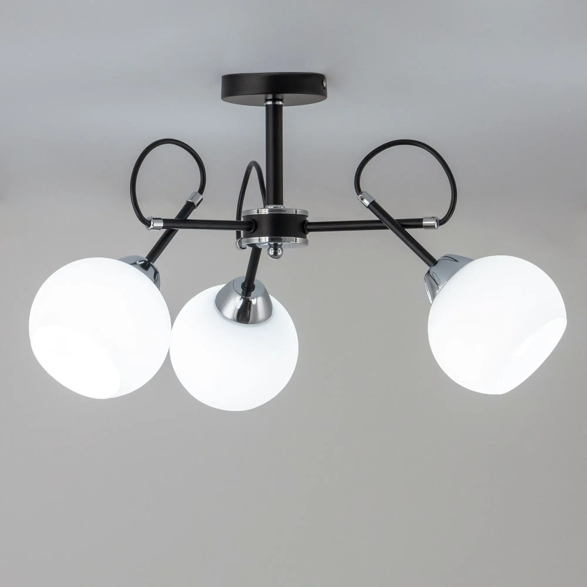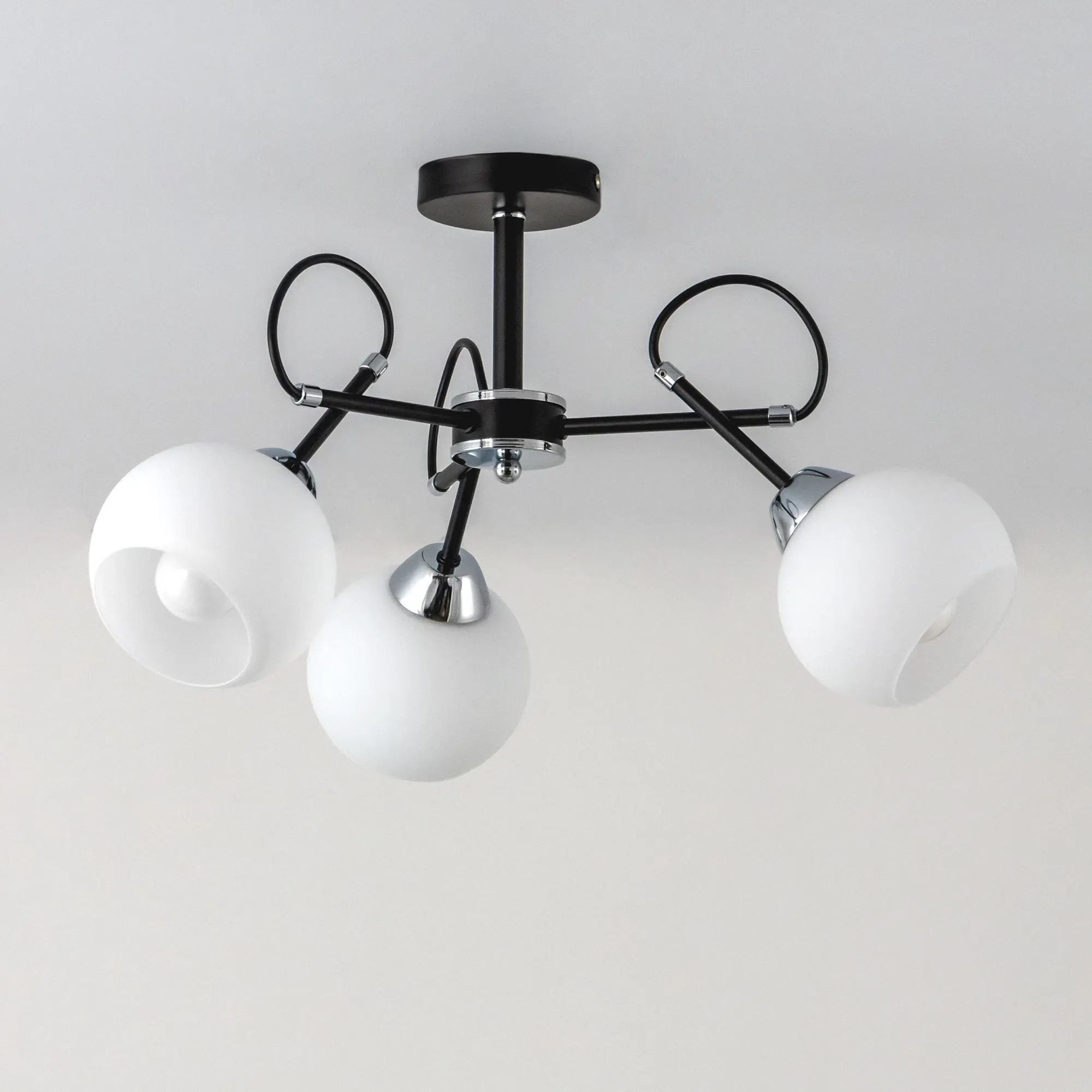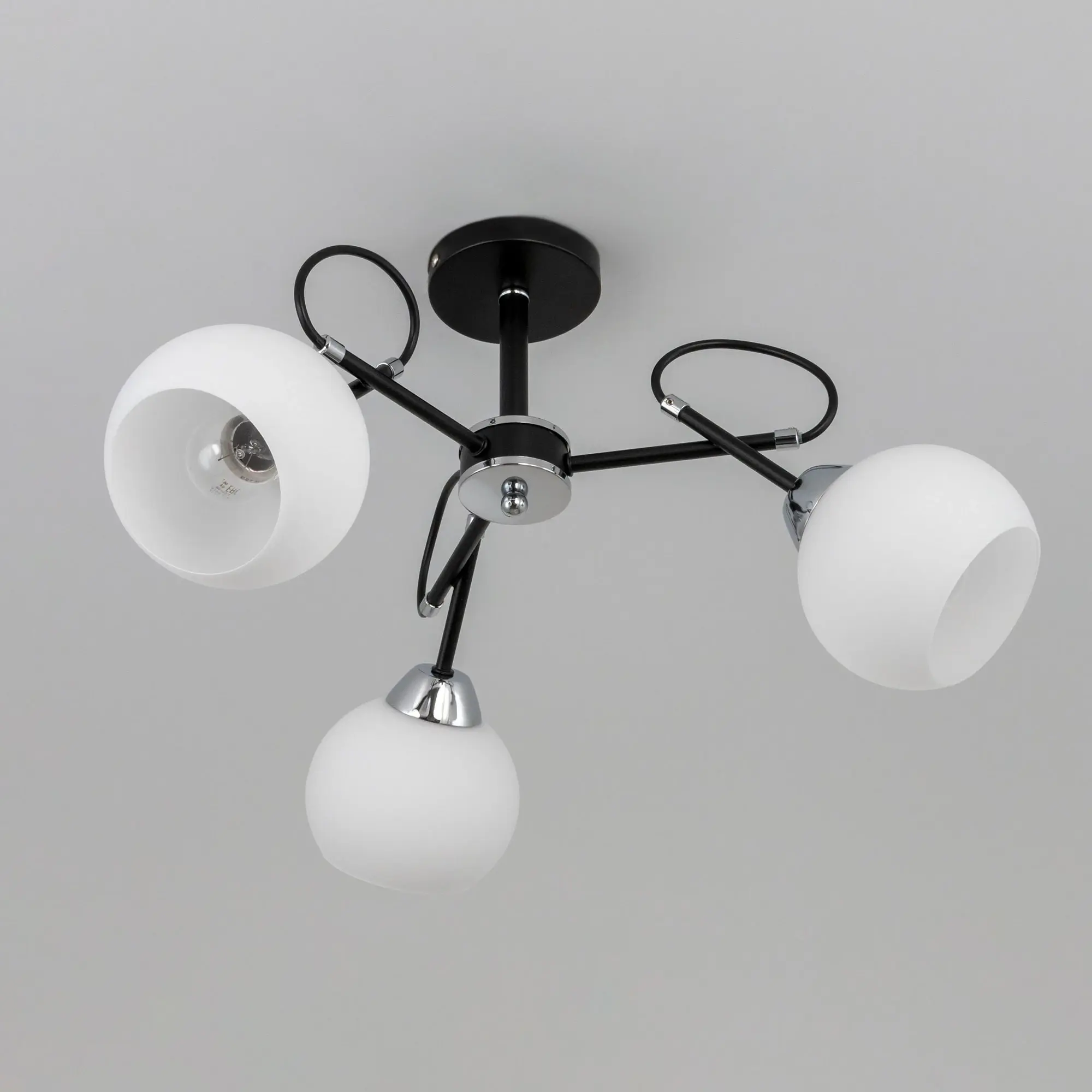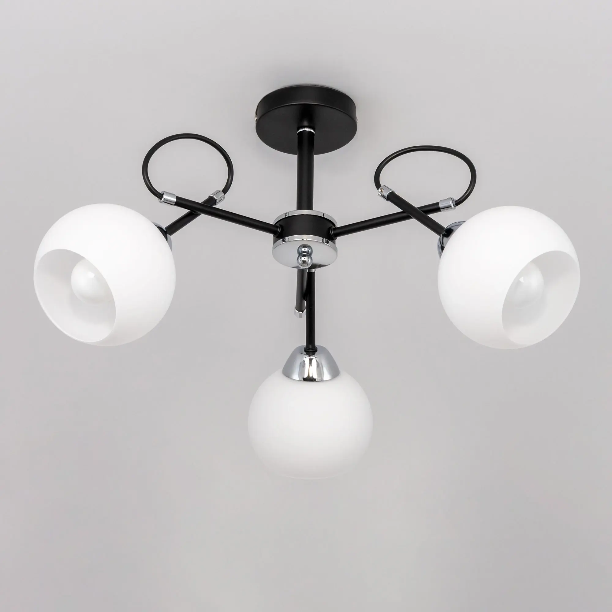 Потолочная люстра Citilux Стивен CL141231 в современном стиле. Корпус трехрожкового светильника металлический, чёрного цвета, с декоративными хромированными элементами. Плафоны круглой формы, изготовлены из матового стекла. В изделии используются лампы с цоколем Е27, максимальной мощностью для ламп накаливания 75Вт. Светодиодные лампы можно устанавливать более яркие. Поставляется в компактной упаковке в разобранном виде. Крепёж и подробная инструкция в комплекте. Подходит для всех типов потолков, в том числе натяжных, тип крепления – планка. Площадь освещения около 10м².,