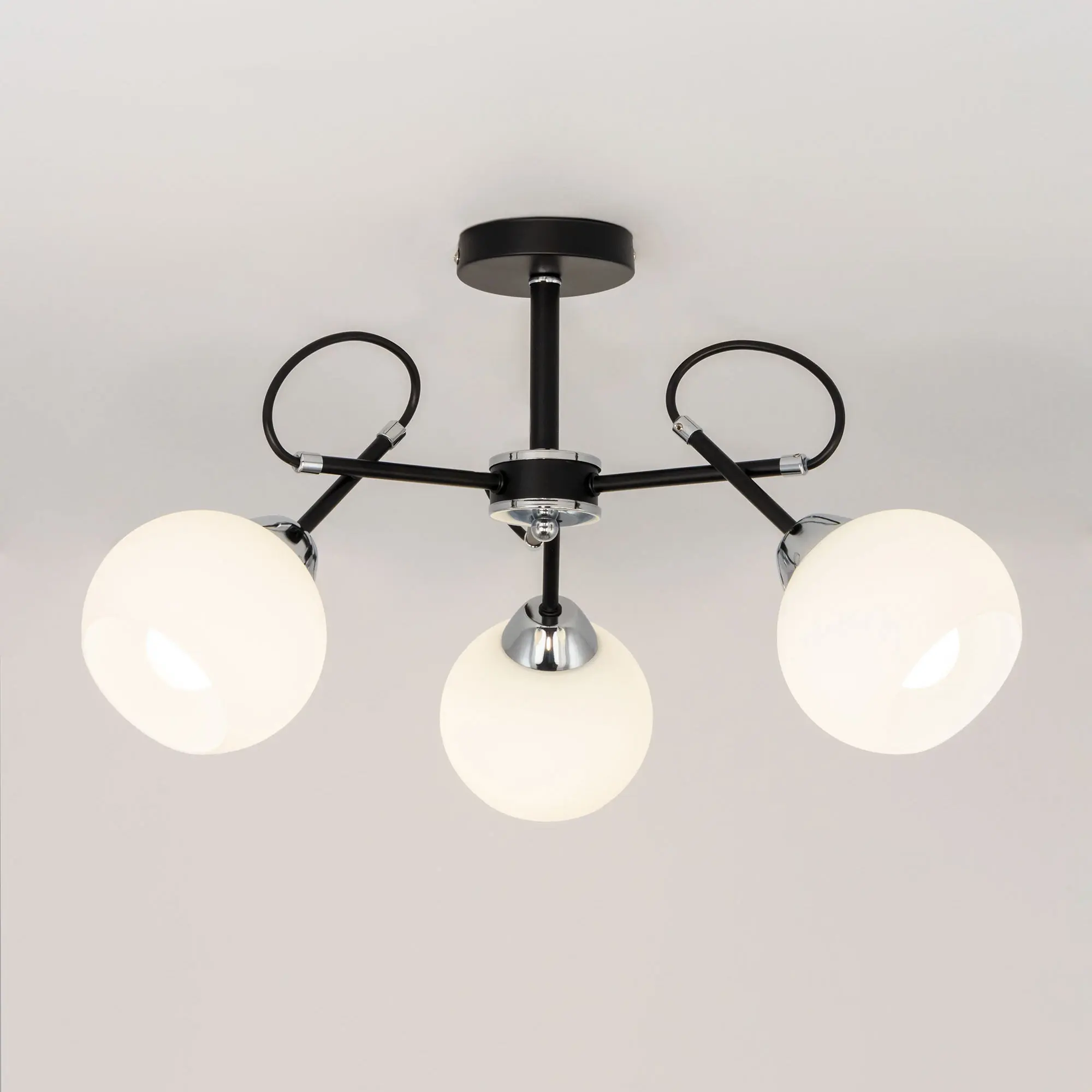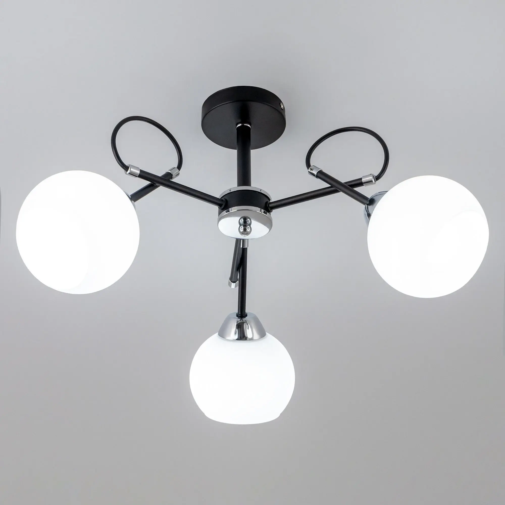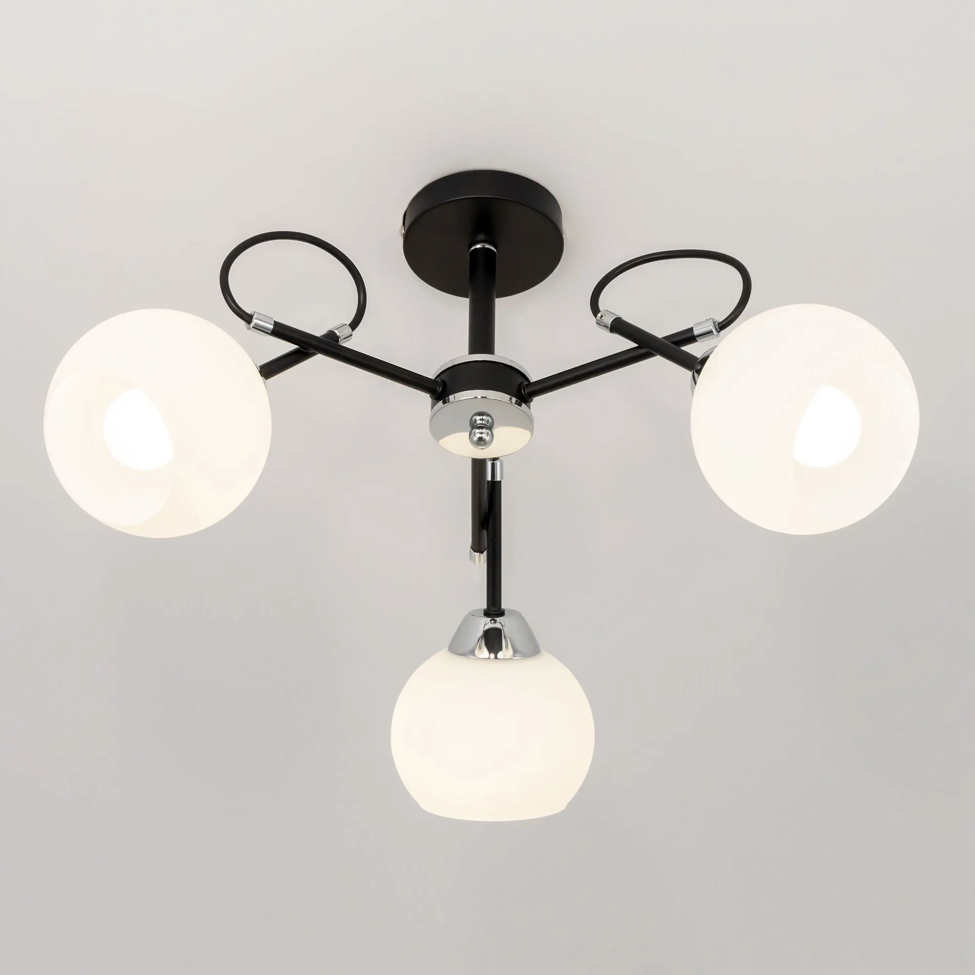 Потолочная люстра Citilux Стивен CL141231 в современном стиле. Корпус трехрожкового светильника металлический, чёрного цвета, с декоративными хромированными элементами. Плафоны круглой формы, изготовлены из матового стекла. В изделии используются лампы с цоколем Е27, максимальной мощностью для ламп накаливания 75Вт. Светодиодные лампы можно устанавливать более яркие. Поставляется в компактной упаковке в разобранном виде. Крепёж и подробная инструкция в комплекте. Подходит для всех типов потолков, в том числе натяжных, тип крепления – планка. Площадь освещения около 10м².