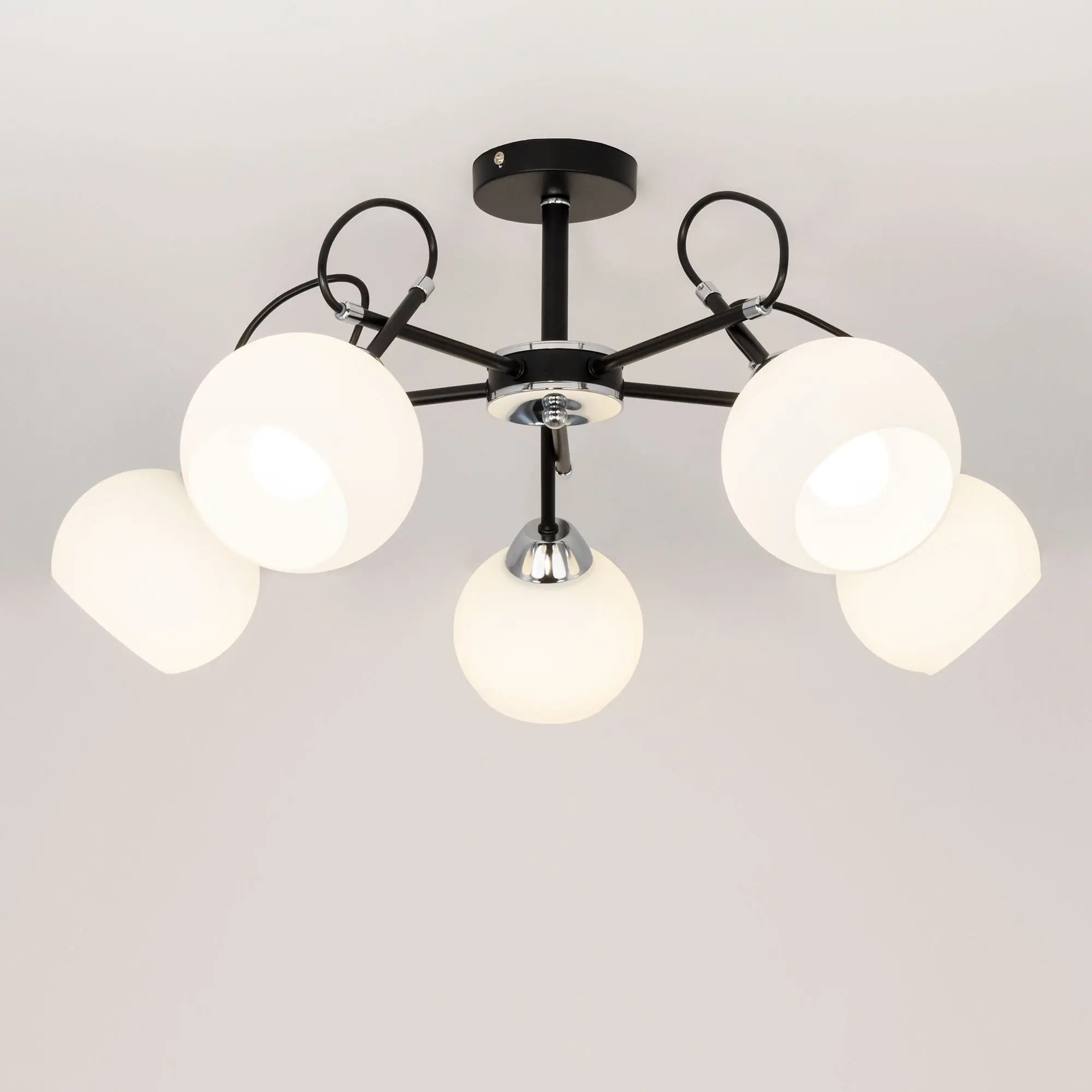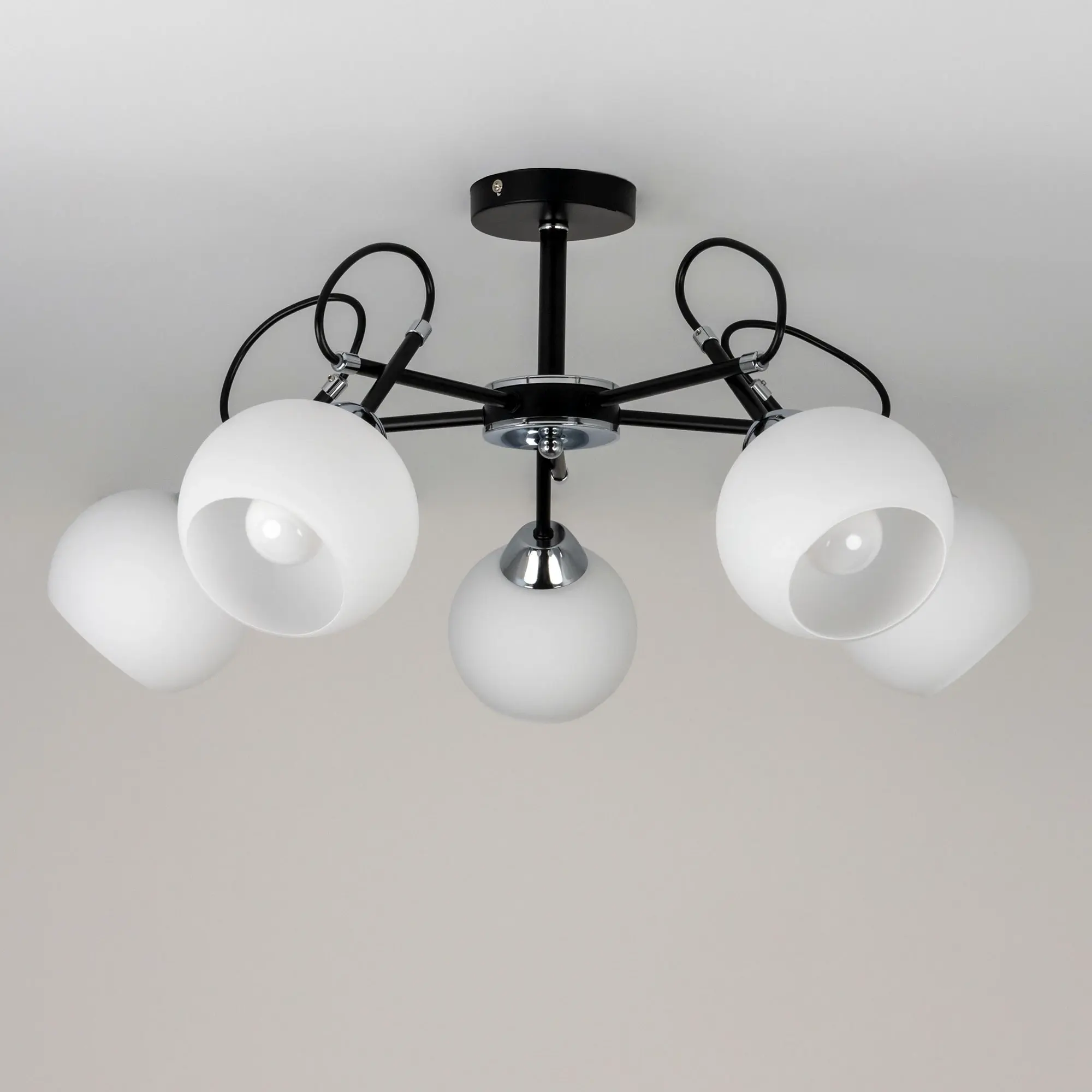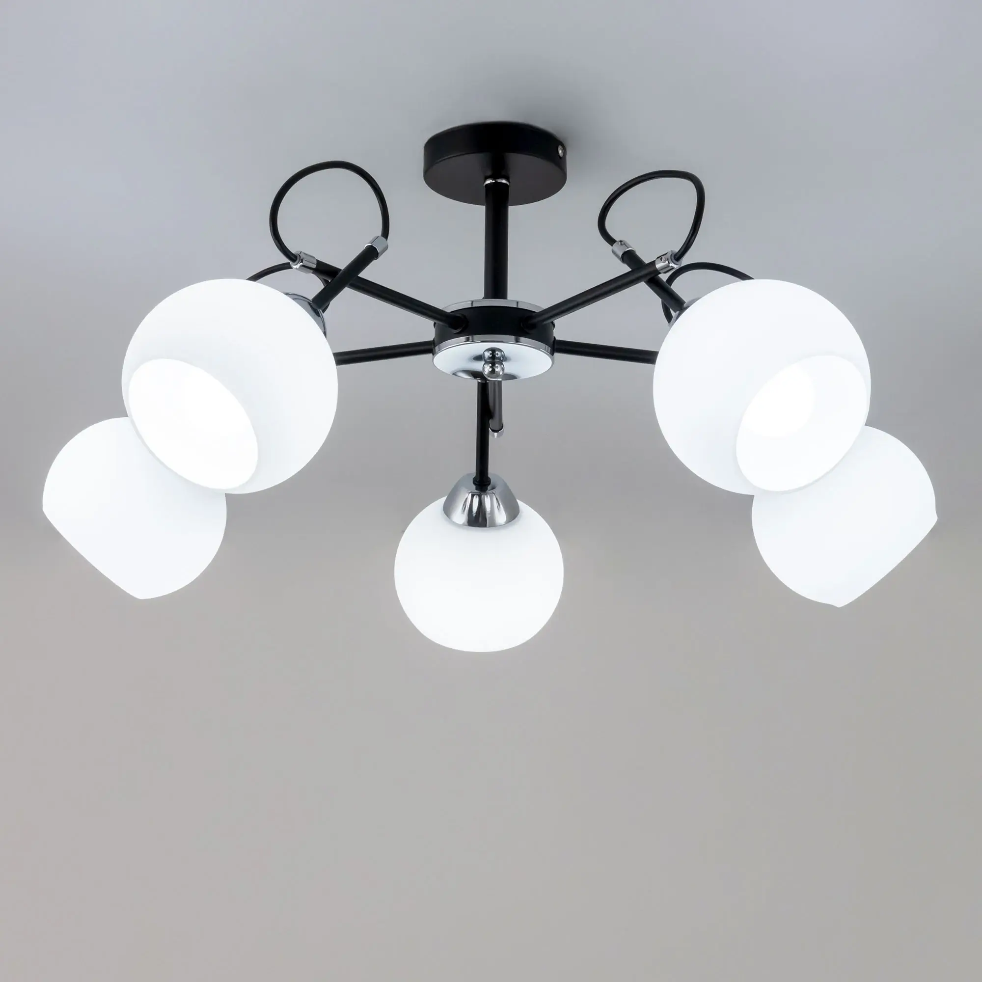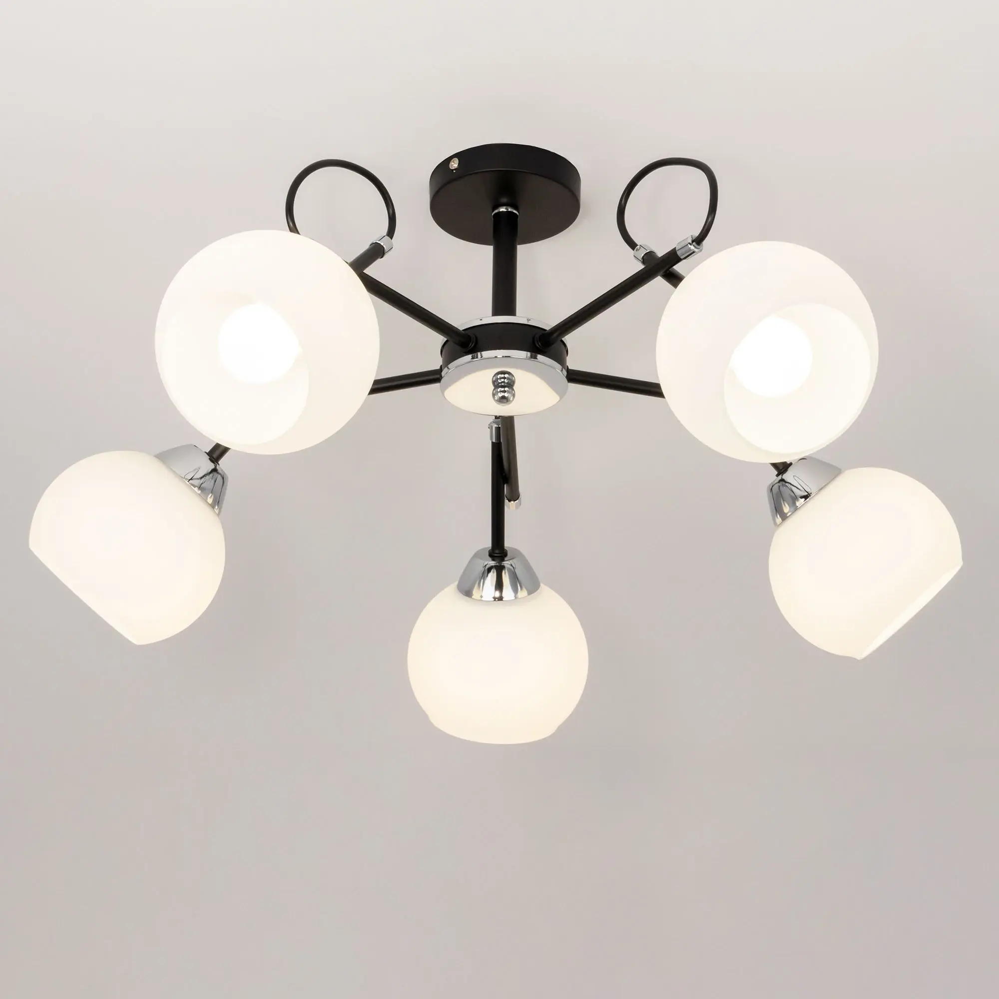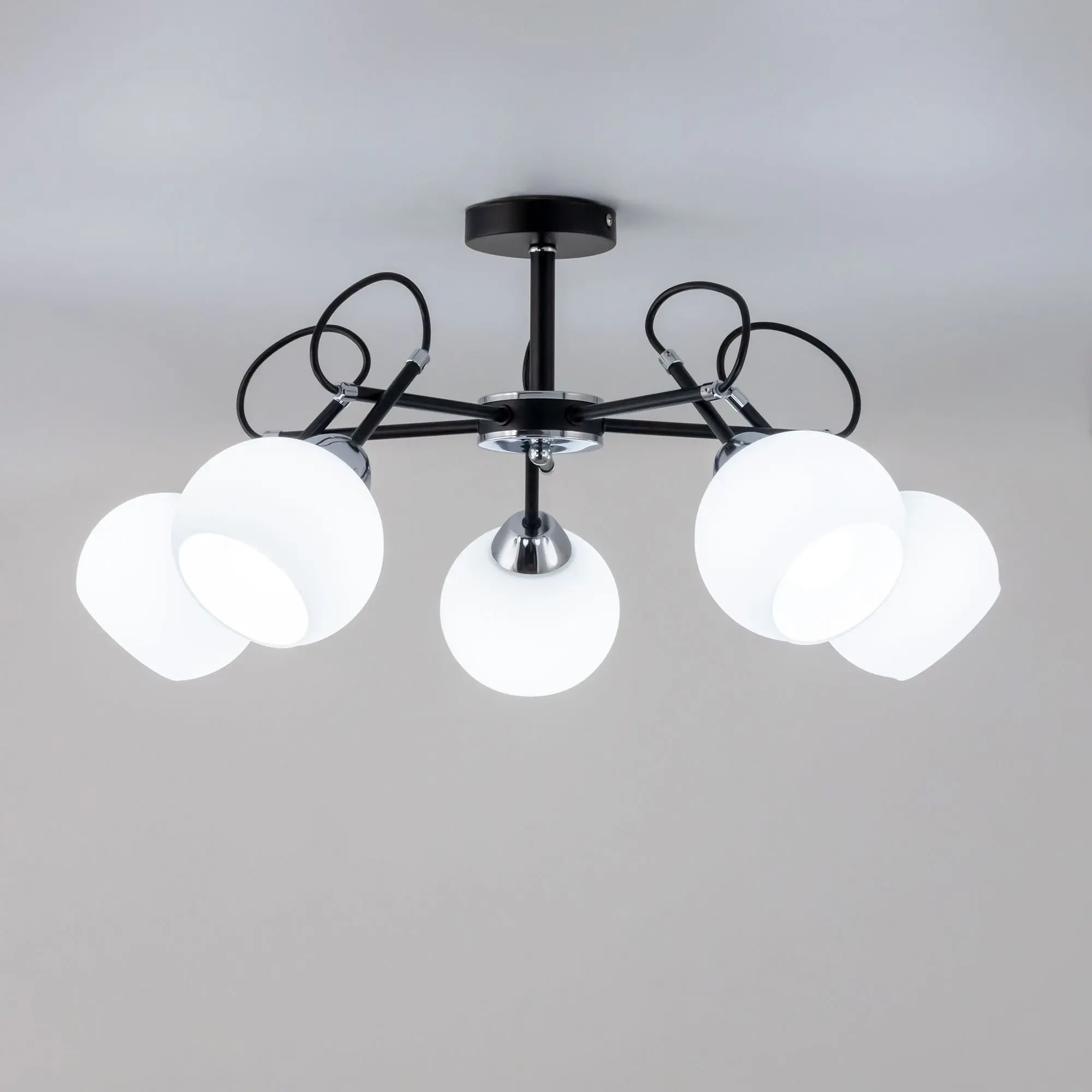 Потолочная люстра Citilux Стивен CL141251 в современном стиле. Корпус светильника металлический, чёрного цвета, с декоративными хромированными элементами. Плафоны круглой формы, изготовлены из матового стекла. В изделии используются лампы с цоколем Е27, максимальной мощностью для ламп накаливания 75Вт. Светодиодные лампы можно устанавливать более яркие. Поставляется в компактной упаковке в разобранном виде. Крепёж и подробная инструкция в комплекте. Подходит для всех типов потолков, в том числе натяжных, тип крепления – планка. Площадь освещения около 17м².