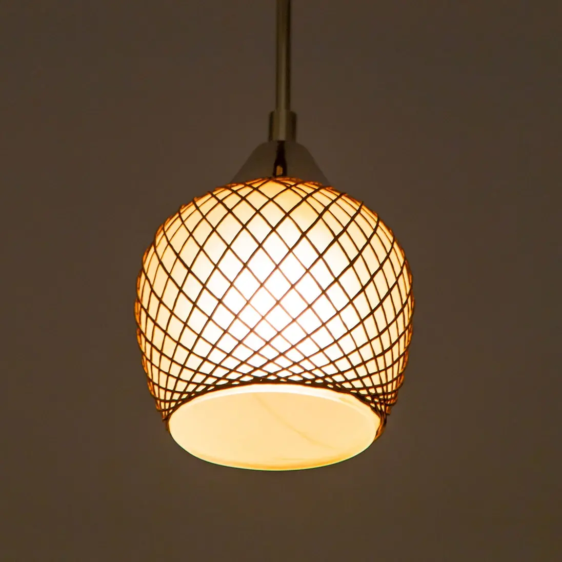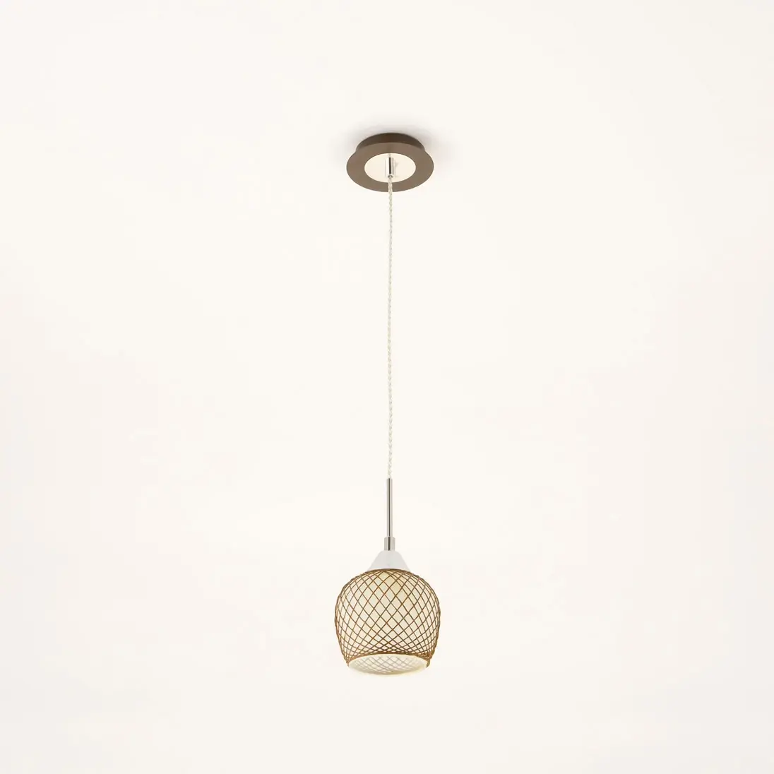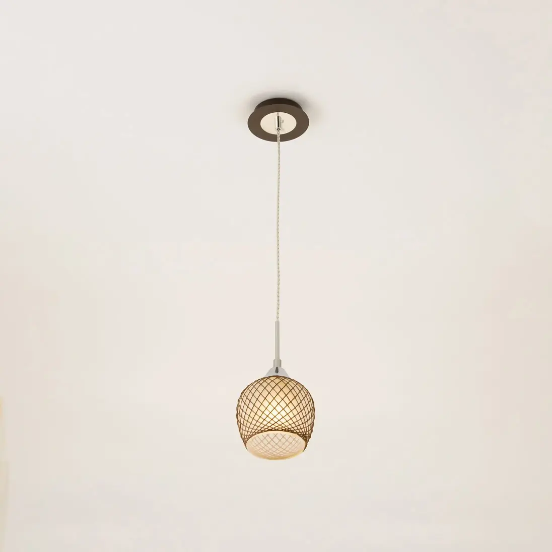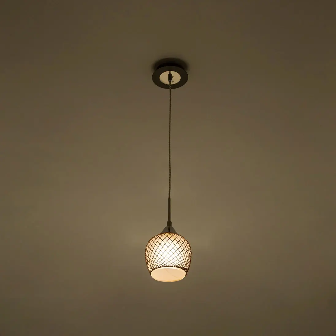 Подвесной светильник из изящной коллекции «Сюзи». Металлическая конструкция светильника со стеклянным плафоном, ажурно оплетенным необычным тканевым узором, делающим светильник в буквальном смысле слова «вязаным» создаст атмосферу уюта и комфорта в вашем доме. Подвес выполнен в цвете венге. Благодаря патрону, изготовленному из высококачественного термостойкого углепластика в данном светильнике допускается использовать светодиодные лампы неограниченной мощности.