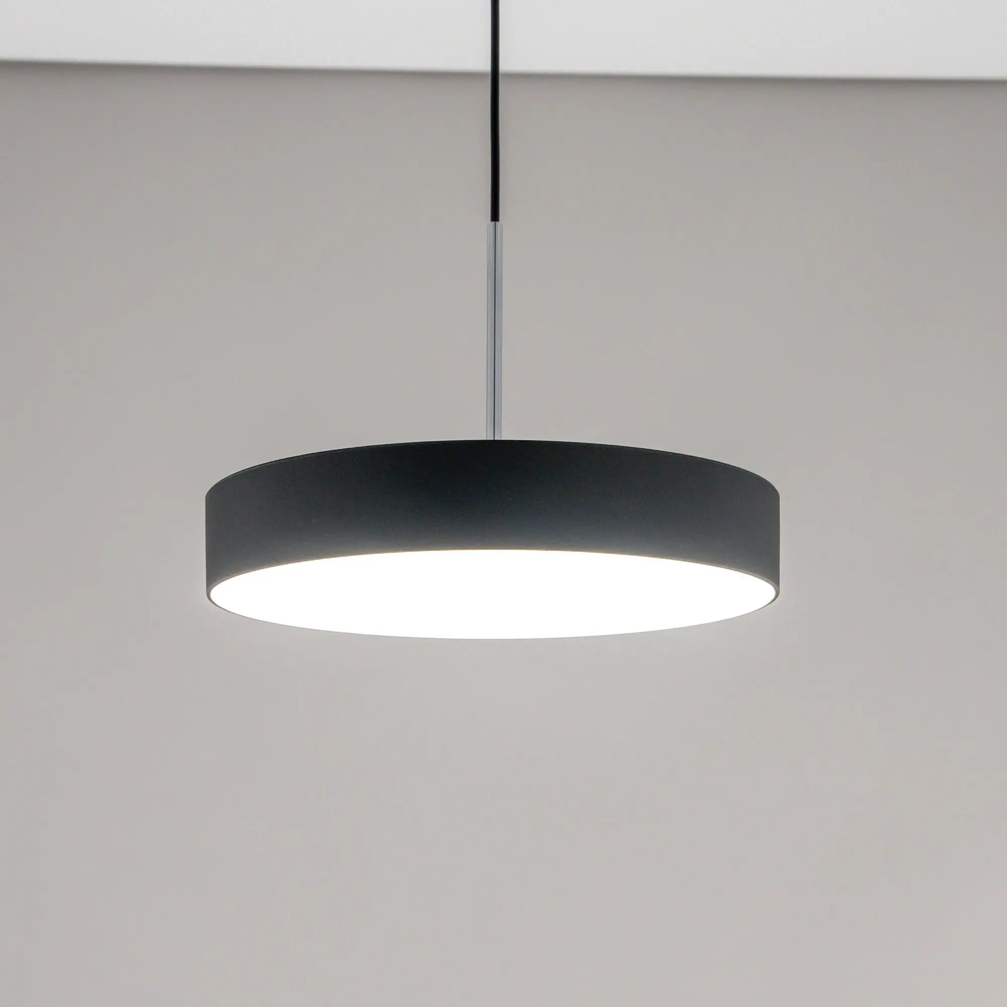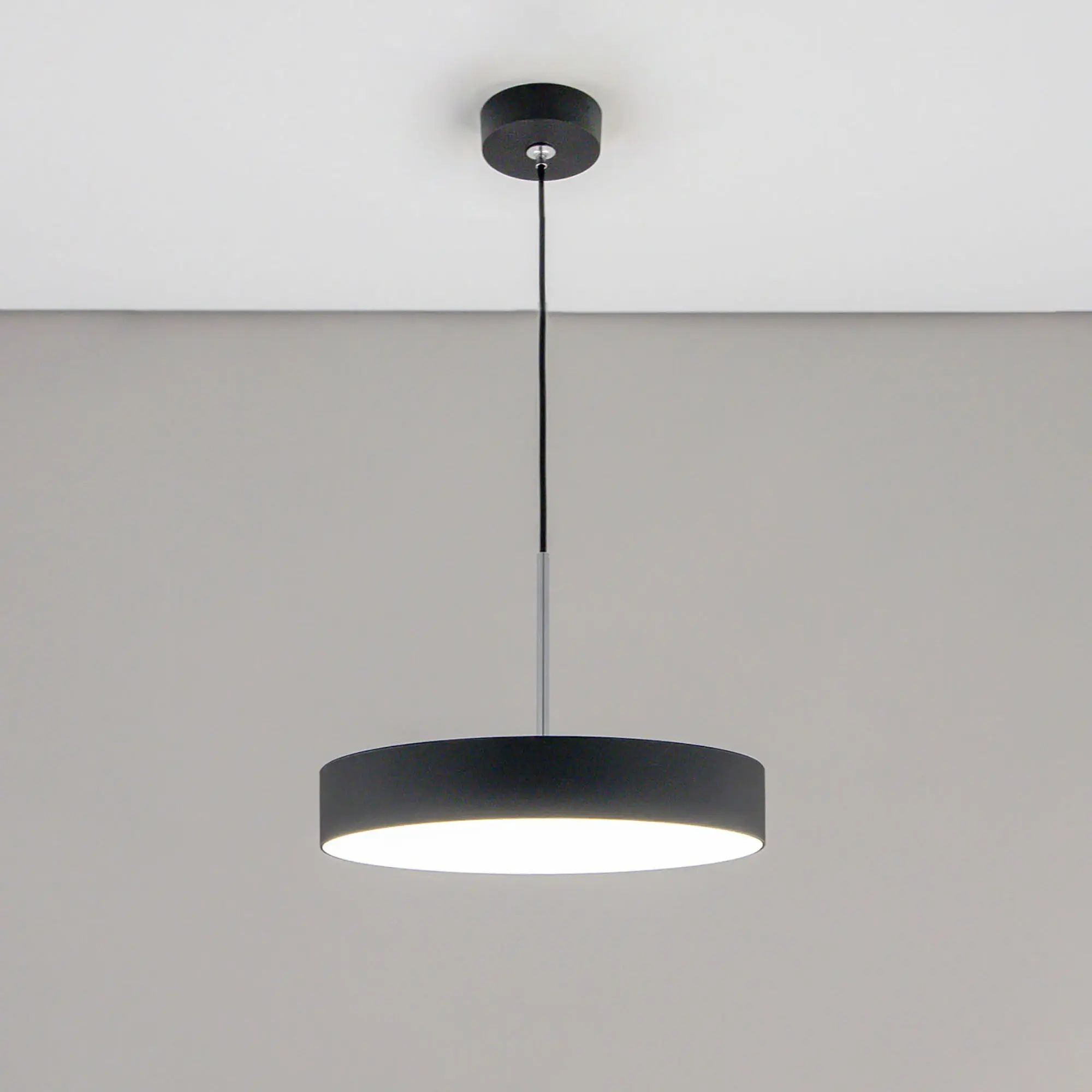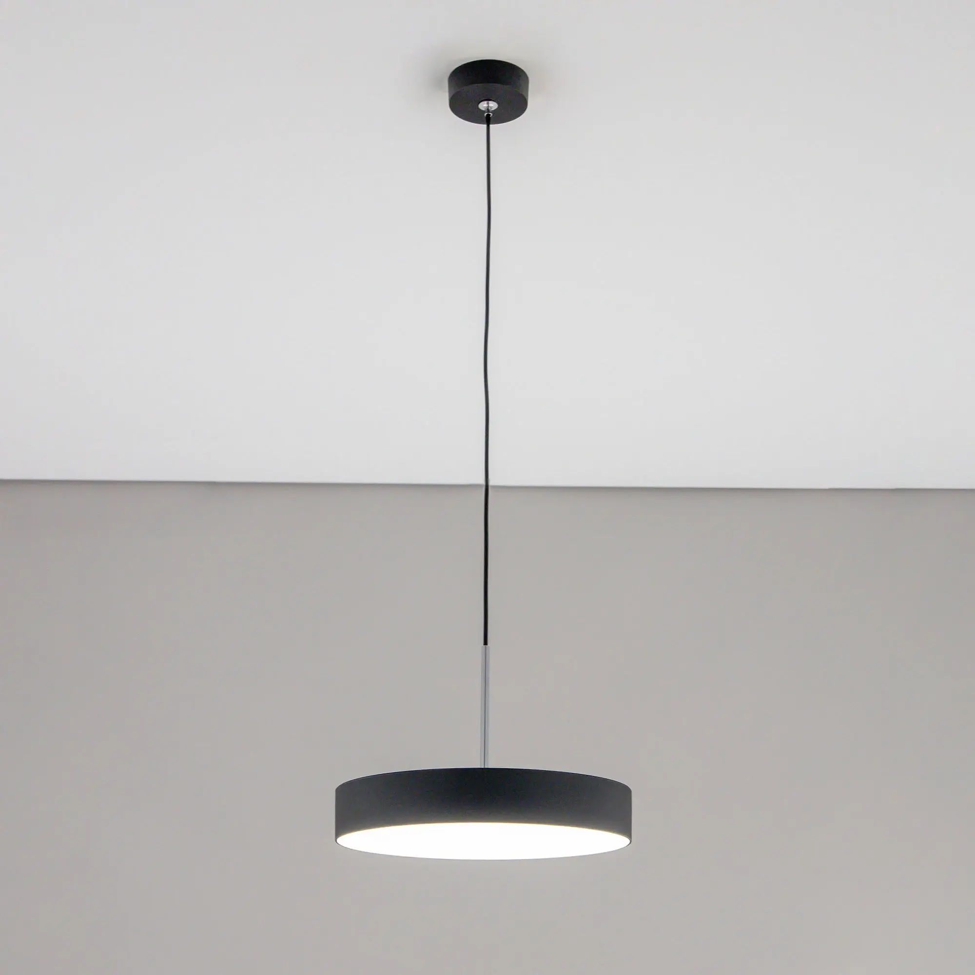 Светодиодный подвесной светильник Citilux Тао CL712S242N чёрного цвета в современном стиле. Корпус из прочного полимера, рассеиватель из оптического полимера. Высота подвеса регулируется в диапазоне от 18см до 1,2метра. Изделие оснащено яркими светодиодами мощностью 24Вт и цветовой температурой 4000К (нейтральный белый свет). Встроенный ступенчатый диммер 100-40-15% управляется обычным настенным выключателем. Свет мягкий и ровный, без мерцаний и пульсаций во всех режимах работы. Простой монтаж без видимых крепёжных элементов,