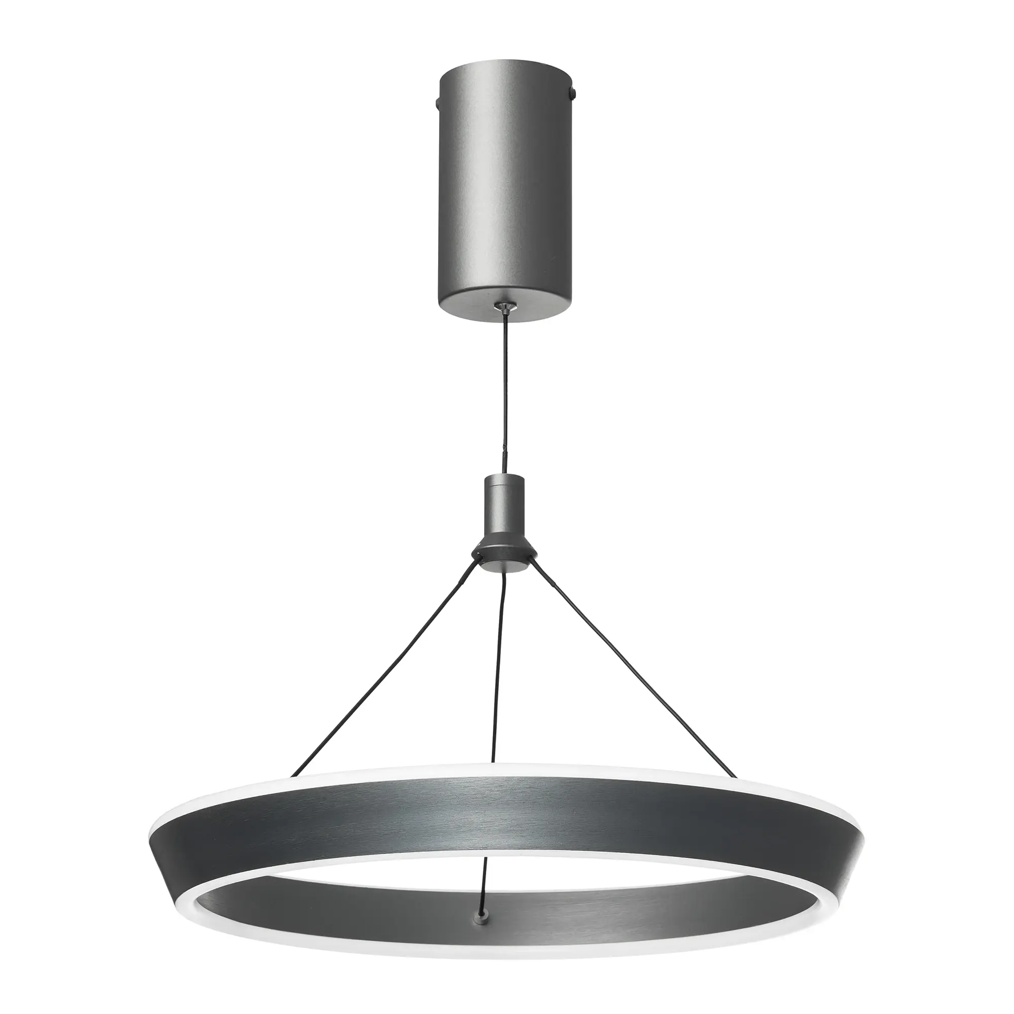 Стильный светодиодный светильник с подвесным кольцом Citilux Tavi CL717011 выполнен в современном стиле. Кольцо - светодиодный модуль, изготовленный из алюминиевого профиля благородного серого цвета, рассеиватель из матового оптического полимера. Наличие источников света с двух сторон профиля позволяет равномерно осветить всё помещение.