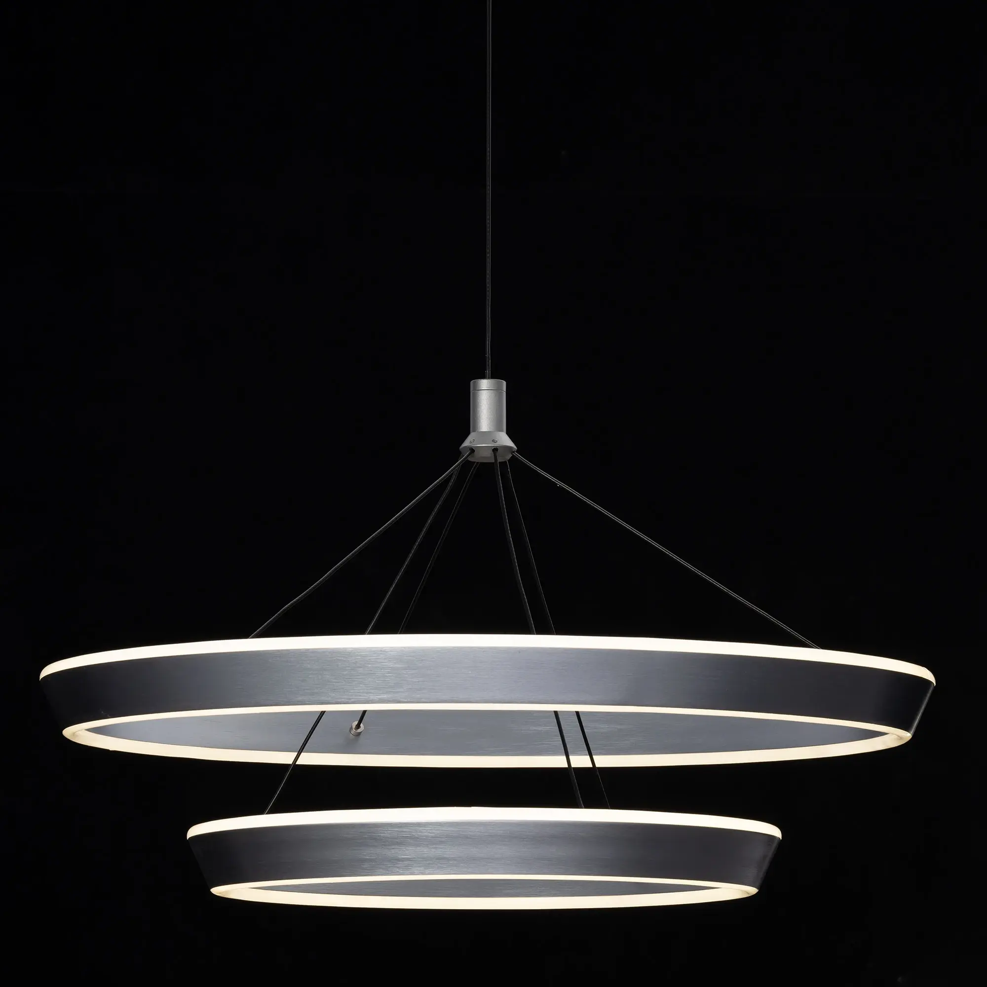 Светодиодная люстра с двумя подвесными кольцами Citilux Tavi CL717013 выполнена в современном стиле. Каждое кольцо - светодиодный модуль, изготовленный из алюминиевого профиля благородного серого цвета, рассеиватель из матового оптического полимера. Наличие источников света с двух сторон профиля позволяет равномерно осветить всё помещение.