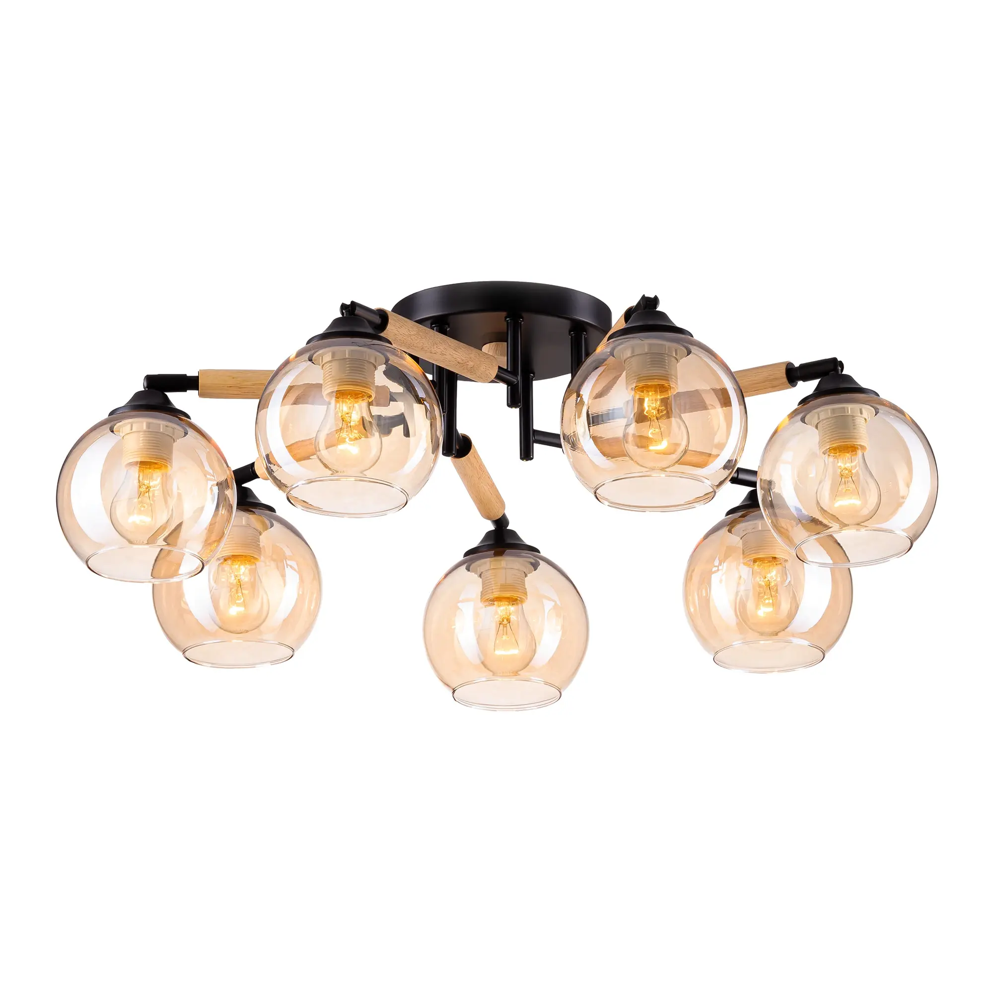 В изделии используются 7 ламп с цоколем Е27, максимальной мощностью для ламп накаливания 75Вт (в комплект не входят, приобретаются отдельно). Люстра рассчитана на работу как с одноклавишным, так и с двухклавишным выключателем, поэтому вы сможете настроить освещение под свои предпочтения и задачи. Модель подходит для всех видов потолков, в том числе натяжных, тип крепления – планка.