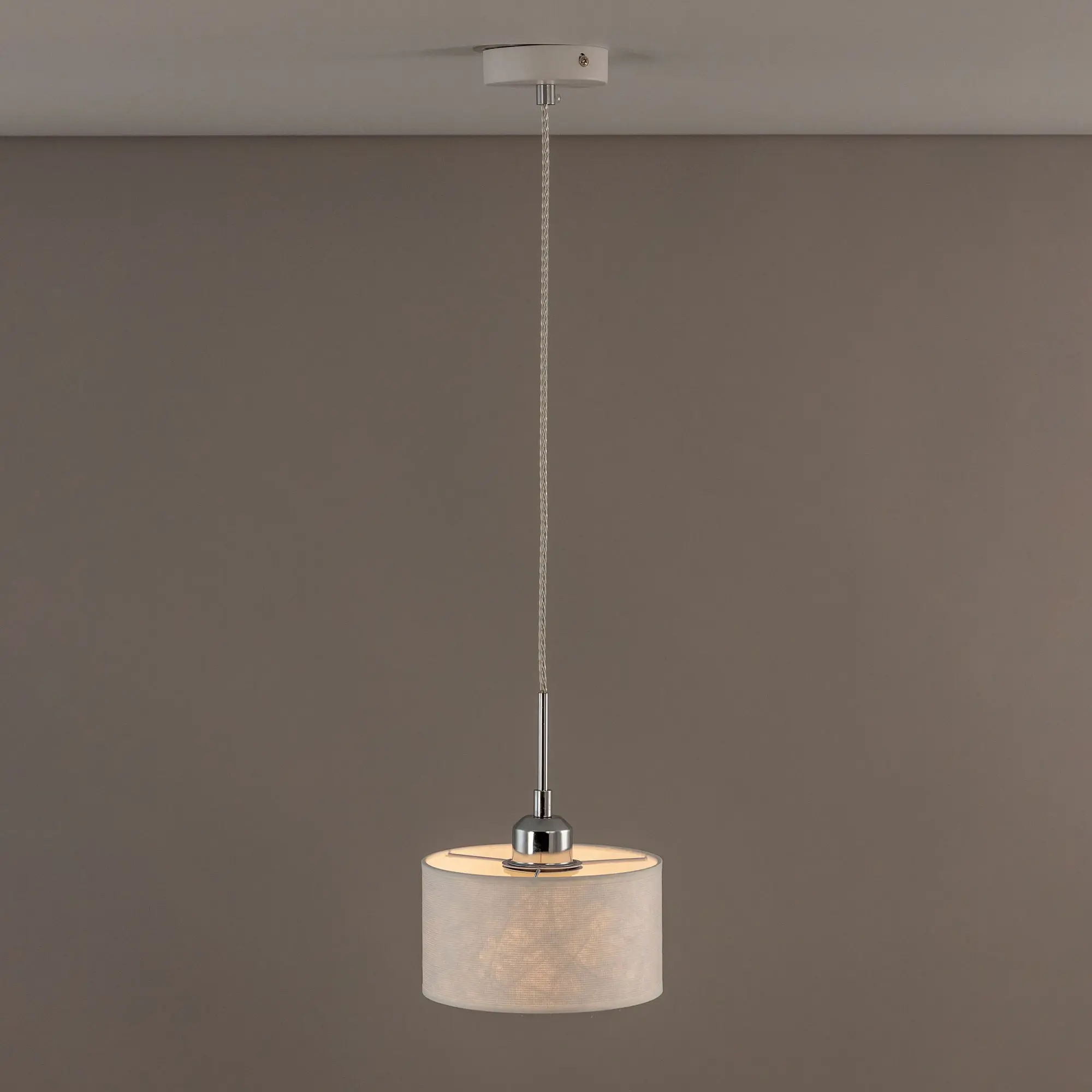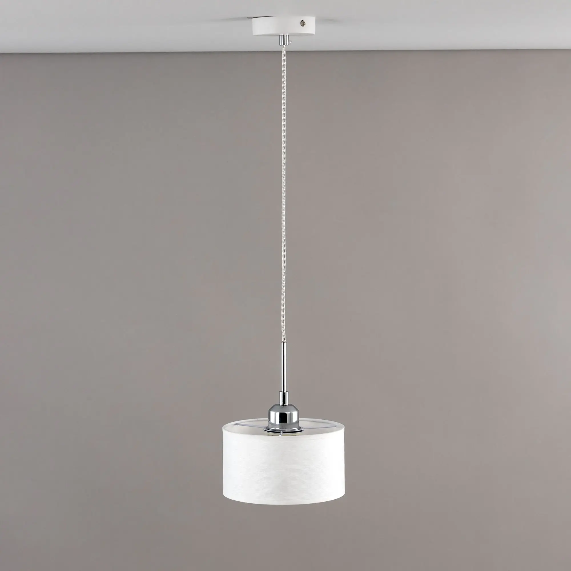 Современный подвесной светильник Citilux Тильда CL469110 для стильных интерьеров, оформленных в светлых тонах. Корпус металлический, цвет белый матовый с декоративными хромированными элементами. Абажур цилиндрической формы, изготовлен из текстурной ткани на подложке из оптического полимера. В изделии используется лампа с цоколем Е27, максимальной мощностью для ламп накаливания 75Вт. Светодиодные лампы можно применять более яркие. Подходит для всех типов потолков, в том числе натяжных. Тип крепления – планка. Диаметр 18см, высота регулируется в диапазоне 27-125см, осветит около 3,5м².