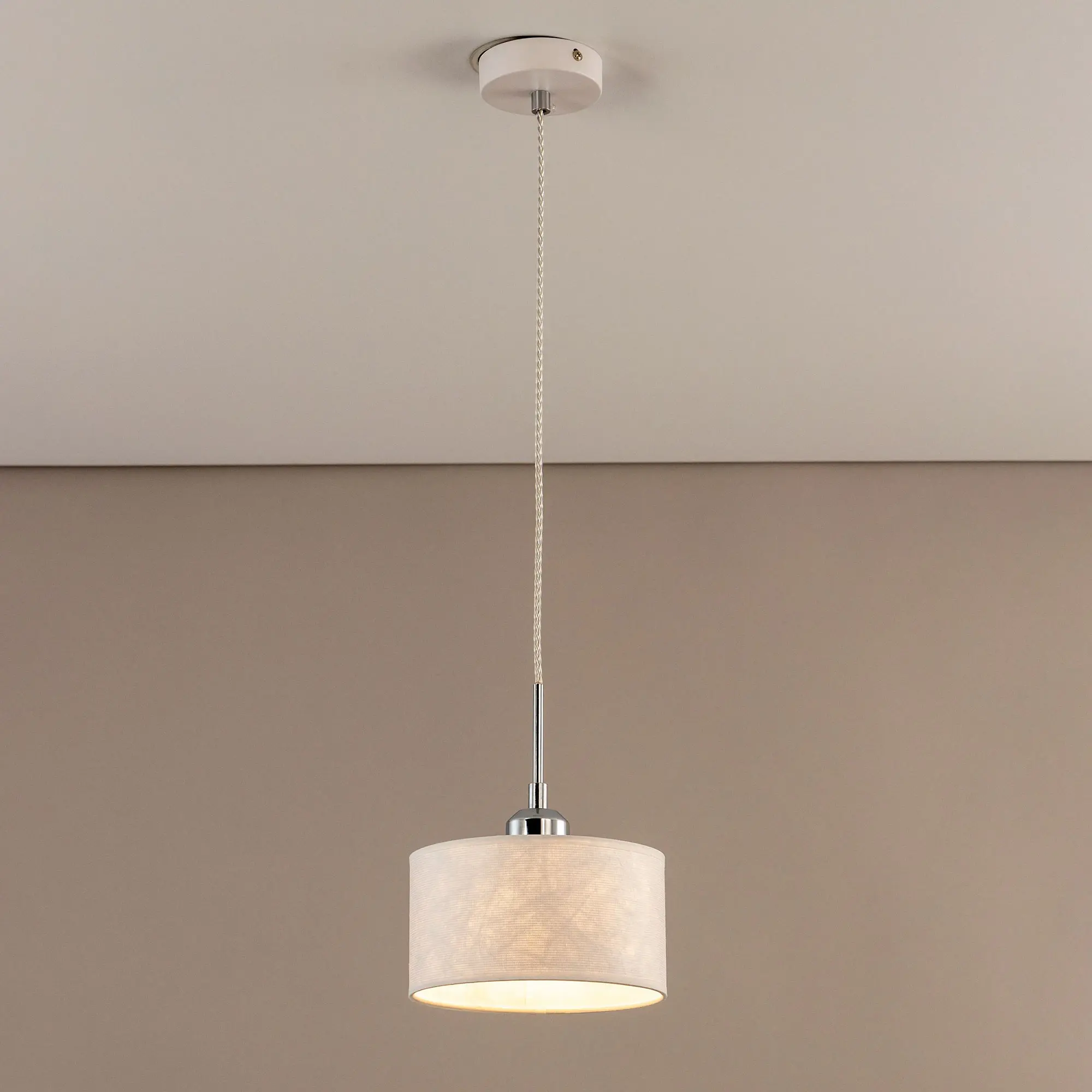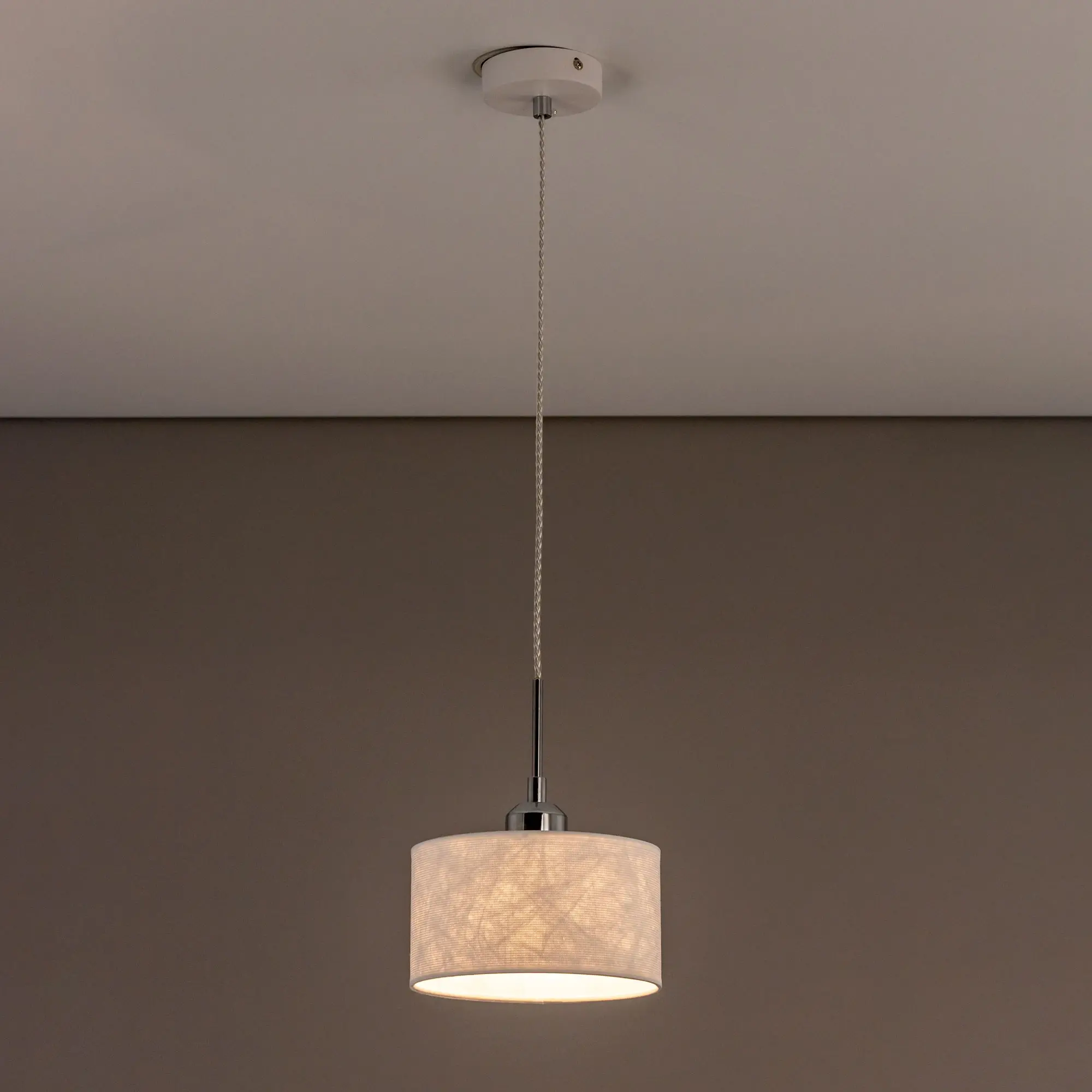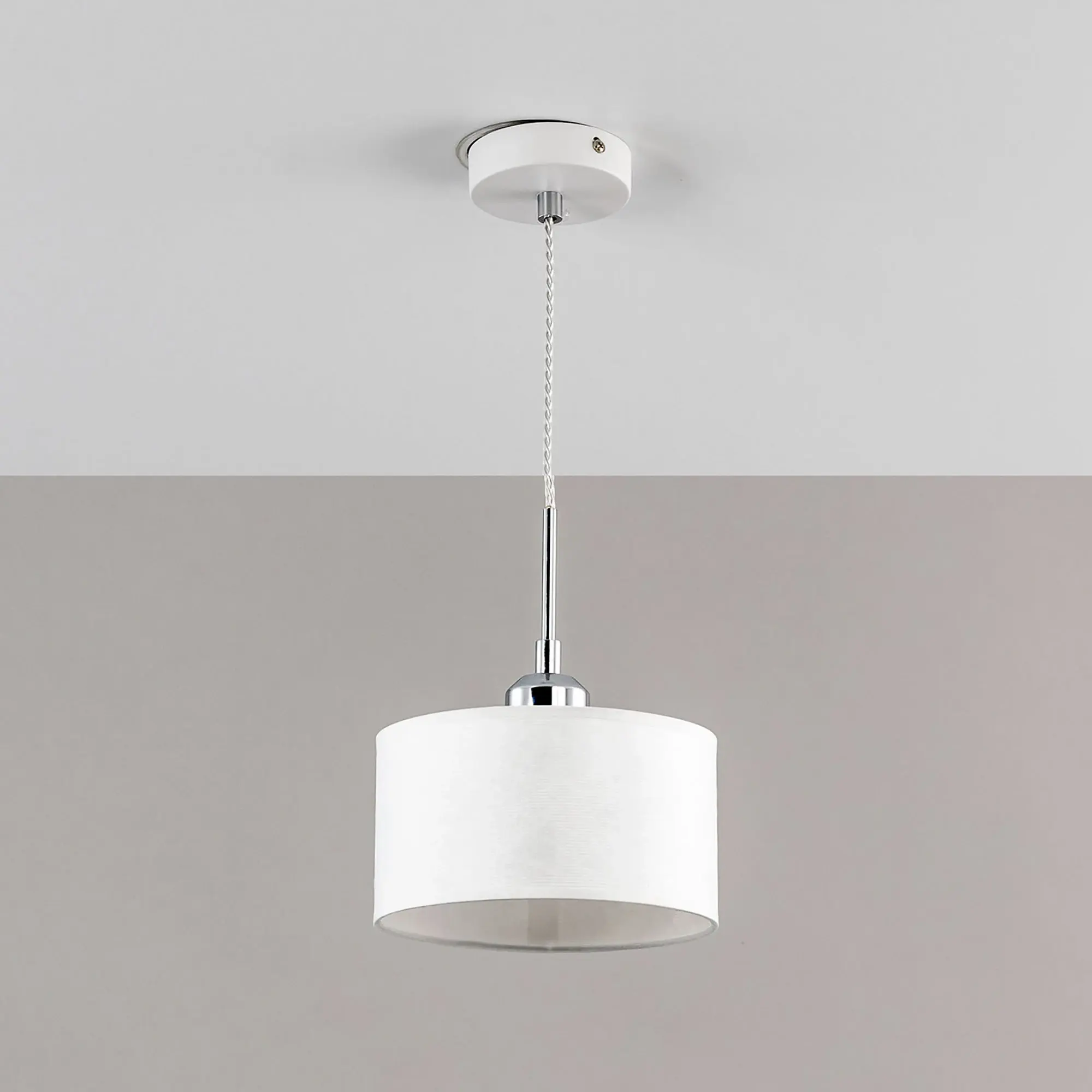 Современный подвесной светильник Citilux Тильда CL469110 для стильных интерьеров, оформленных в светлых тонах. Корпус металлический, цвет белый матовый с декоративными хромированными элементами. Абажур цилиндрической формы, изготовлен из текстурной ткани на подложке из оптического полимера. В изделии используется лампа с цоколем Е27, максимальной мощностью для ламп накаливания 75Вт. Светодиодные лампы можно применять более яркие. Подходит для всех типов потолков, в том числе натяжных. Тип крепления – планка. Диаметр 18см, высота регулируется в диапазоне 27-125см, осветит около 3,5м²