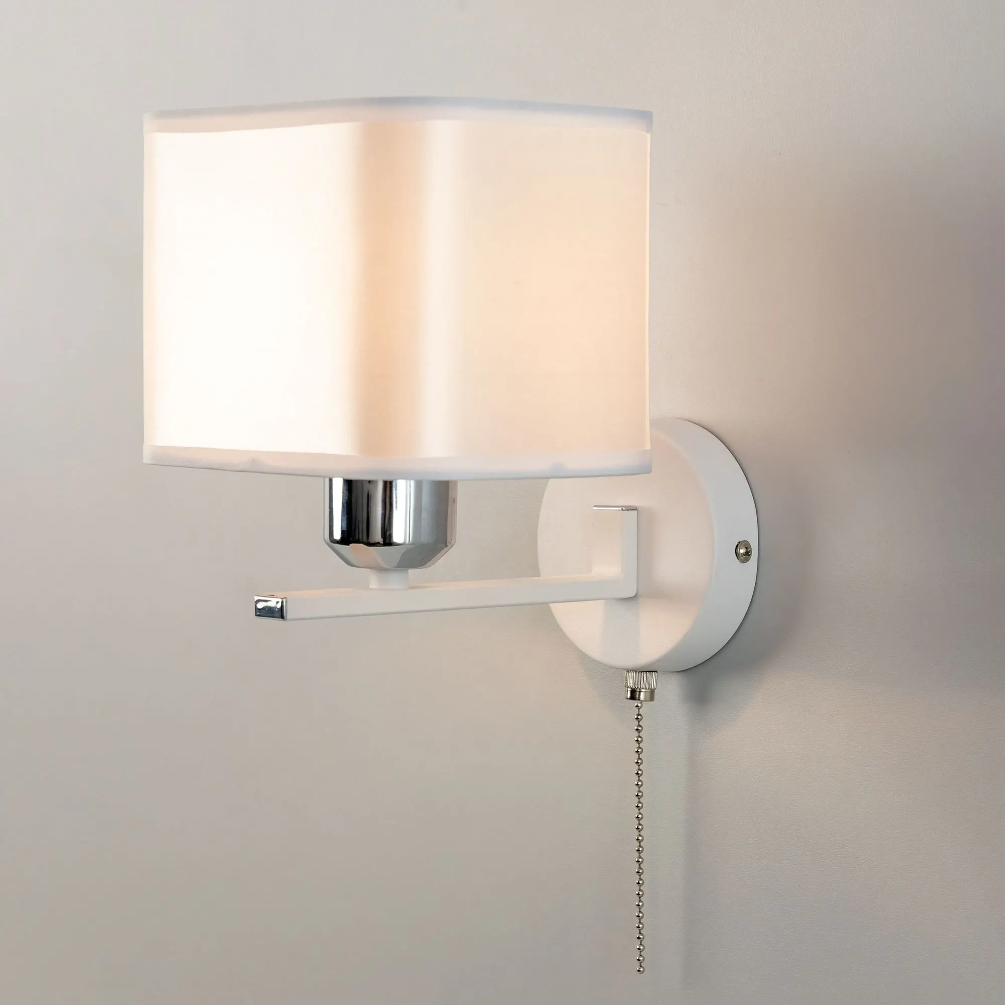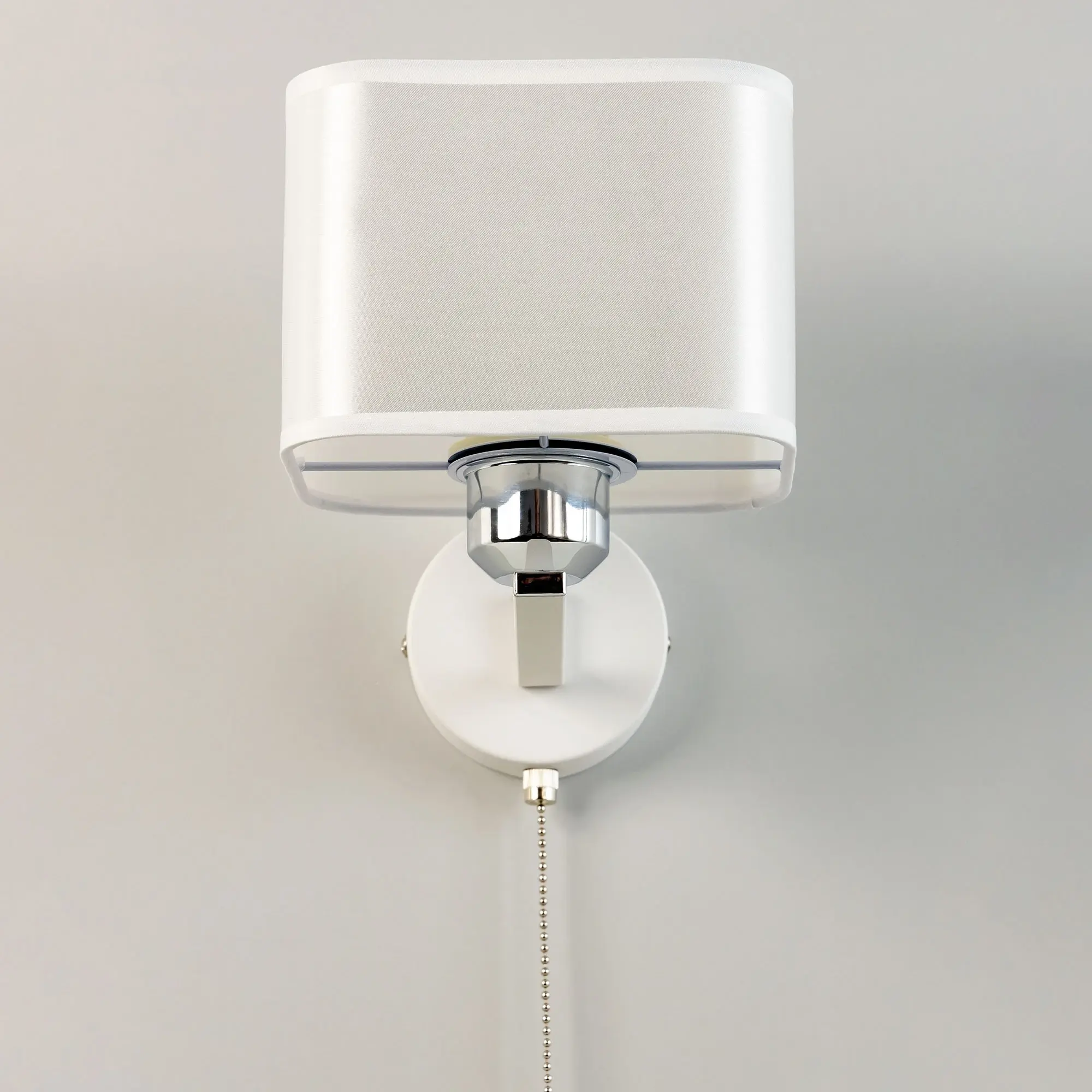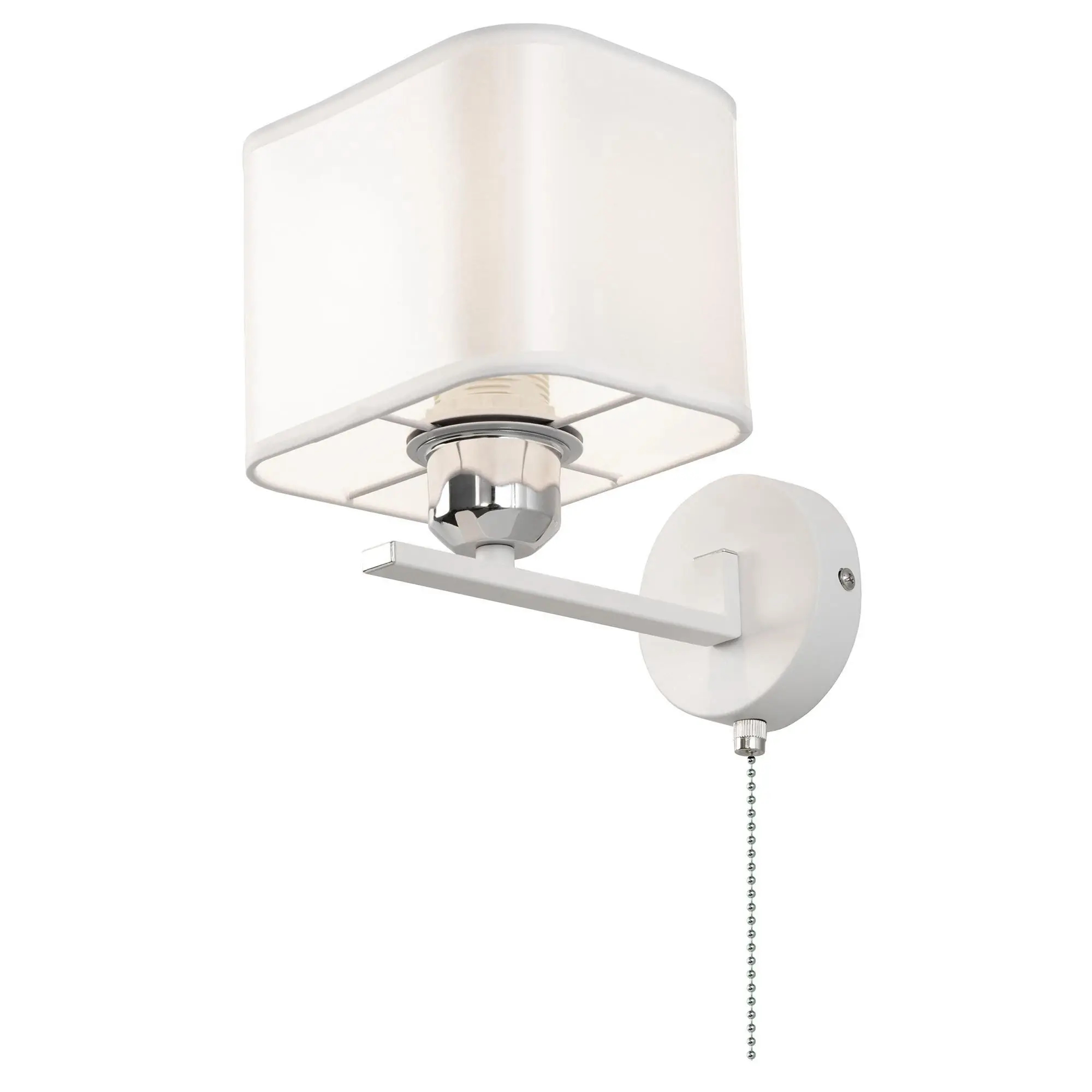 Современный настенный светильник Citilux Тильда CL469415 для стильных интерьеров, оформленных в светлых тонах. Корпус металлический, цвет белый матовый с декоративными хромированными элементами. Абажур квадратной формы, изготовлены из белой атласной ткани на подложке из оптического полимера. В изделии используется лампа с цоколем Е27, максимальной мощностью для ламп накаливания 75Вт. Светодиодные лампы можно применять более яркие. Тип крепления к стене – планка