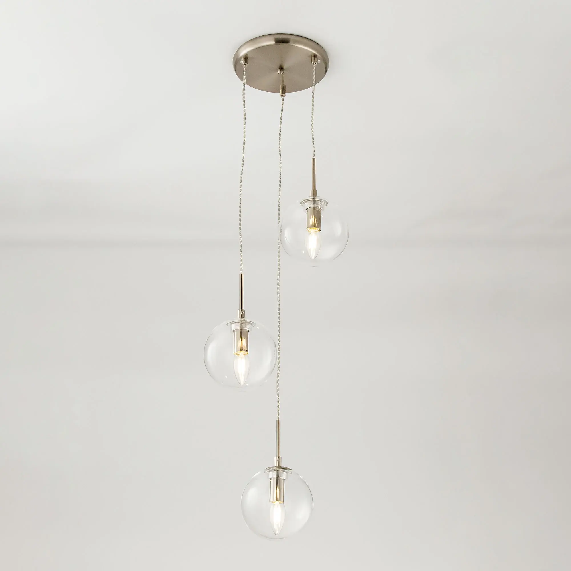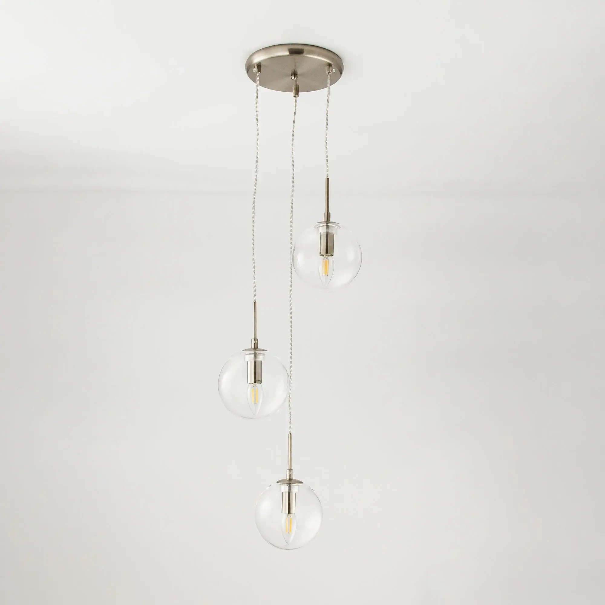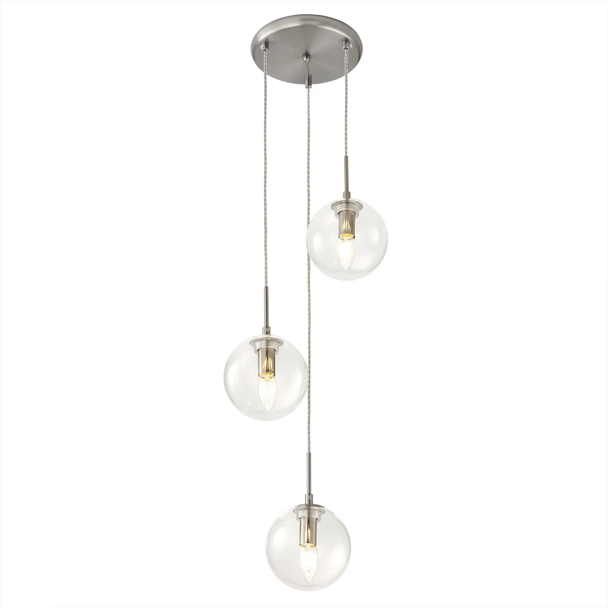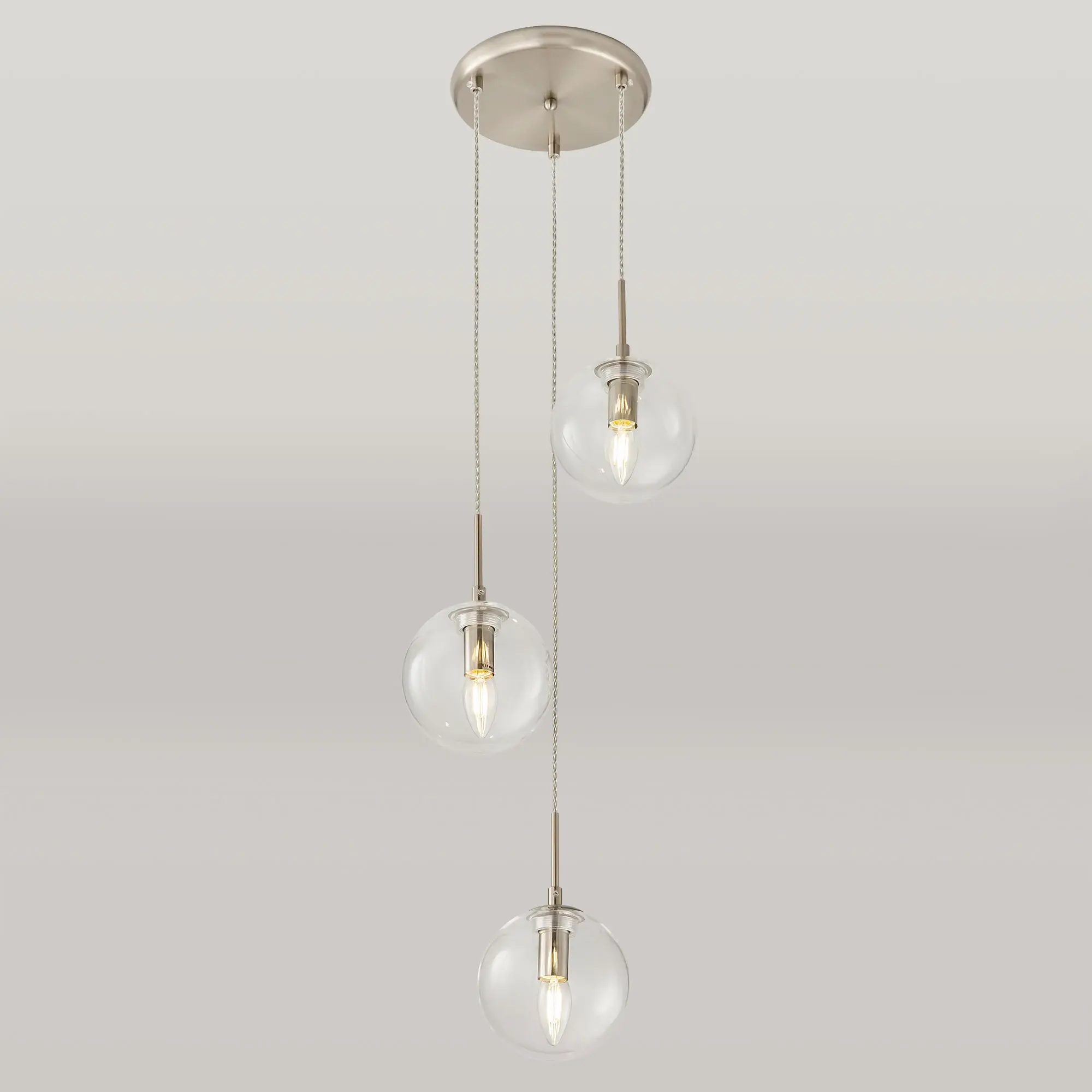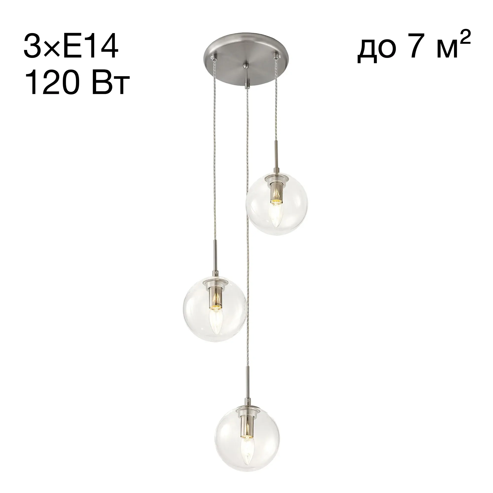 Люстра Citilux Томми CL102031 с тремя подвесными плафонами. Основание светильника металлическое, круглой формы, цвет матовый хром. Плафоны стеклянные прозрачные в форме шара, подвешены ниспадающим каскадом, высота которого легко регулируется. В люстре используются 3 лампы с цоколем Е14 мощностью 40 Вт. Суммарная мощность люстры 120 Вт при использовании ламп накаливания. Площадь освещения около 7 кв. метров. Модель отлично подходит для помещений с высокими потолками. Великолепно выглядит в зоне стола или над стойкой бара. Прекрасно осветит лестничные проемы и пространства со вторым светом.,