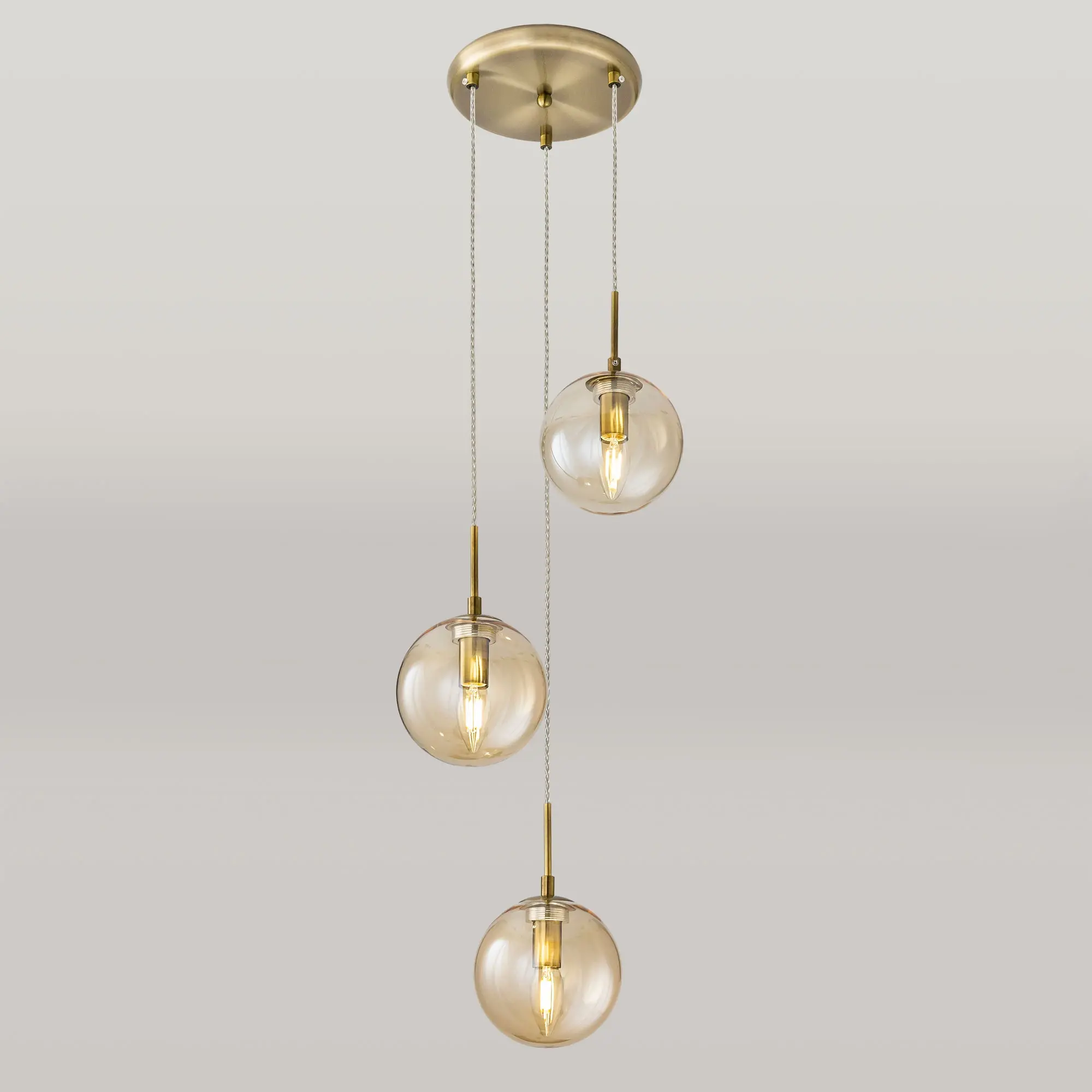 Люстра Citilux Томми CL102033 с тремя подвесными плафонами. Основание светильника металлическое, круглой формы, цвет бронза. Плафоны стеклянные в форме шара, прозрачные с тонировкой оттенка шампань (золотистые), подвешены ниспадающим каскадом, высота которого легко регулируется. В люстре используются 3 лампы с цоколем Е14 мощностью 40 Вт. Суммарная мощность люстры 120 Вт при использовании ламп накаливания. Площадь освещения около 7 кв. метров. Модель отлично подходит для помещений с высокими потолками. Великолепно выглядит в зоне стола или над стойкой бара. Прекрасно осветит лестничные проемы и пространства со вторым светом,