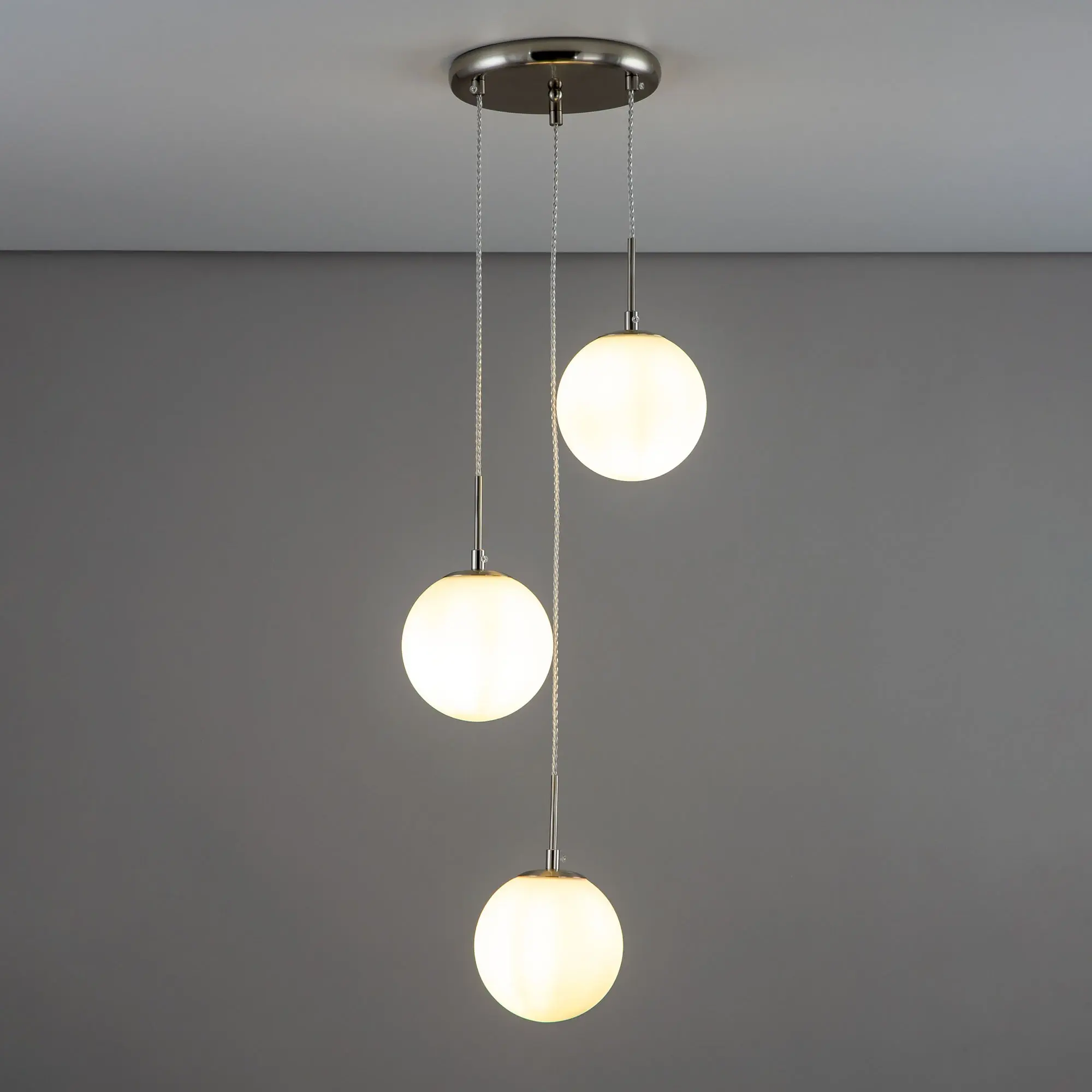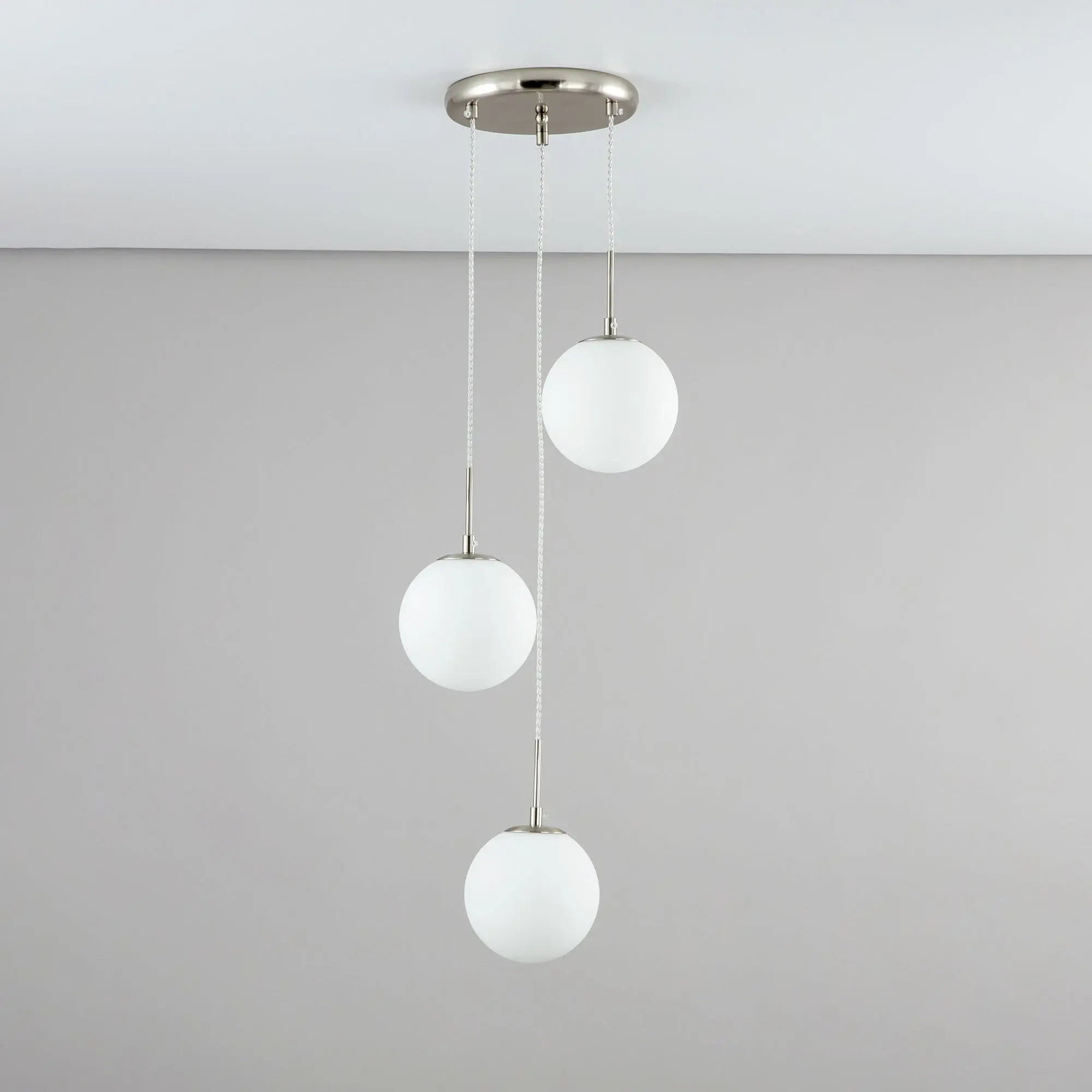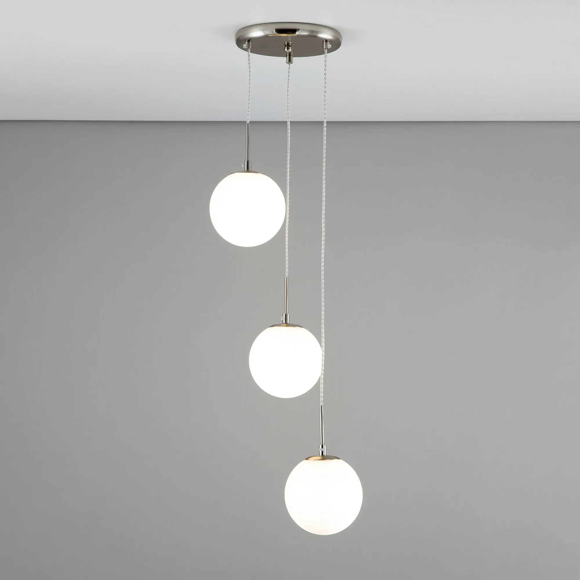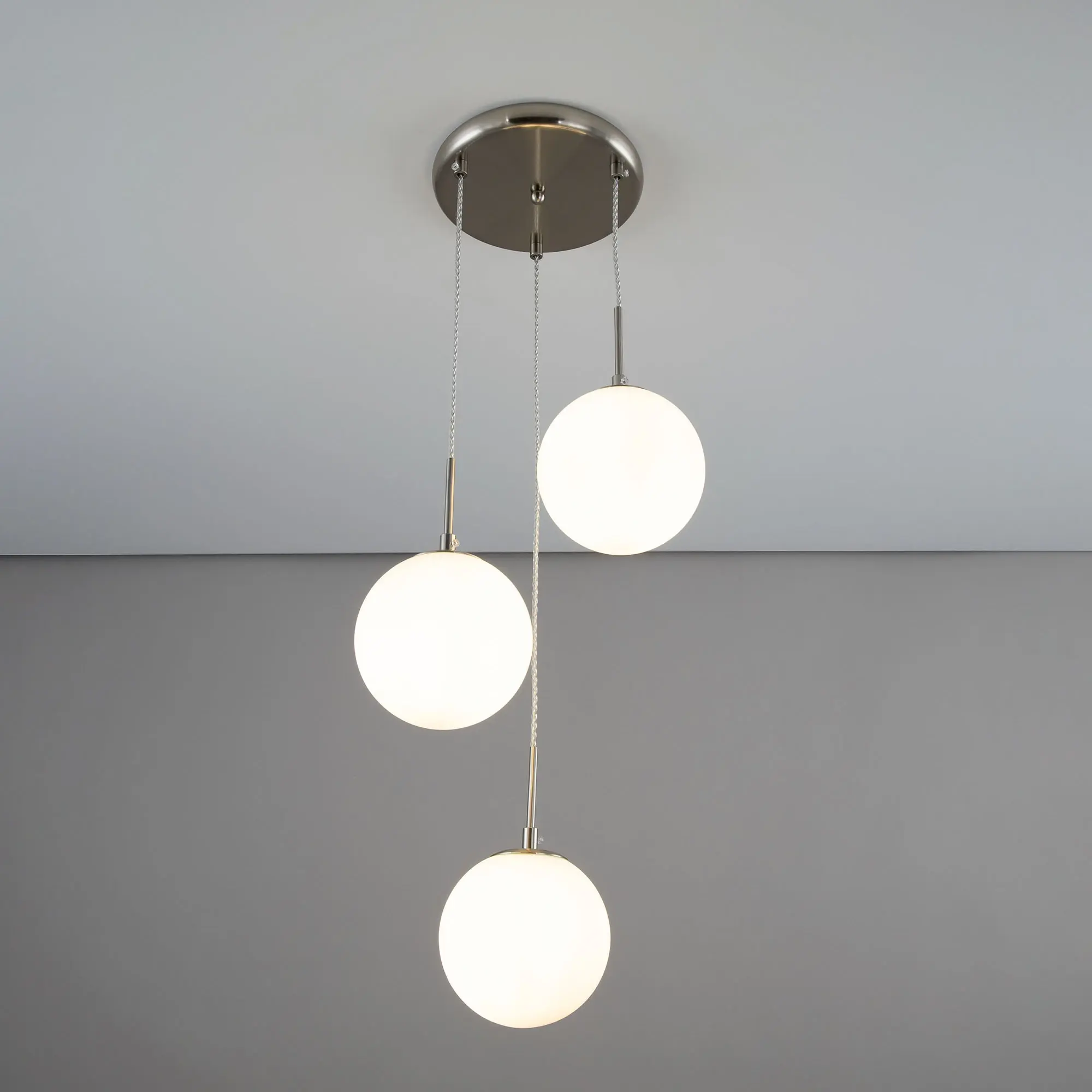 Люстра Citilux Томми CL102034 с тремя подвесными плафонами. Основание светильника металлическое, круглой формы, диаметр 33см, цвет матовый хром. Плафоны стеклянные матовые в форме шара, подвешены ниспадающим каскадом, высота легко регулируется в диапазоне от 0,35м до 1,15м. В люстре используются 3 лампы с цоколем Е14 максимальной мощностью для ламп накаливания 40Вт. Светодиодные лампы можно устанавливать более яркие. Площадь освещения около 7м². Модель отлично подходит для помещений с высокими потолками. Великолепно выглядит в зоне стола или над стойкой бара. Прекрасно осветит лестничные проемы и пространства со вторым светом.