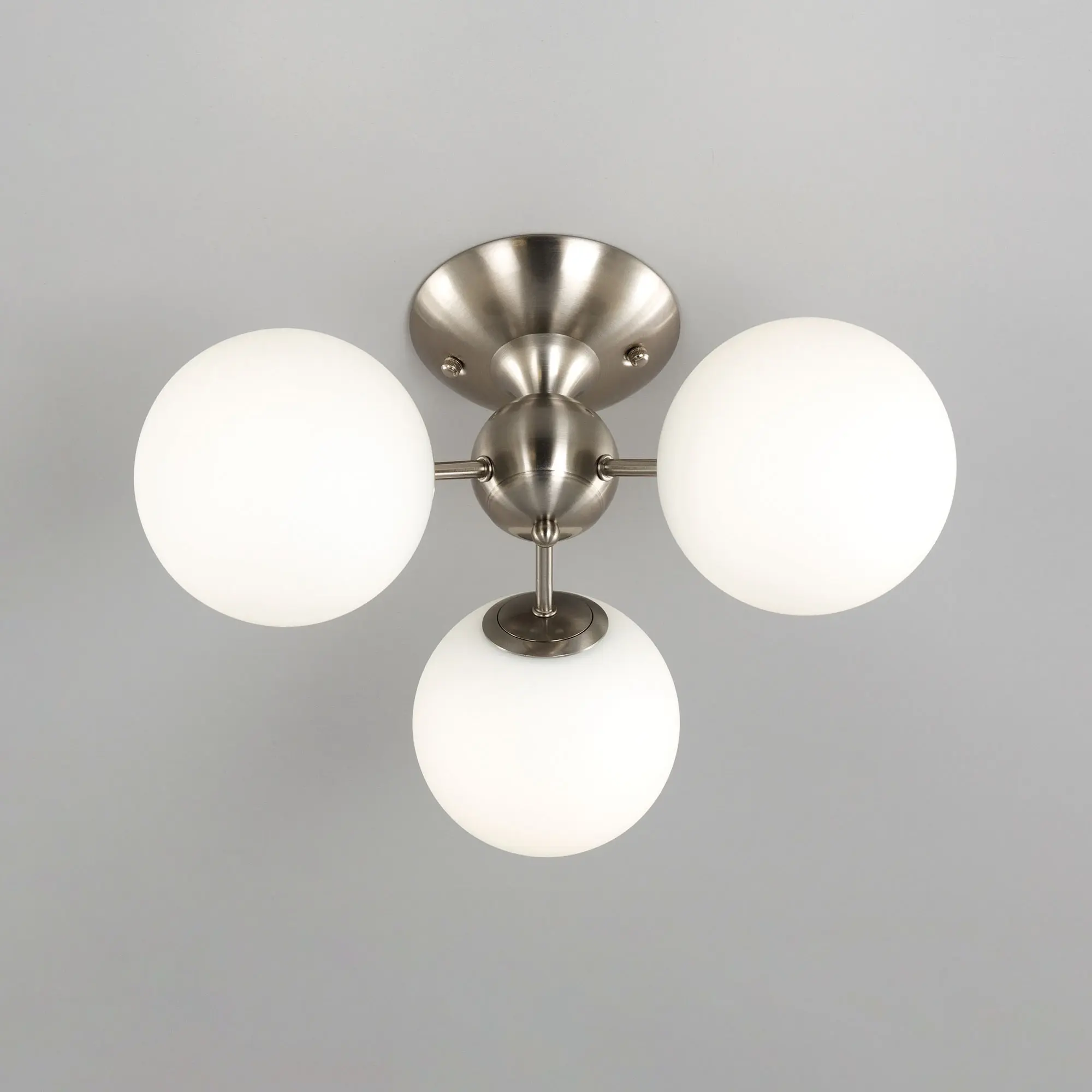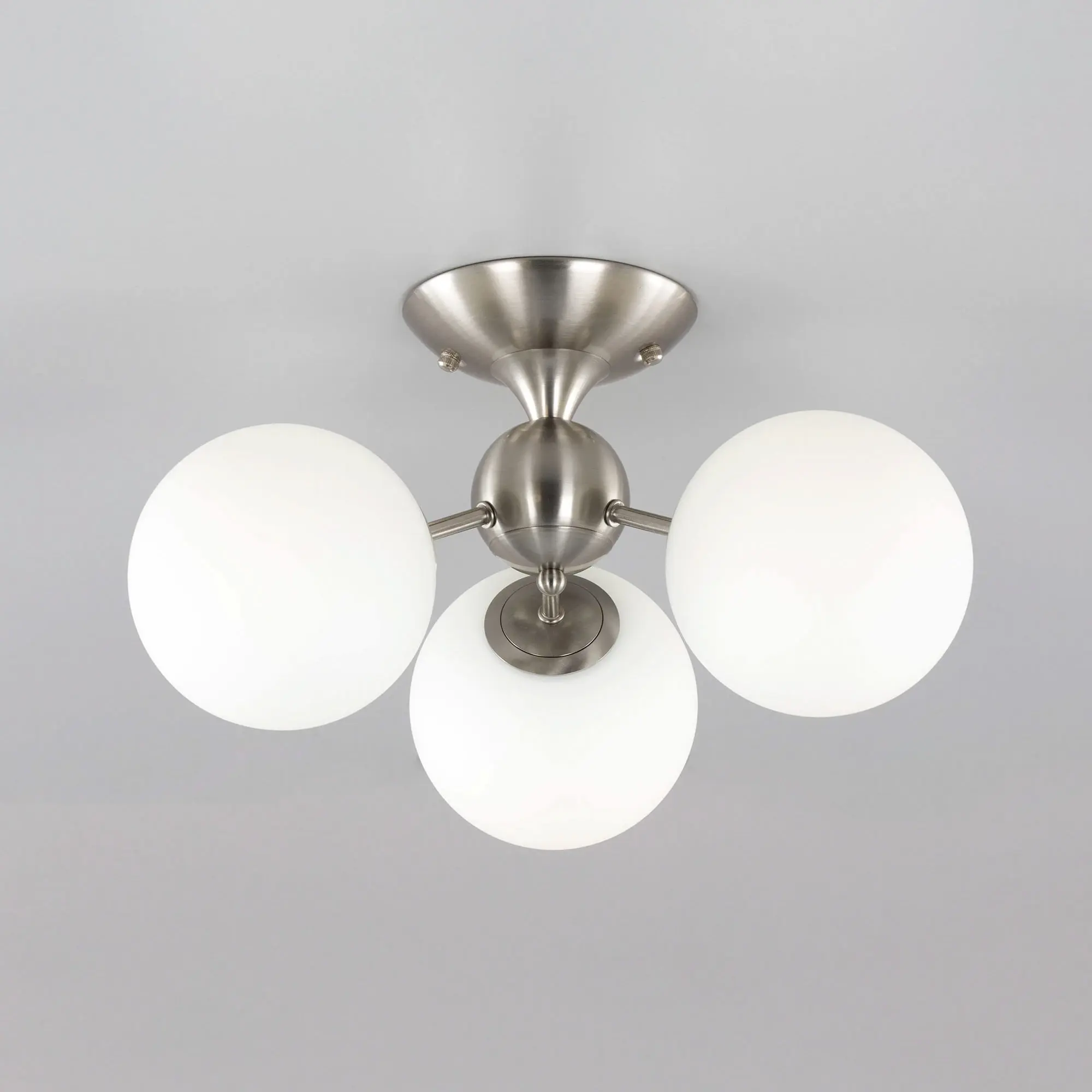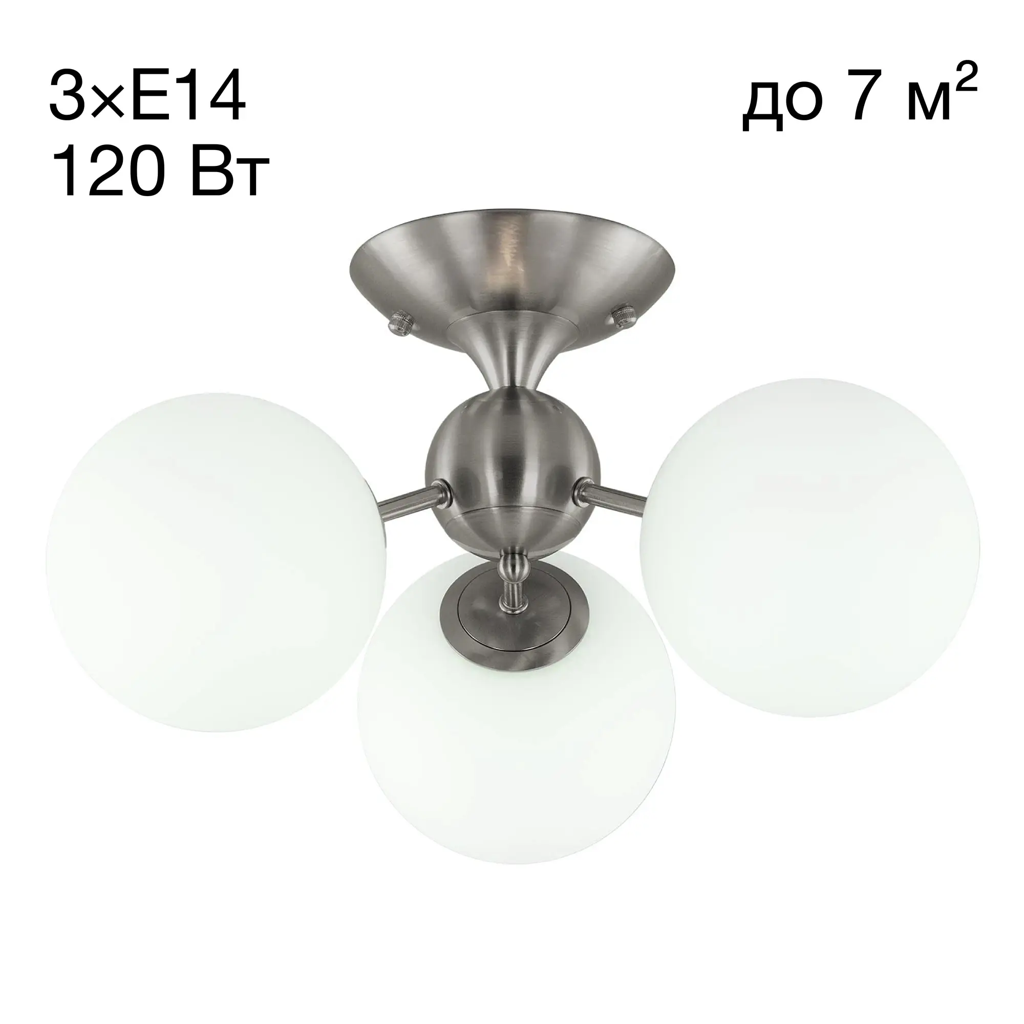 Потолочная люстра Citilux Томми CL102134 для интерьеров, оформленных в современном стиле. Корпус металлический, цвет матовый хром. Плафоны стеклянные, в форме шара, цвет белый матовый. В изделии 3 лампы с цоколем Е14, максимальной мощностью для ламп накаливания 40Вт. Светодиодные лампы можно использовать более яркие. Площадь освещения около 7м². Модель подходит для всех типов потолков, в том числе натяжных. Тип крепления-планка.