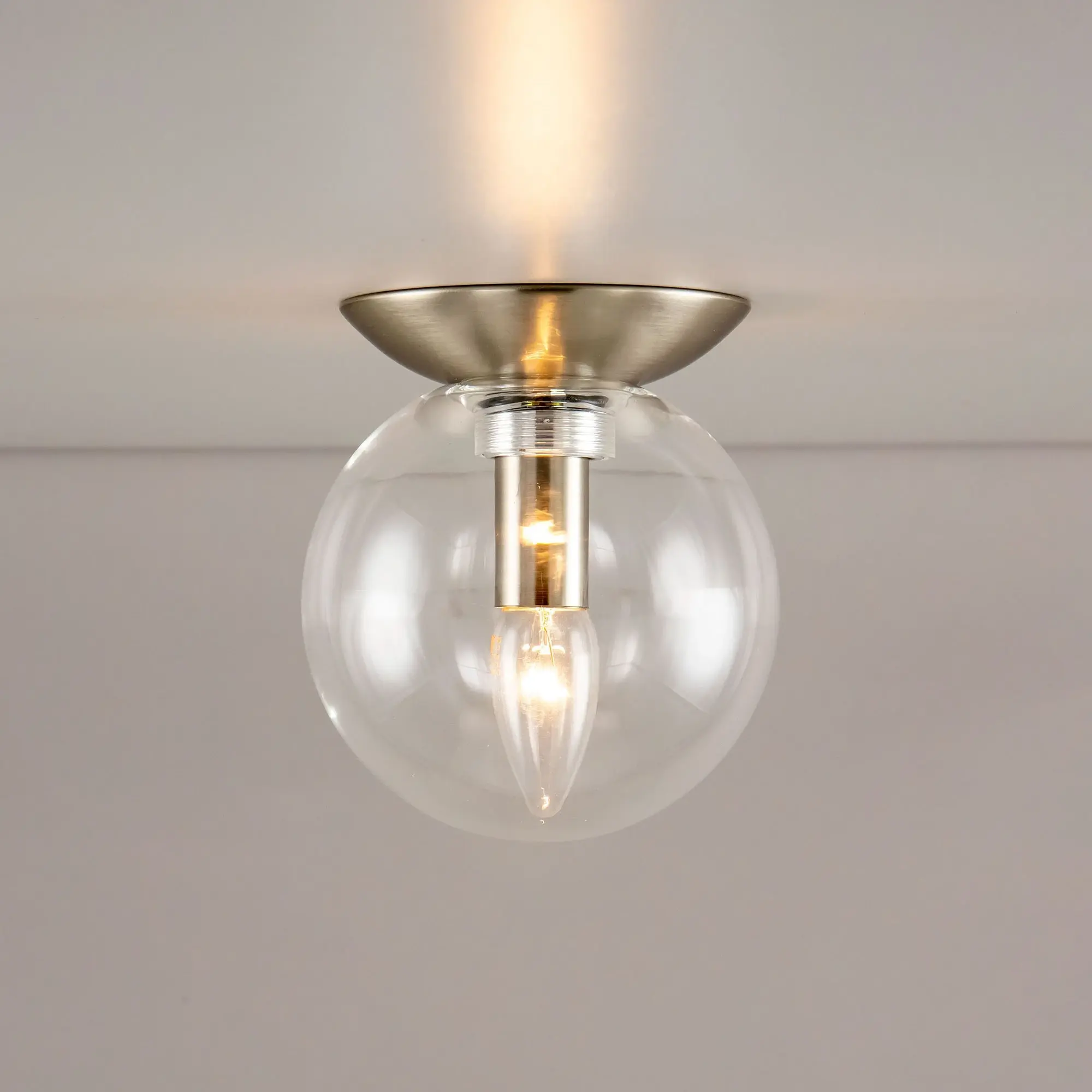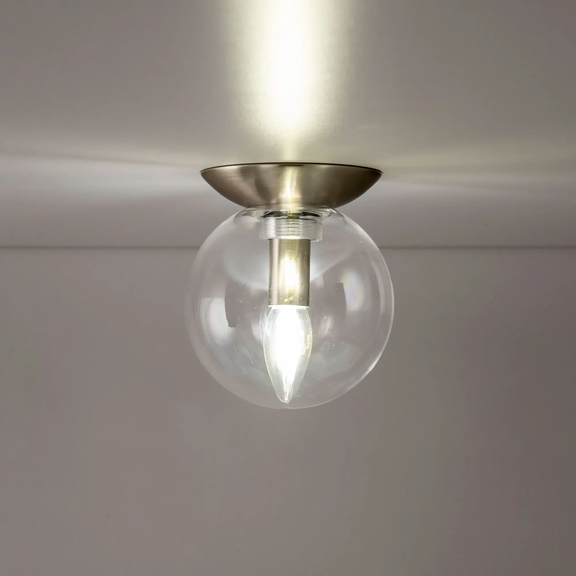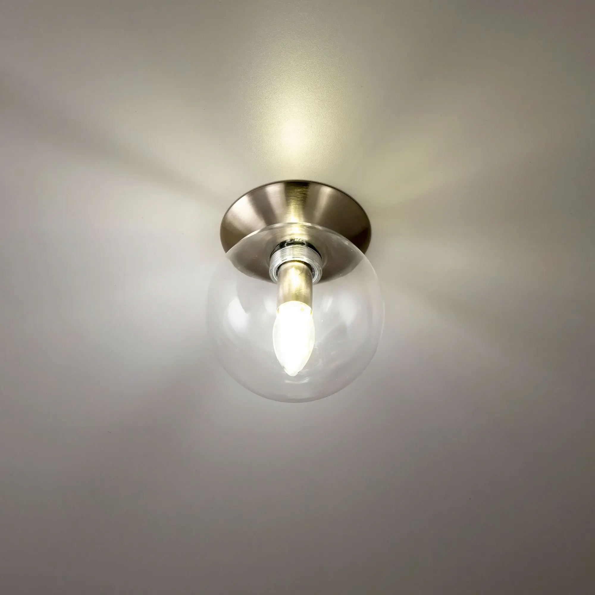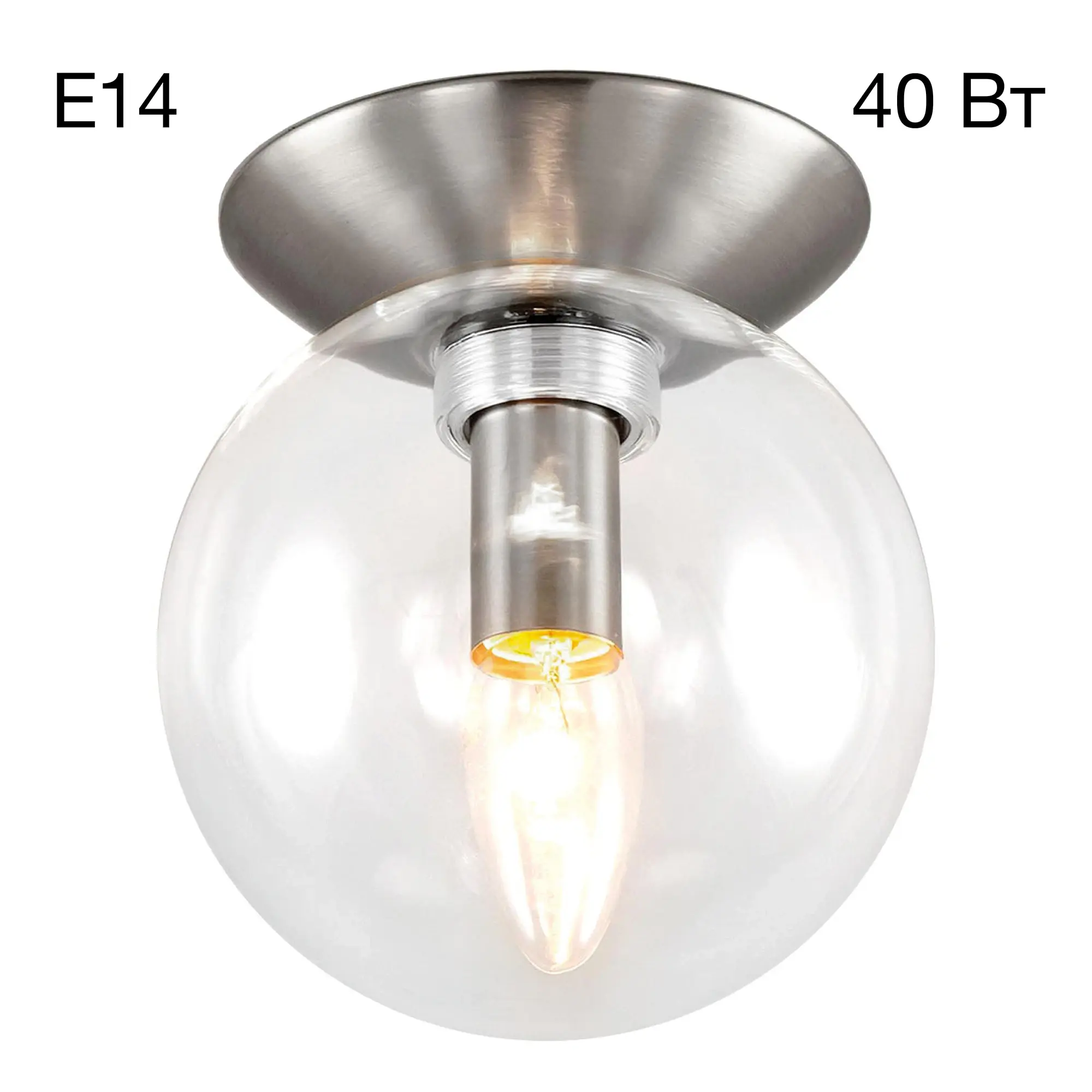 Настенно-потолочный светильник Citilux Томми CL102511 в современном стиле. Основание металлическое, круглой формы, цвет матовый хром. Плафон стеклянный, прозрачный в форме шара. В светильнике 1 лампа Е14, форма колбы свеча, максимальная мощность для ламп накаливания 40 Вт. Светодиодные лампы можно использовать более яркие. Площадь освещения около 2,5м². Высота 17см, диаметр 15см. Модель подходит для всех типов потолков, в том числе натяжных. Тип крепления – планка,