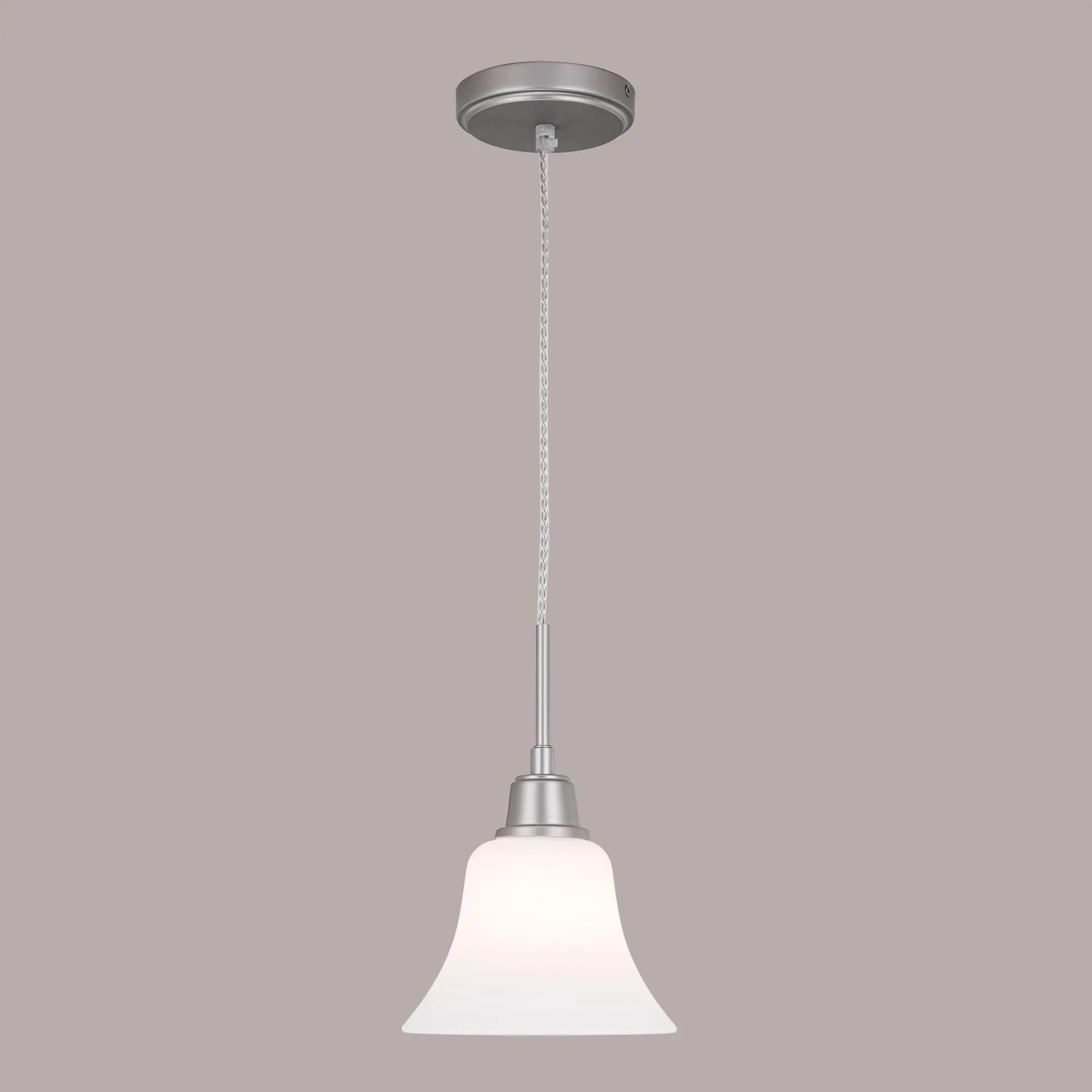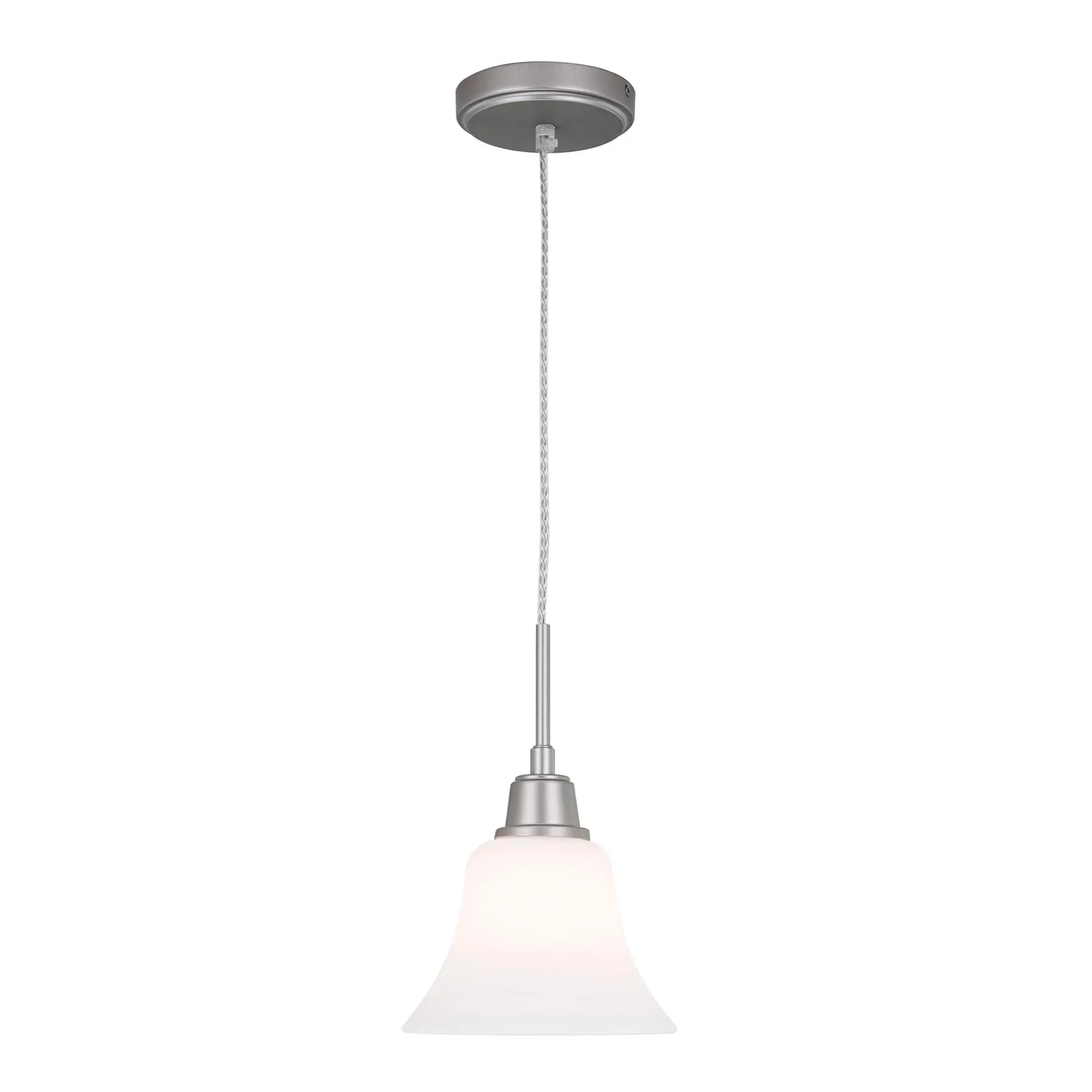 Подвесной светильник Citilux Trek CL560111 в стиле современной классики. Корпус изготовлен из металлического сплава с серебристым покрытием, плафон в форме колокольчика — из матового белого стекла.