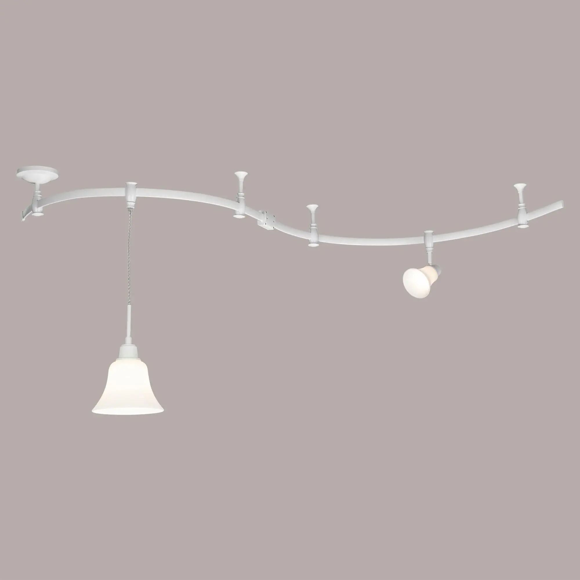 Подвесной трековый светильник Citilux Trek CL560210 в стиле современной классики. Корпус изготовлен из металлического сплава лаконичного белого оттенка, плафон в форме колокольчика — из матового белого стекла.
