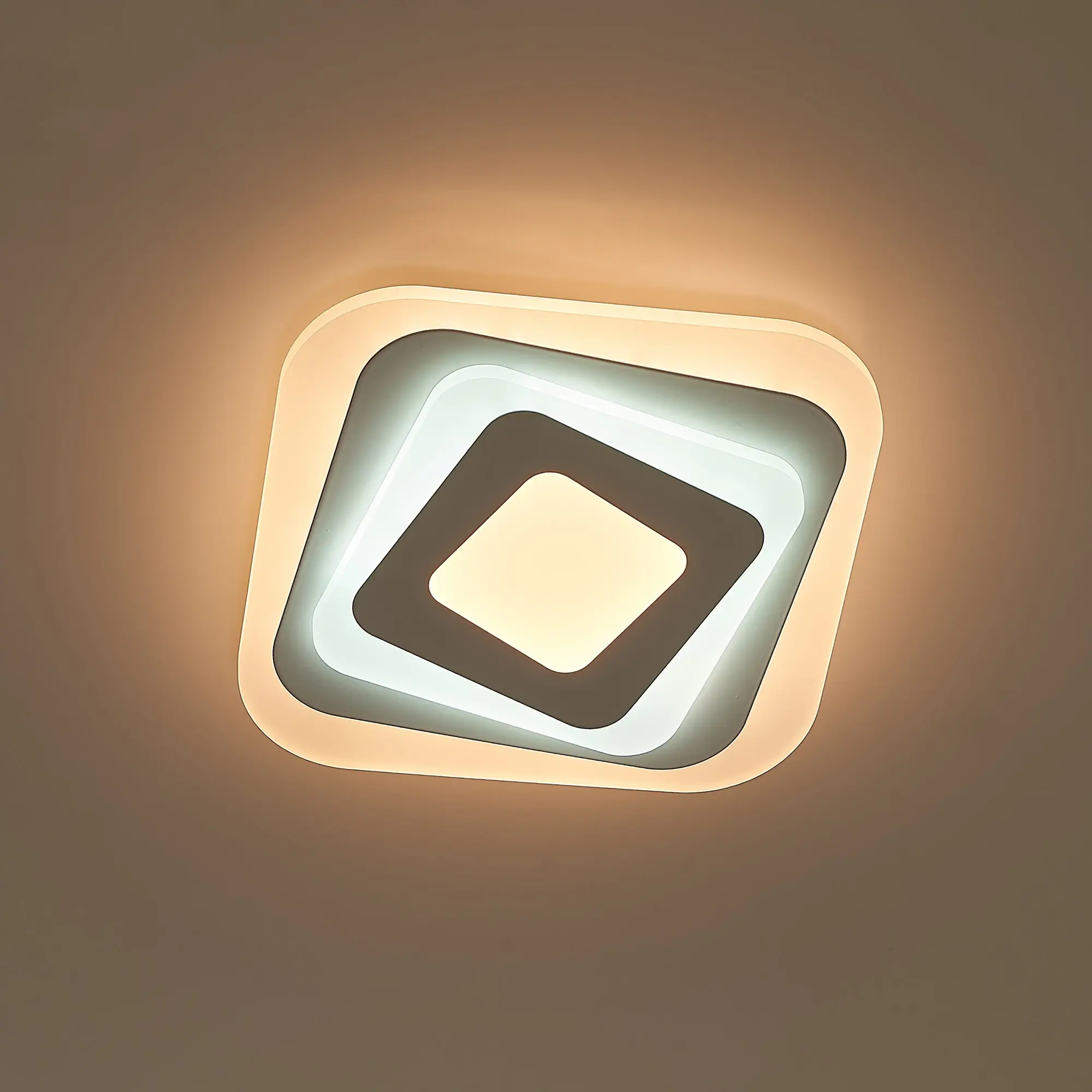 Светодиодный светильник Citilux Триест CL737B42 в современном стиле. Модель белого цвета, квадратной формы с закругленными углами. У изделия два светящихся яруса и центральная часть, которые могут светится как синхронно одним цветом, так и через один разными цветовыми температурами (выбирается при установке). Основание металлическое, рассеиватель из оптический полимера. Тип крепления – планка. Мощность 18Вт, световой поток 1400Лм, площадь освещаемая около 6м². Предустановлено 4 режима освещения, с управлением обычным настенным выключателем.