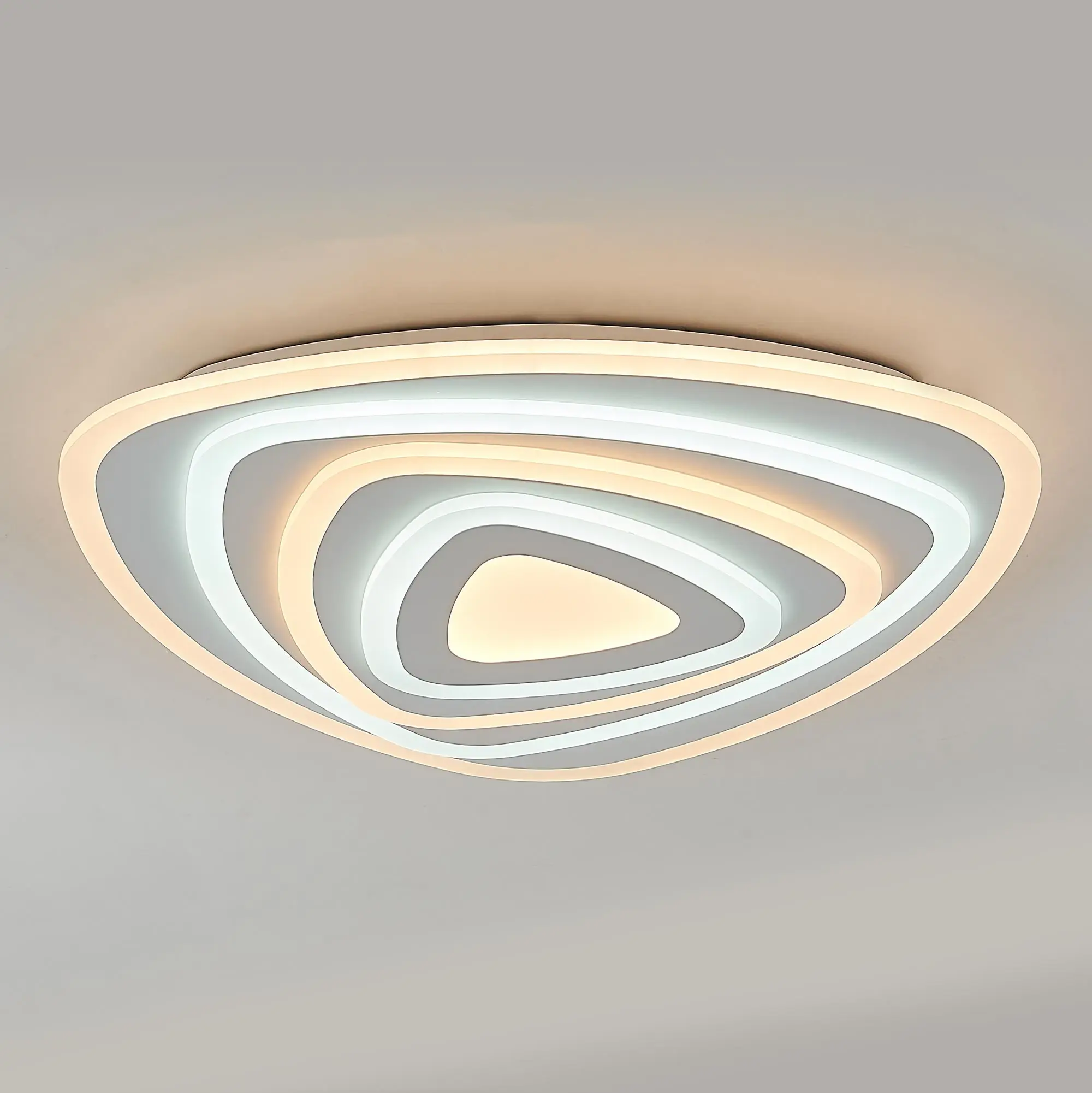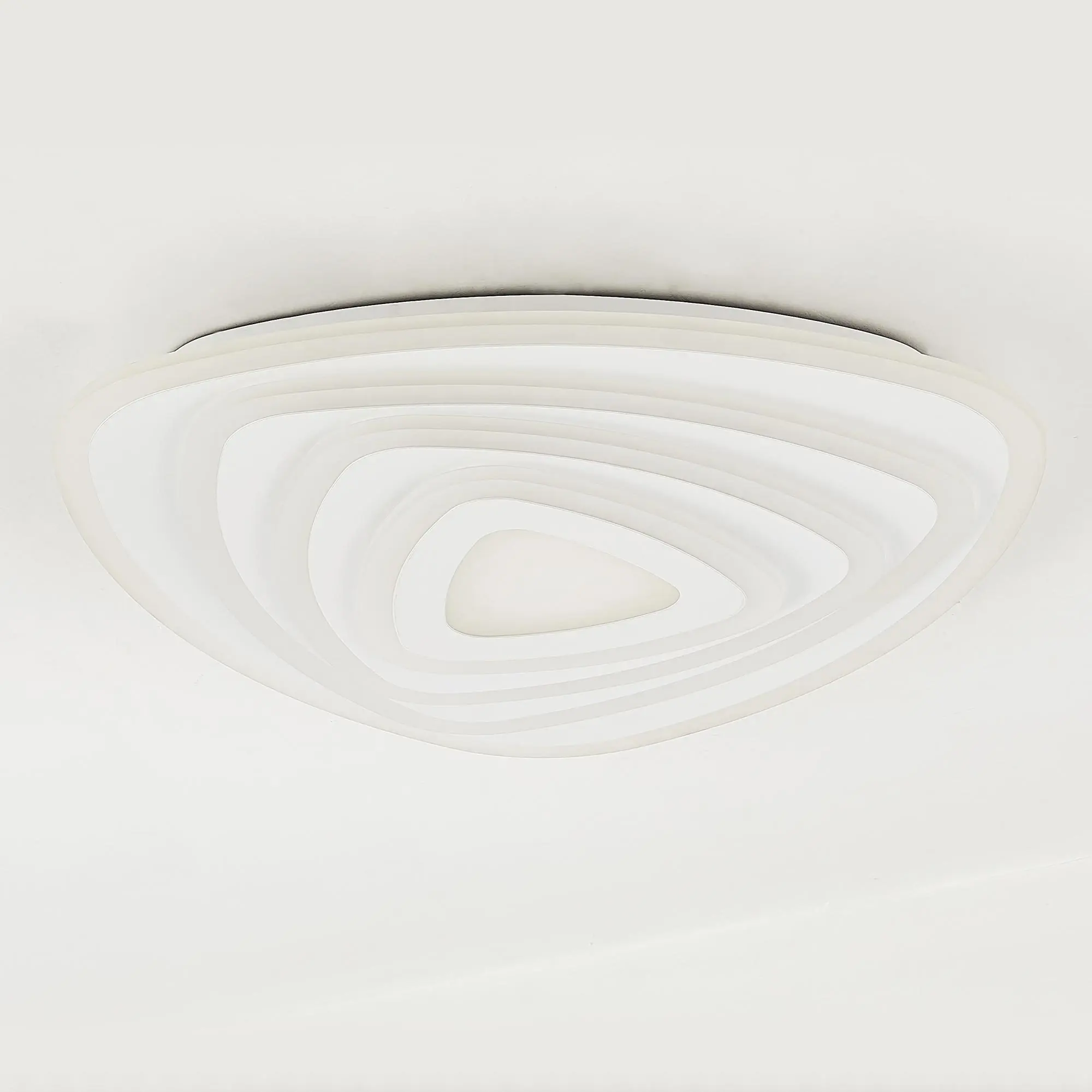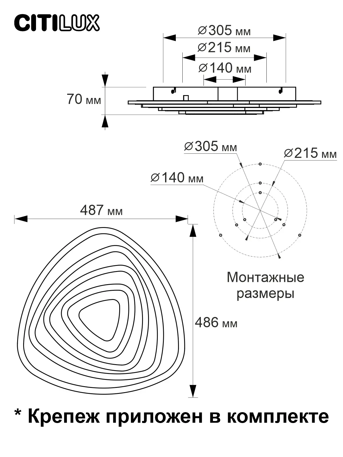 Выпускается с рассеивателем из оптического полимера с белыми декоративными элементами. Светильник накладной, треугольной формы, с закругленными углами. Крепление подходит для всех типов потолков, в том числе натяжных.