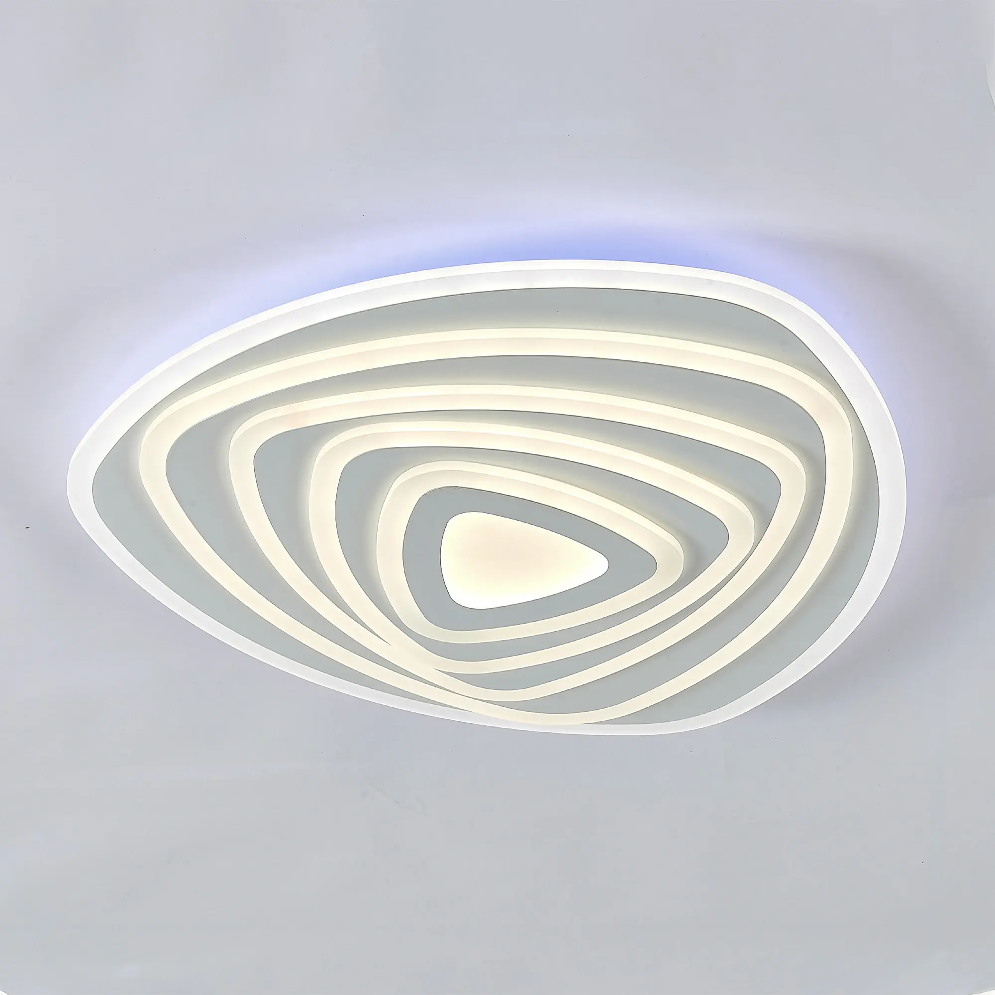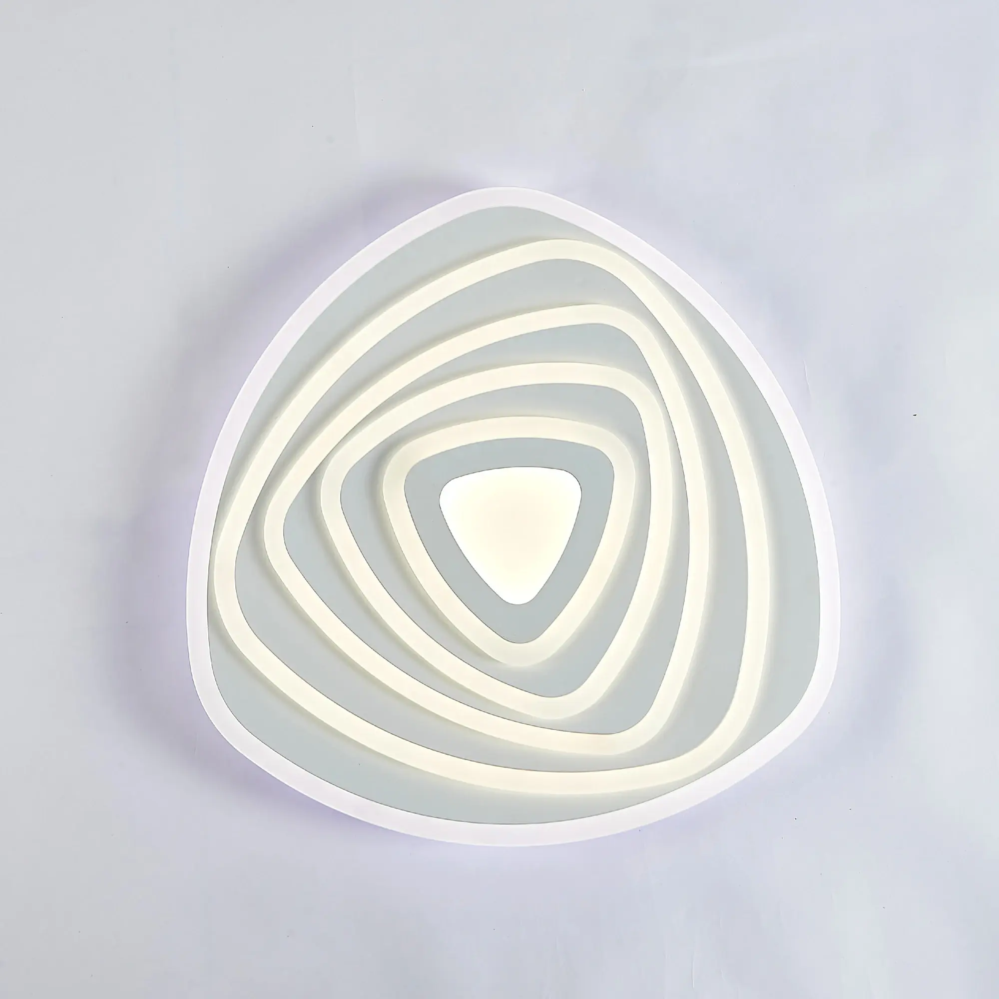 Выпускается с рассеивателем из оптического полимера с белыми декоративными элементами. Светильник накладной, треугольной формы, с закругленными углами. Крепление подходит для всех типов потолков, в том числе натяжных.
