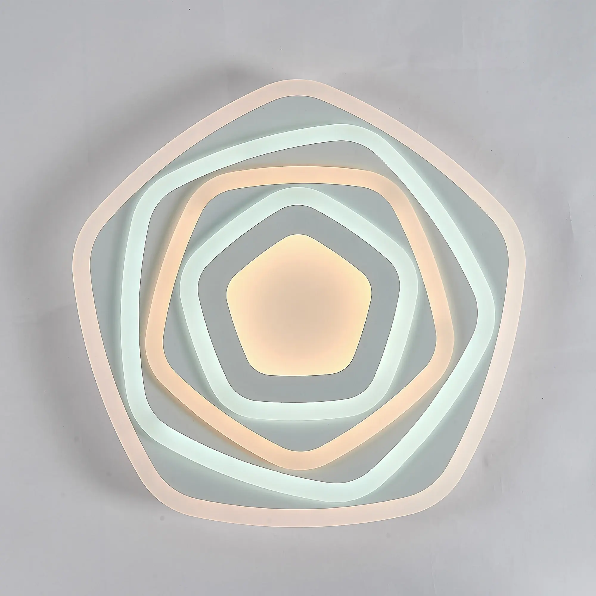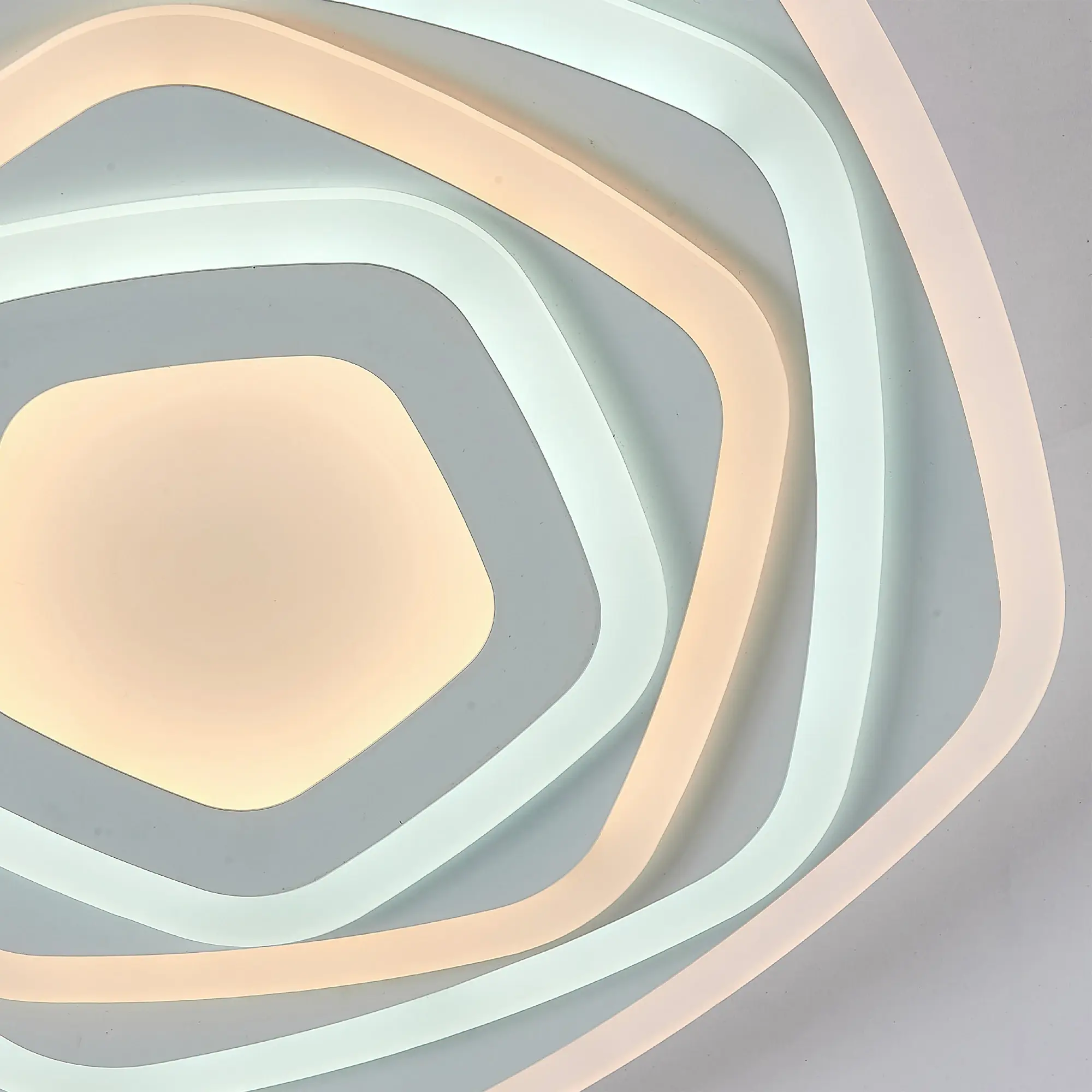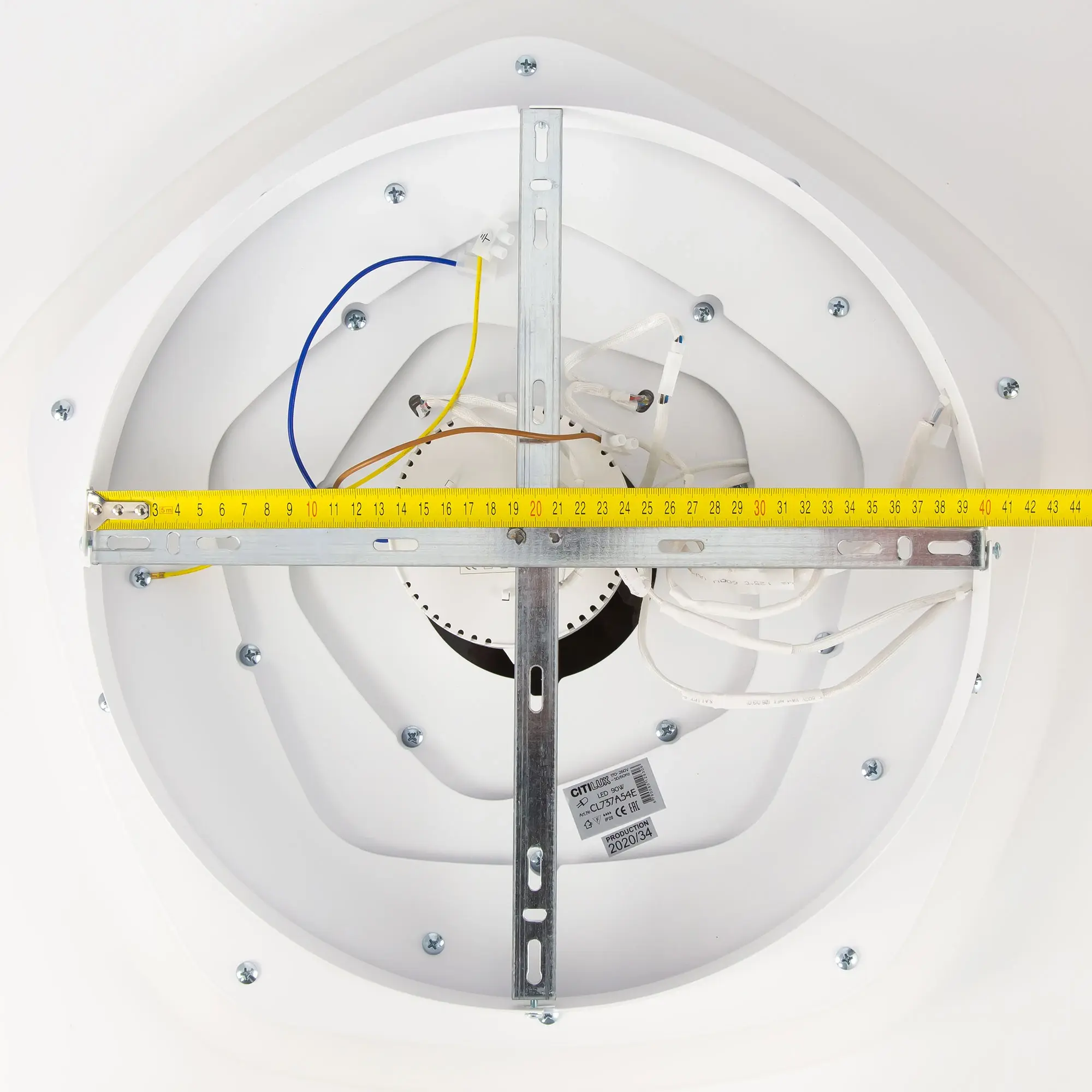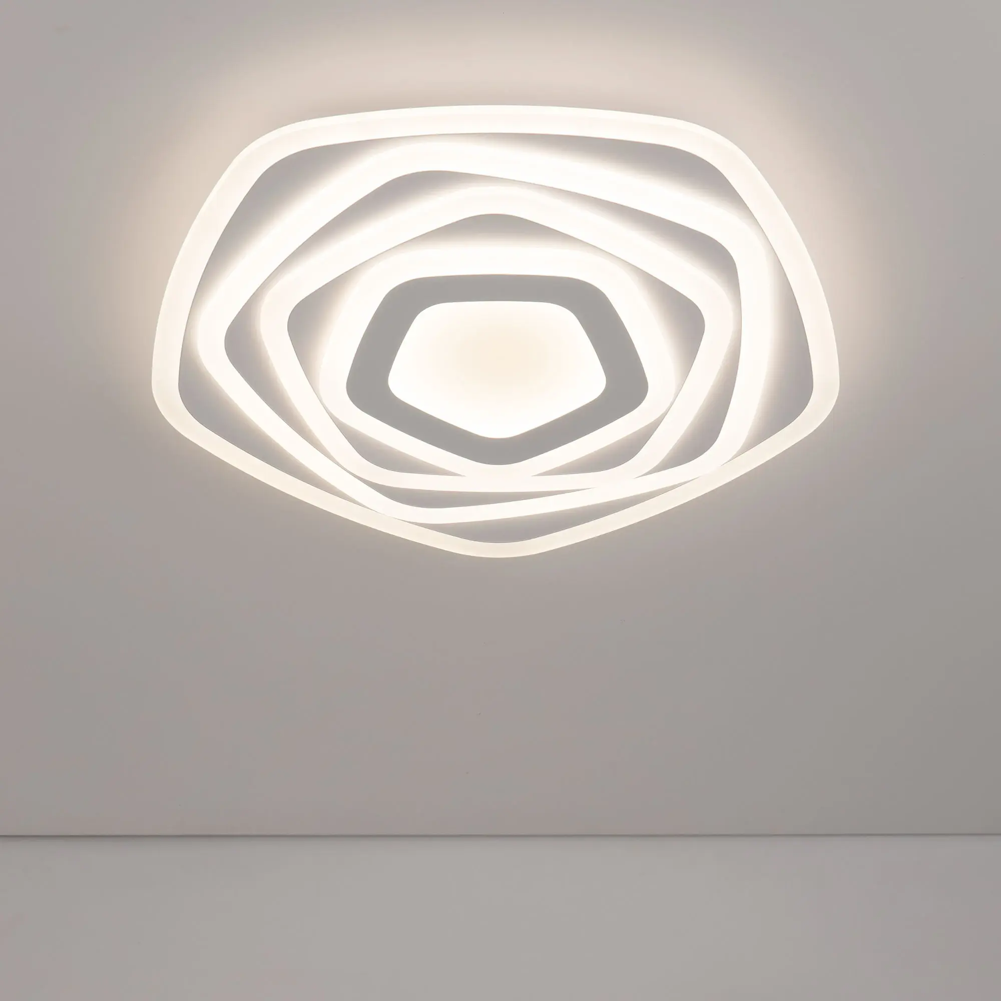 Выпускается с рассеивателем из оптического полимера с белыми декоративными элементами. Светильник накладной, пятиугольной формы, с закругленными углами. Крепление подходит для всех типов потолков, в том числе натяжных.