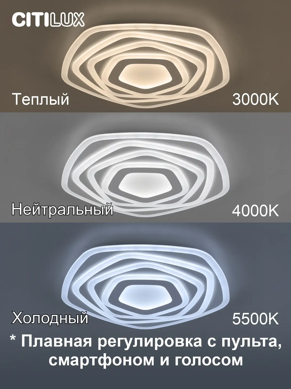 Светодиодная потолочная люстра Citilux Триест Смарт CL737A54E с голосовым управлением является ярким представителем современных УМНЫХ хай-тек светильников экосистемы Citilux SMART.