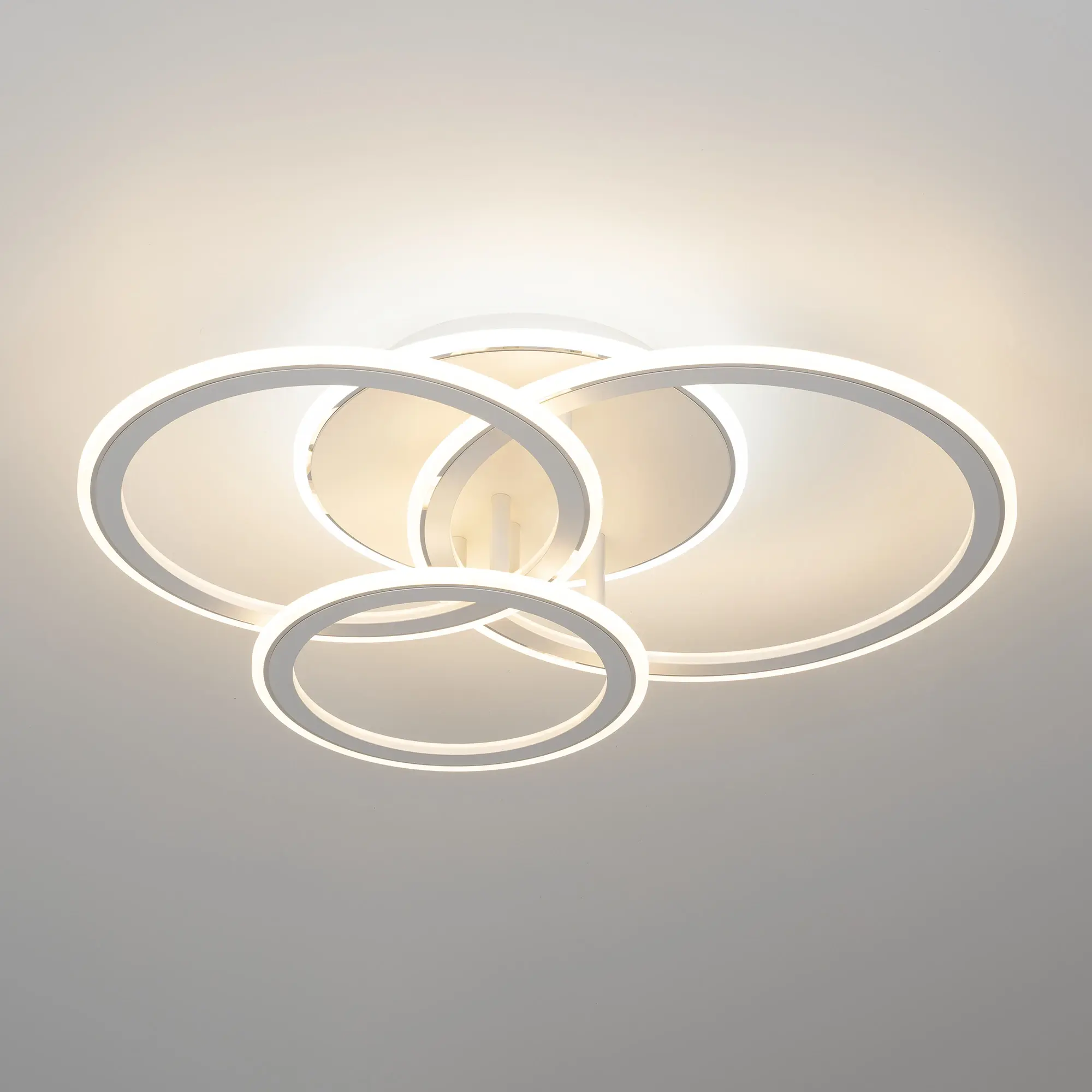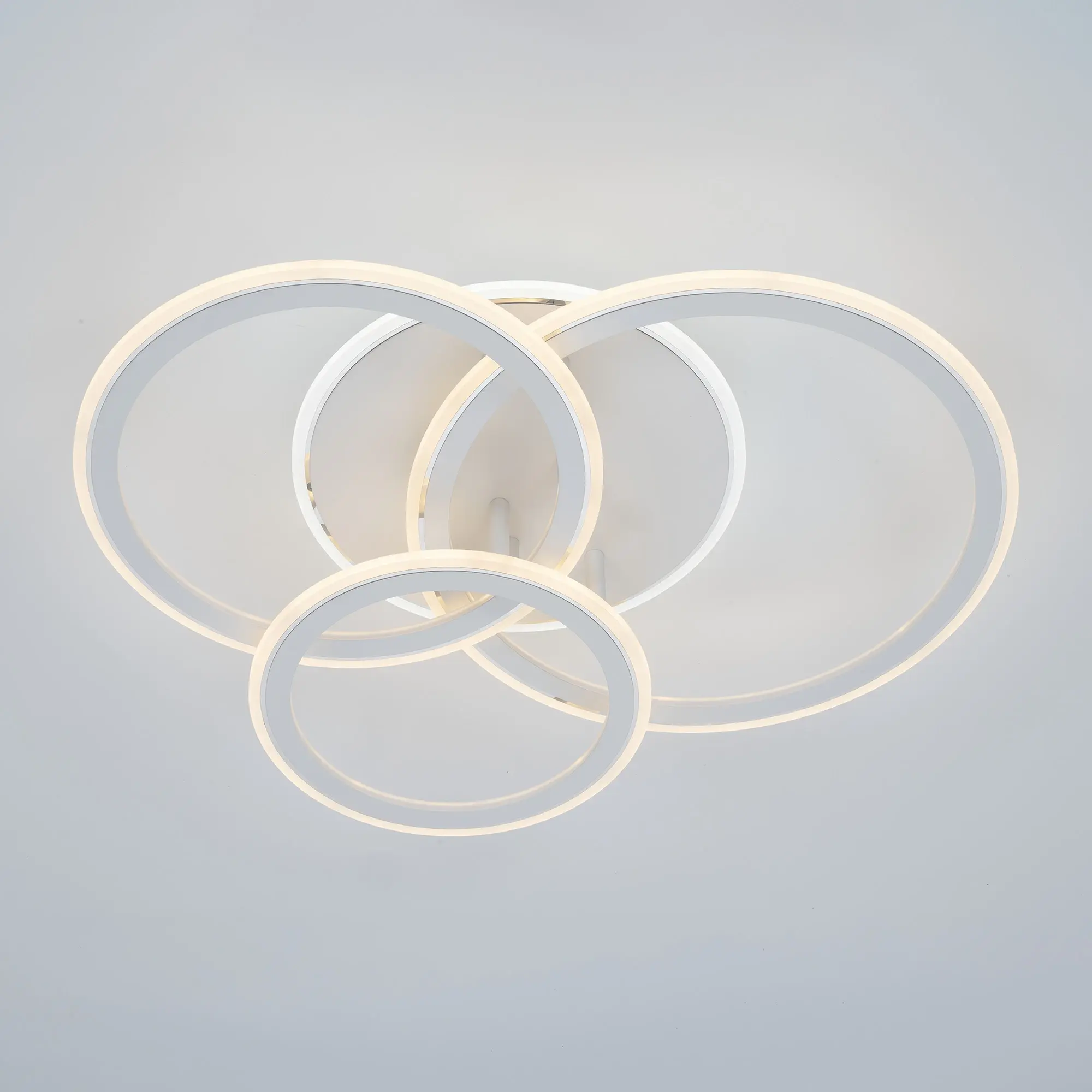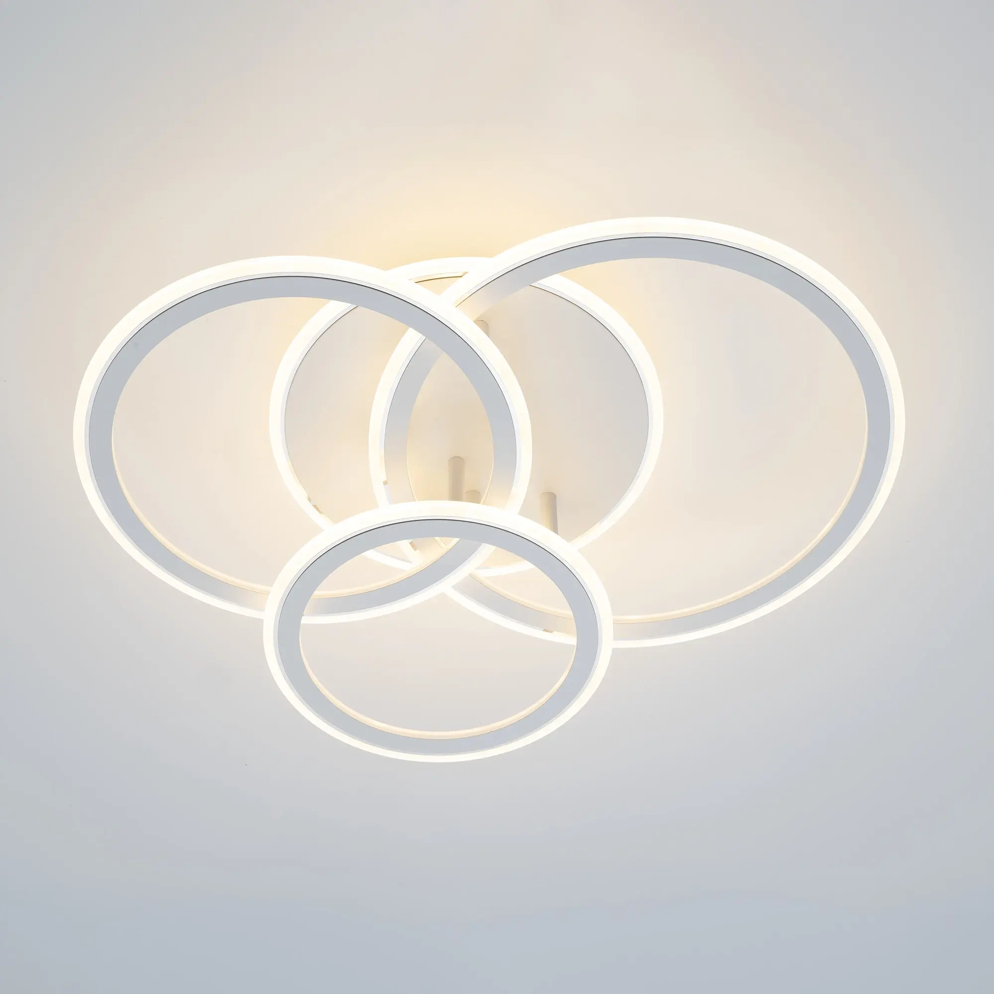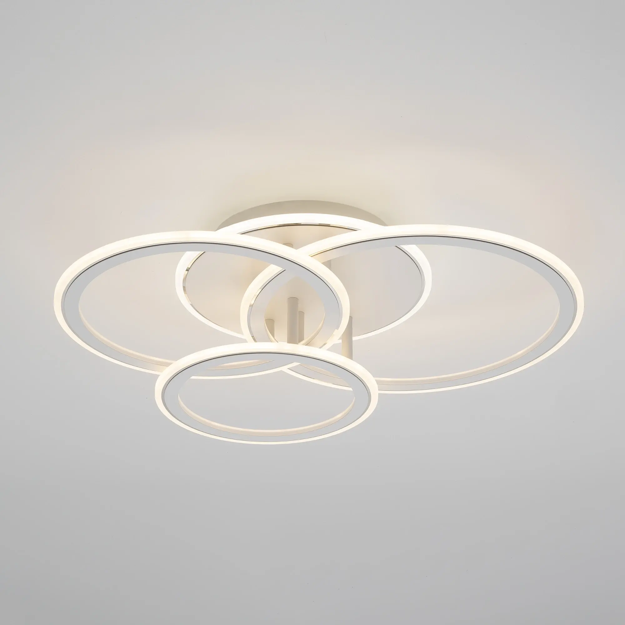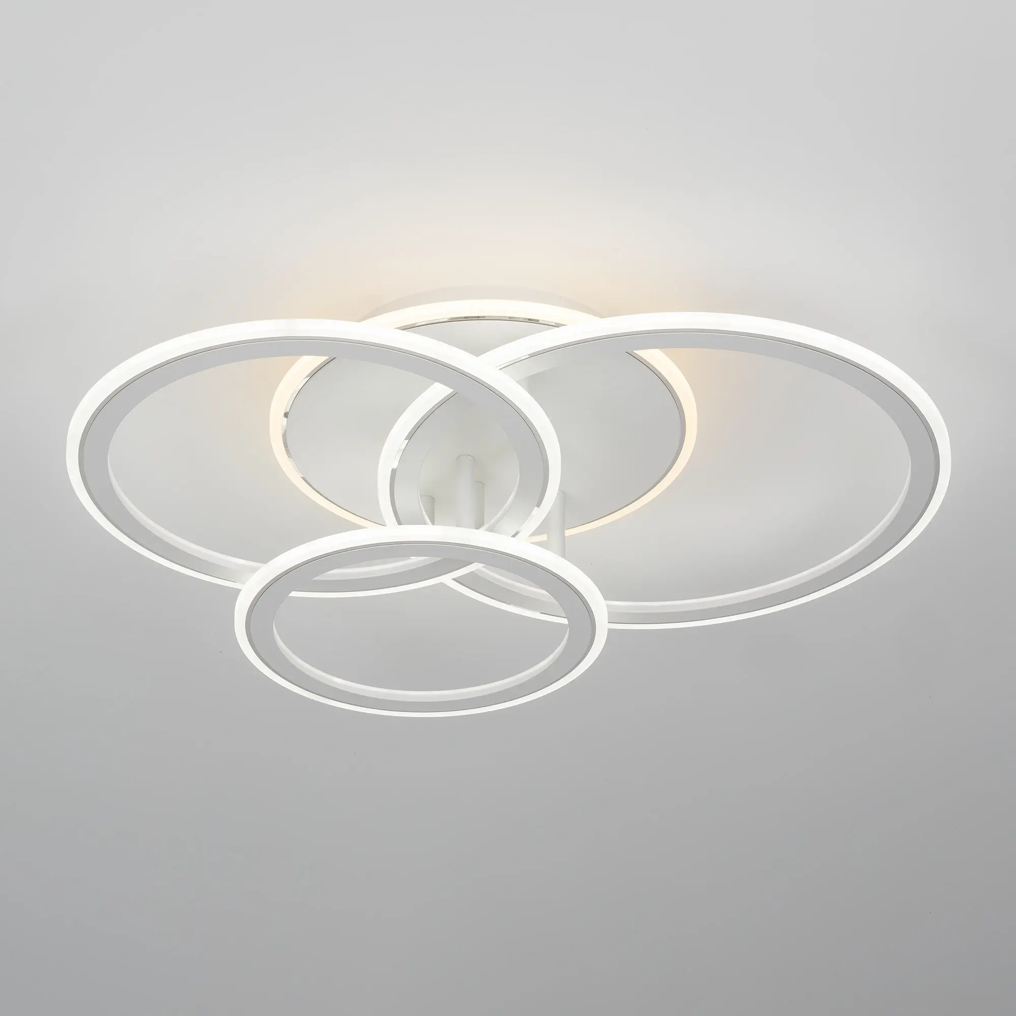 Светодиодная потолочная люстра Citilux Тринити CL238130 с пультом дистанционного управления выполнена в современном стиле. Корпус металлический, цвет белый матовый с утончённым хромированным декором. Основание круглое, три светодиодных модуля - плафона, формирующих внешний вид люстры, имеют форму колец.