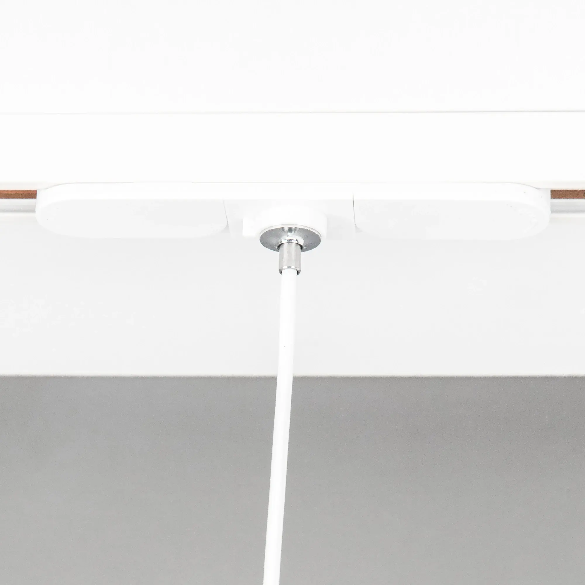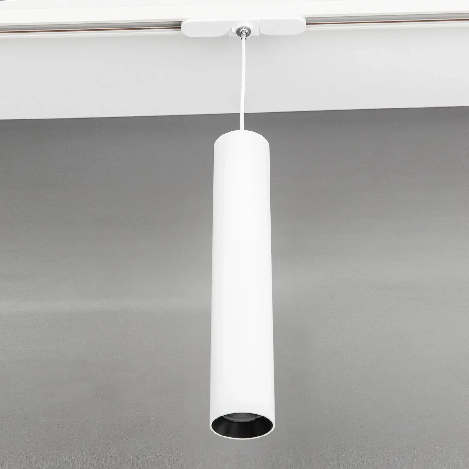 Мощность изделия 12Вт, цветовая температура 3000К – тёплый свет создаёт комфортную атмосферу без мерцания и пульсаций, предоставляя безопасное освещение для глаз. Высота подвеса легко регулируется при установке, позволяя настроить идеальное расположение светильника в диапазоне от 35см до 1,55м. Диаметр плафона 5,5см, высота 30см. Изюминкой светильника является элегантный компактный узел крепления к треку оригинальной конструкции.