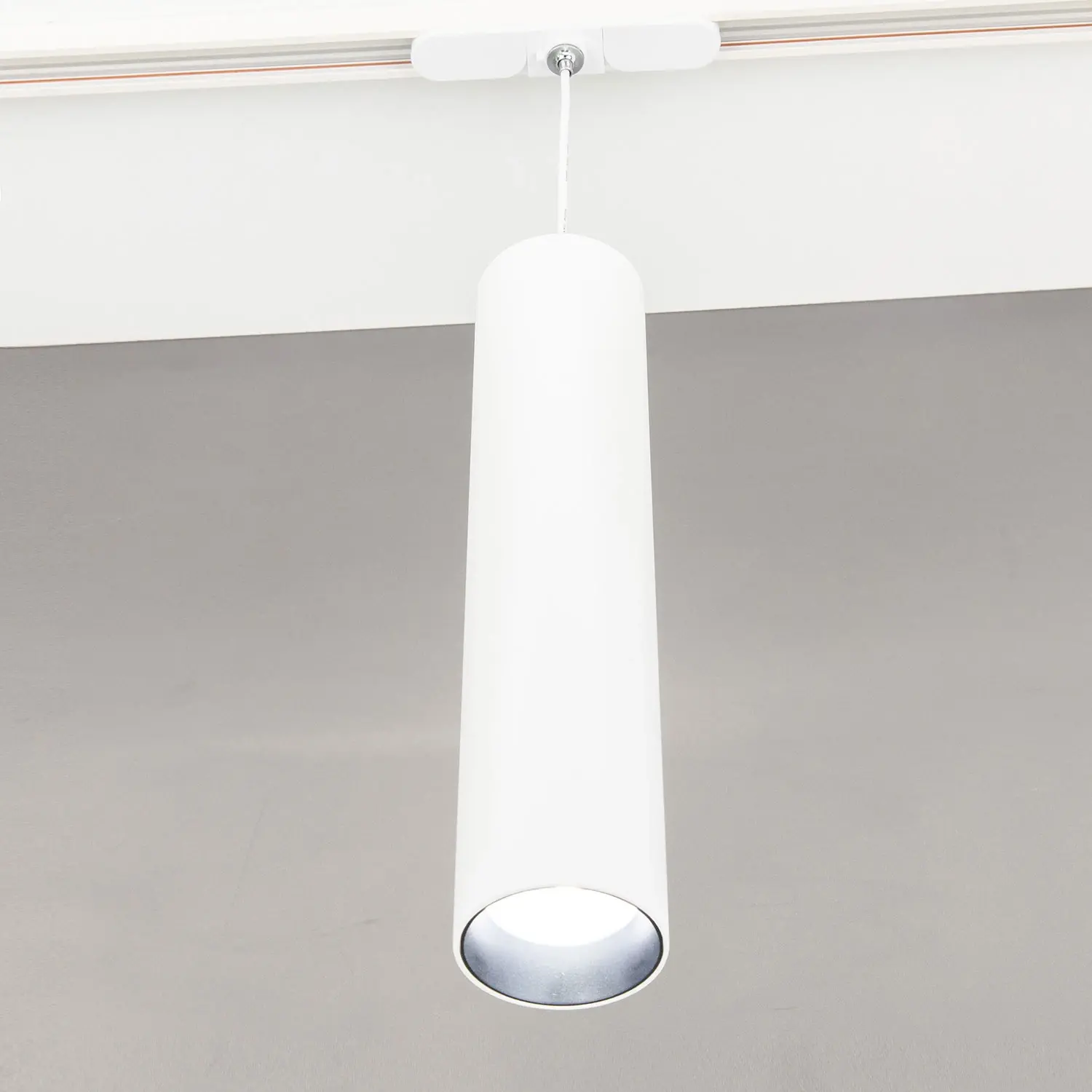 Мощность изделия 18Вт, цветовая температура 3000К – тёплый свет создаёт комфортную атмосферу без мерцания и пульсаций, предоставляя безопасное освещение для глаз. Высота подвеса легко регулируется при установке, позволяя настроить идеальное расположение светильника в диапазоне от 35см до 1,55м. Диаметр плафона 6,5см, высота 30см. Изюминкой светильника является элегантный компактный узел крепления к треку оригинальной конструкции.