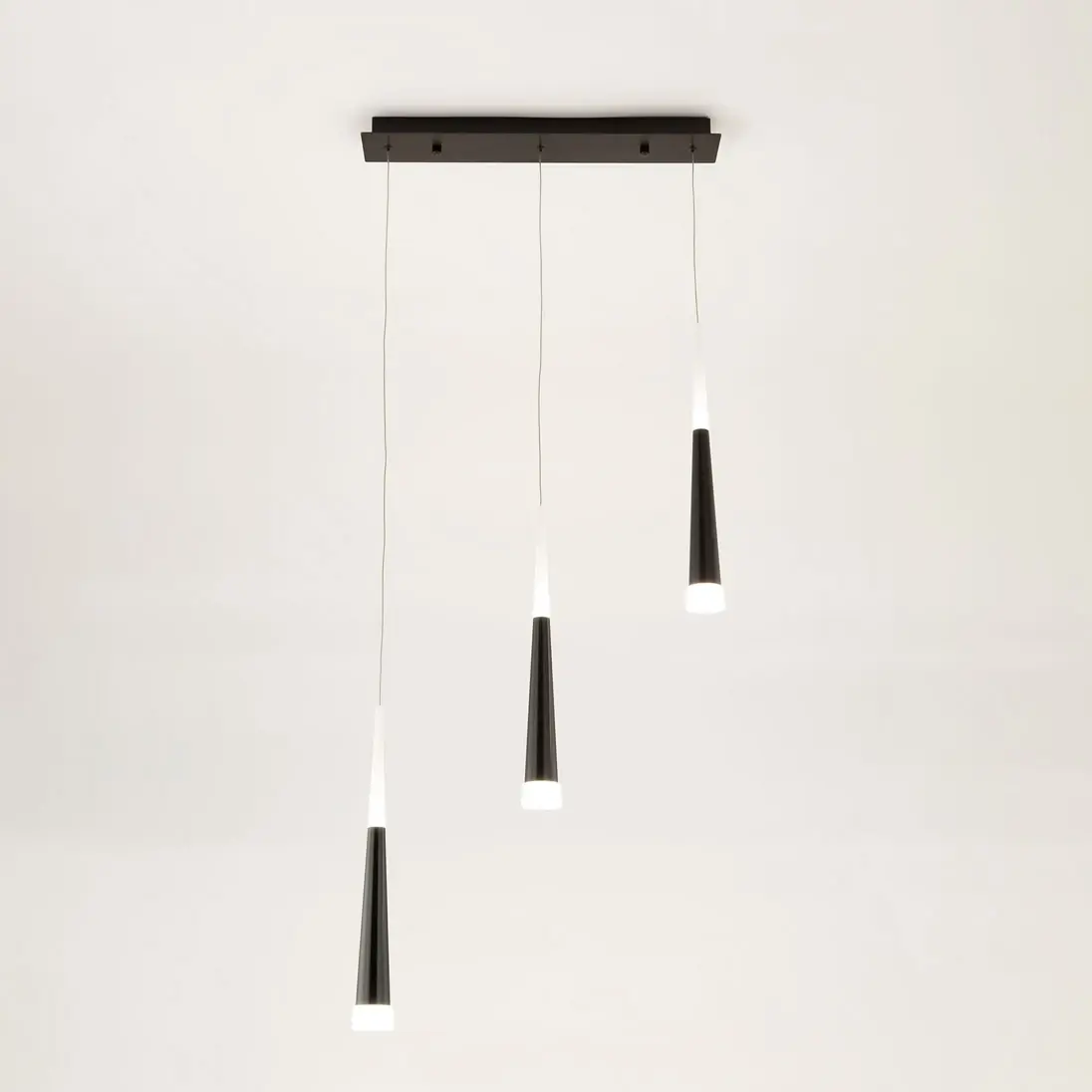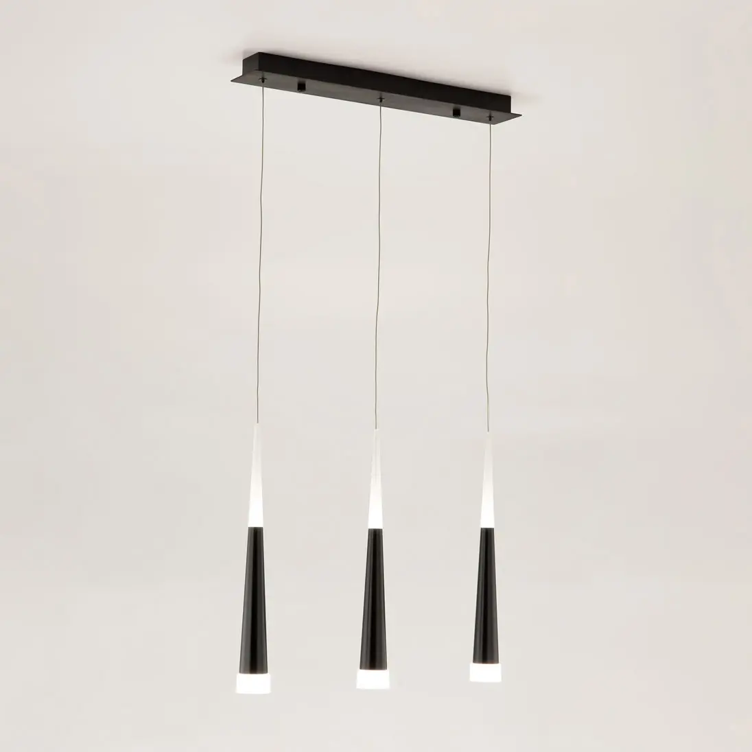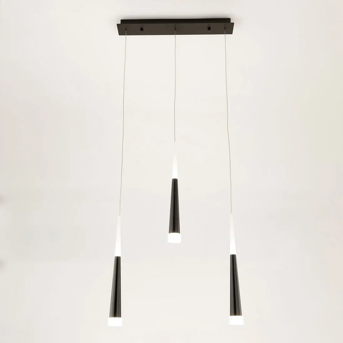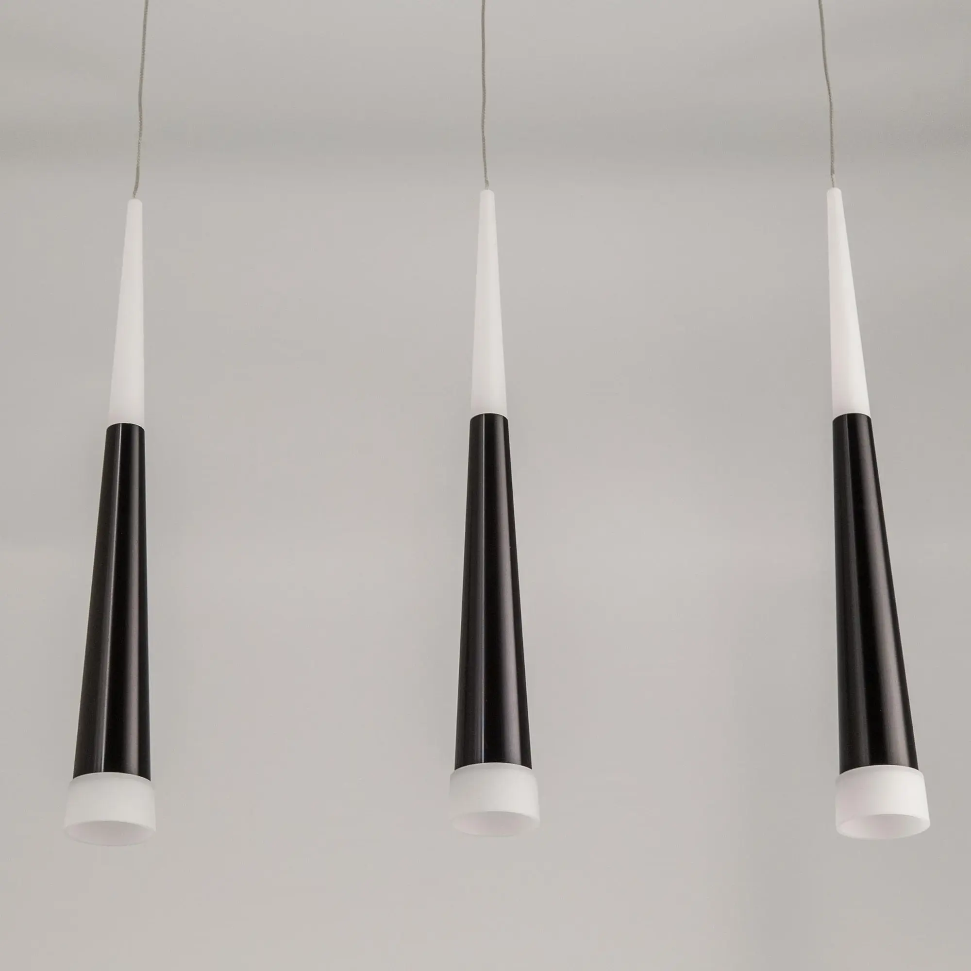 Эффектная модель светодиодного подвеса CL227031 с тремя черными конусными плафонами из коллекции «Вегас» общей мощностью в 21 Вт. Все подвесы новой коллекции «Вегас» излучают оптимальный для человеческих глаз, мягкий тёплый (3000К) свет, и разработаны в нескольких вариантах размера, от аккуратных одинарных до огромных и шикарных шеснадцатирожковых. Мощность каждого рожка в диодном эквиваленте 7 Вт, что соответствует приблизительно шестидесяти ваттной лампе накаливания. Данная модель светильника, с тремя плафонами, способна осветить помещение площадью от 4,5 до 7 квадратных метров. Внутри плафона подвеса стоят современные светодиоды, которые дают яркий и в тоже время рассеянный свет. Высота каждого элемента подвеса независимо регулируется, позволяя придавать светильнику индивидуальный дизайн. Для вашего удобства при выборе мы создали коллекцию в 4-х цветах, которые сейчас особенно в тренде у дизайнеров интерьера, это – строгий чёрный, мягкий кофейный, элегантный алюминий и волнующий тёплый шампань. Серия «Вегас» отлично подходит для роскошных интерьеров с высокими потолками или для лестничных пролетов, ее подвесами можно украсить: кухню, прихожую, коридор, кабинет офиса, а также интерьеры кафе и ресторанов соответствующей стилистики.