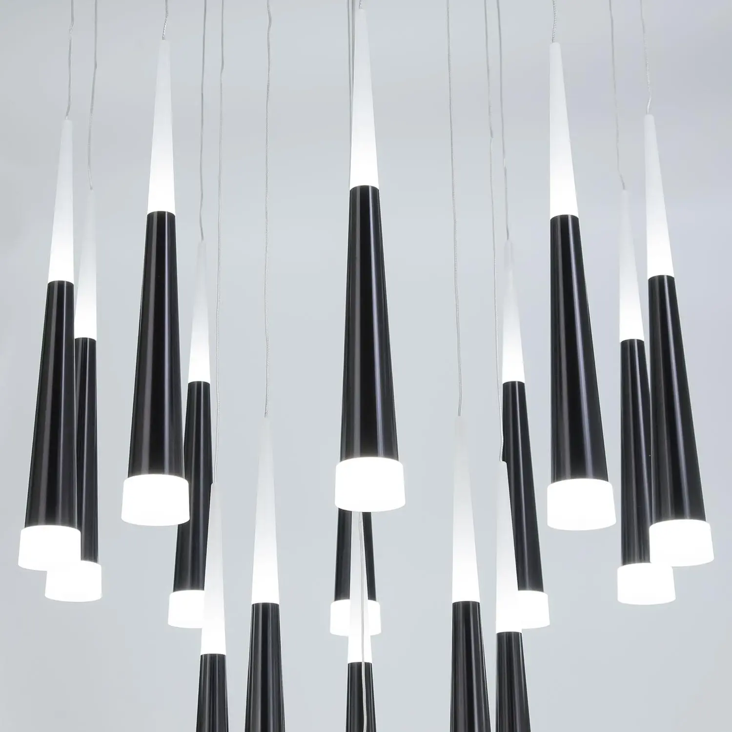 Роскошная подвесная светодиодная слюстра CL227161 с 16-ю конусными плафонами черного цвета из коллекции «Вегас» общей мощностью в 112 Вт. Все подвесы новой коллекции «Вегас» излучают оптимальный для человеческих глаз, мягкий тёплый (3000К) свет, и разработаны в нескольких вариантах размера, от аккуратных одинарных до огромных и шикарных шеснадцатирожковых. Мощность каждого рожка в диодном эквиваленте 7 Вт, что соответствует приблизительно шестидесяти ваттной лампе накаливания. Данная модель люстры, с 16-ю плафонами, способна осветить помещение площадью от 24,5 до 38 квадратных метров! Внутри плафона подвеса стоят современные светодиоды, которые дают яркий и в тоже время рассеянный свет. Высота каждого элемента подвеса независимо регулируется, позволяя придавать светильнику индивидуальный дизайн. Для вашего удобства при выборе мы создали коллекцию в 4-х цветах, которые сейчас особенно в тренде у дизайнеров интерьера, это – строгий чёрный, мягкий кофейный, элегантный алюминий и волнующий тёплый шампань. Серия «Вегас» отлично подходит для роскошных интерьеров с высокими потолками или для лестничных пролетов, ее подвесами можно украсить: кухню, прихожую, коридор, кабинет офиса, а также интерьеры кафе и ресторанов соответствующей стилистики.
