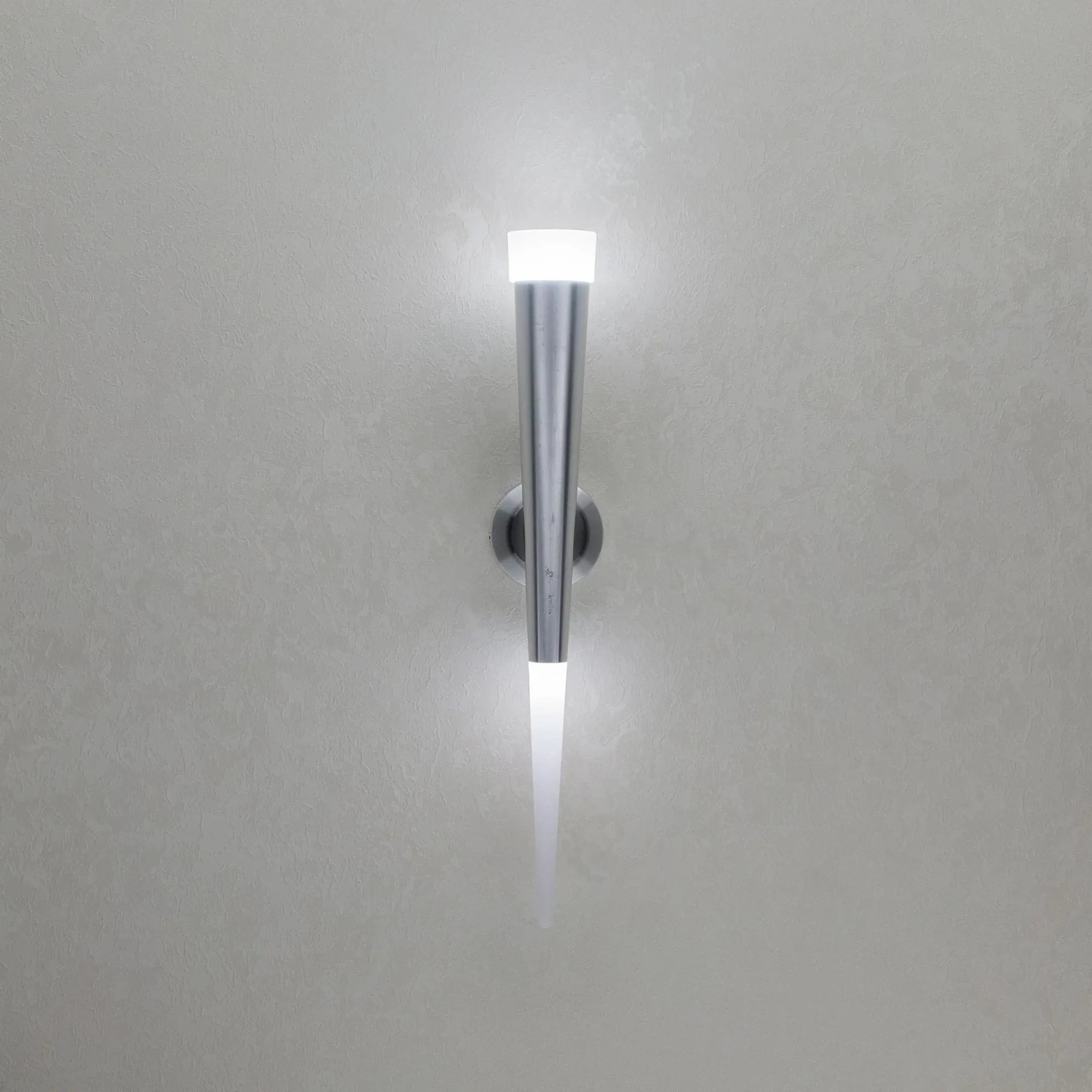 Светодиодный бра CL227310 цвета хром, с конусным плафоном из коллекции «Вегас» мощностью 7 Вт, что соответствует приблизительно шестидесяти ваттной лампе накаливания. Внутри плафона бра установлены современные светодиоды, которые дают яркий и в тоже время рассеянный свет. Все светильники новой коллекции «Вегас» излучают оптимальный для человеческих глаз, мягкий тёплый (3000К) свет. Для вашего удобства выбора в коллекции присутствуют модели 4-х цветов, которые сейчас особенно в тренде у дизайнеров интерьера, это – строгий чёрный, мягкий кофейный, элегантный алюминий и волнующий тёплый шампань. Серия «Вегас» отлично подходит для роскошных интерьеров с высокими потолками или для лестничных пролетов, ее светильниками можно украсить: гостиную, кухню, прихожую, спальню, кабинет, а также интерьеры кафе и ресторанов соответствующей стилистики.