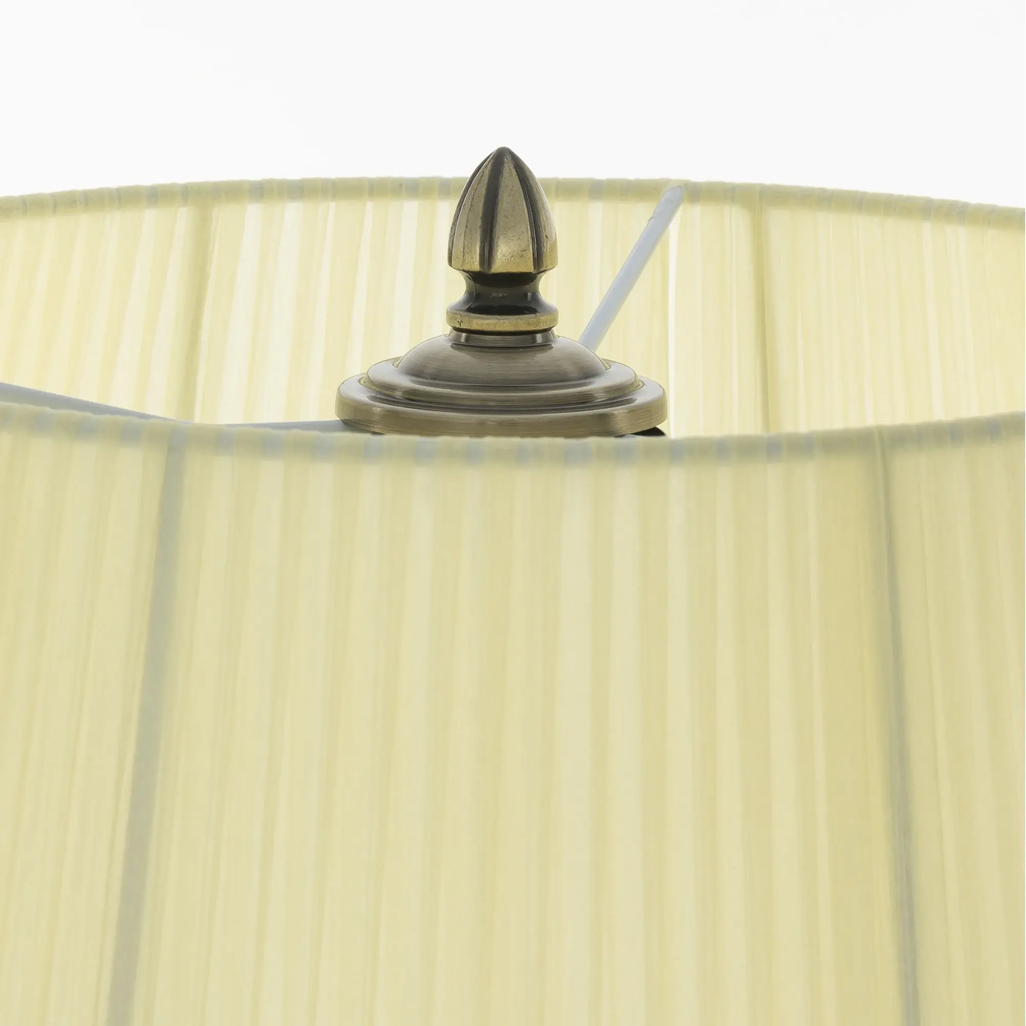 Элегантный торшер с абажуром Citilux Вена CL402933 выполнен в классическом стиле. Корпус металлический, благородного бронзового цвета. Устойчивое основание украшено искусным орнаментом, верхняя часть стойки с красивым витым декоративным элементом. Тканевый абажур из плиссированной полупрозрачной органзы кремового цвета окантован изящной тесьмой.