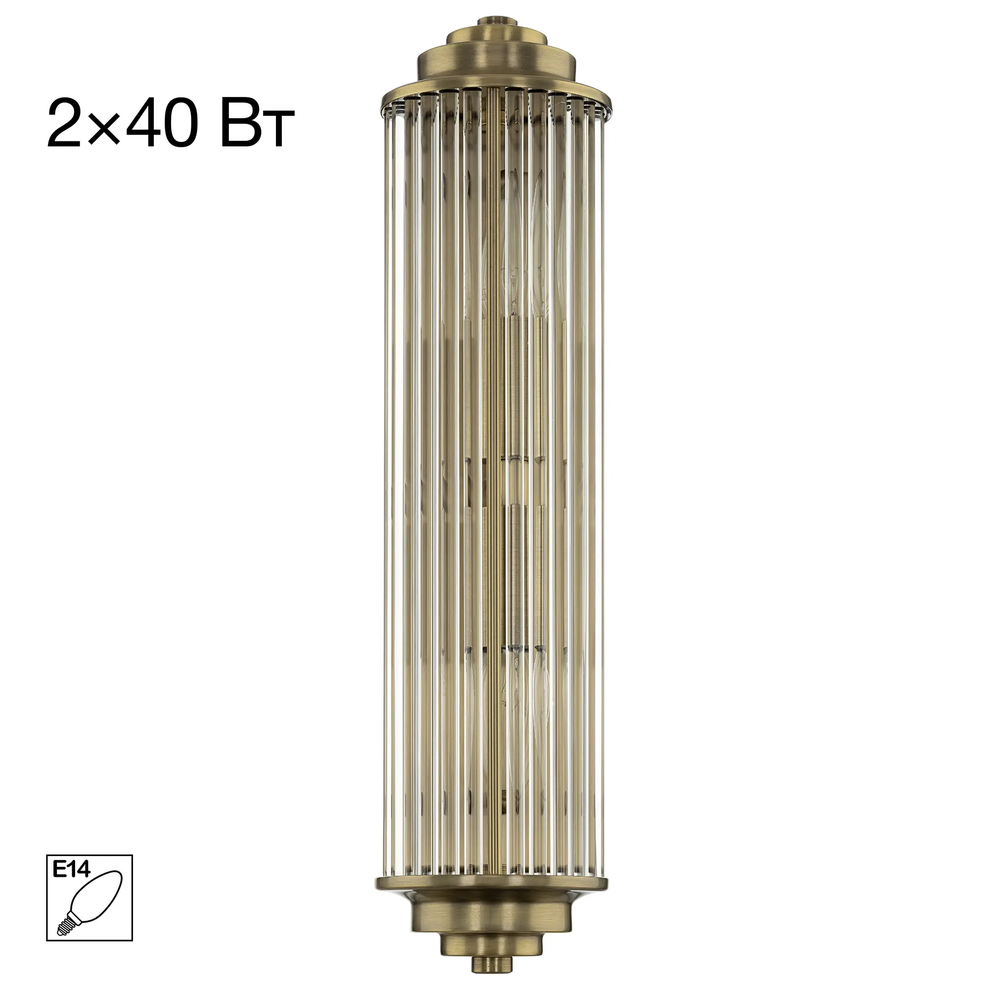 Источником света служат две лампочки с цоколем Е14 (не входят в комплект), максимальная мощность для ламп накаливания — 40Вт. Тип крепления светильника — планка.