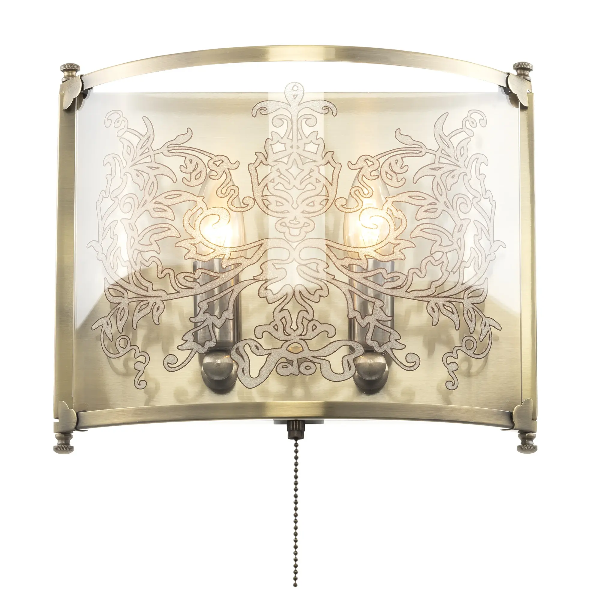 Утонченное бра с выключателем Citilux Versal CL408323 в классическом стиле. Каркас модели изготовлен из металлического сплава с покрытием благородного бронзового цвета. Плафон из прозрачного стекла, украшенного симметричным двухцветным орнаментом.