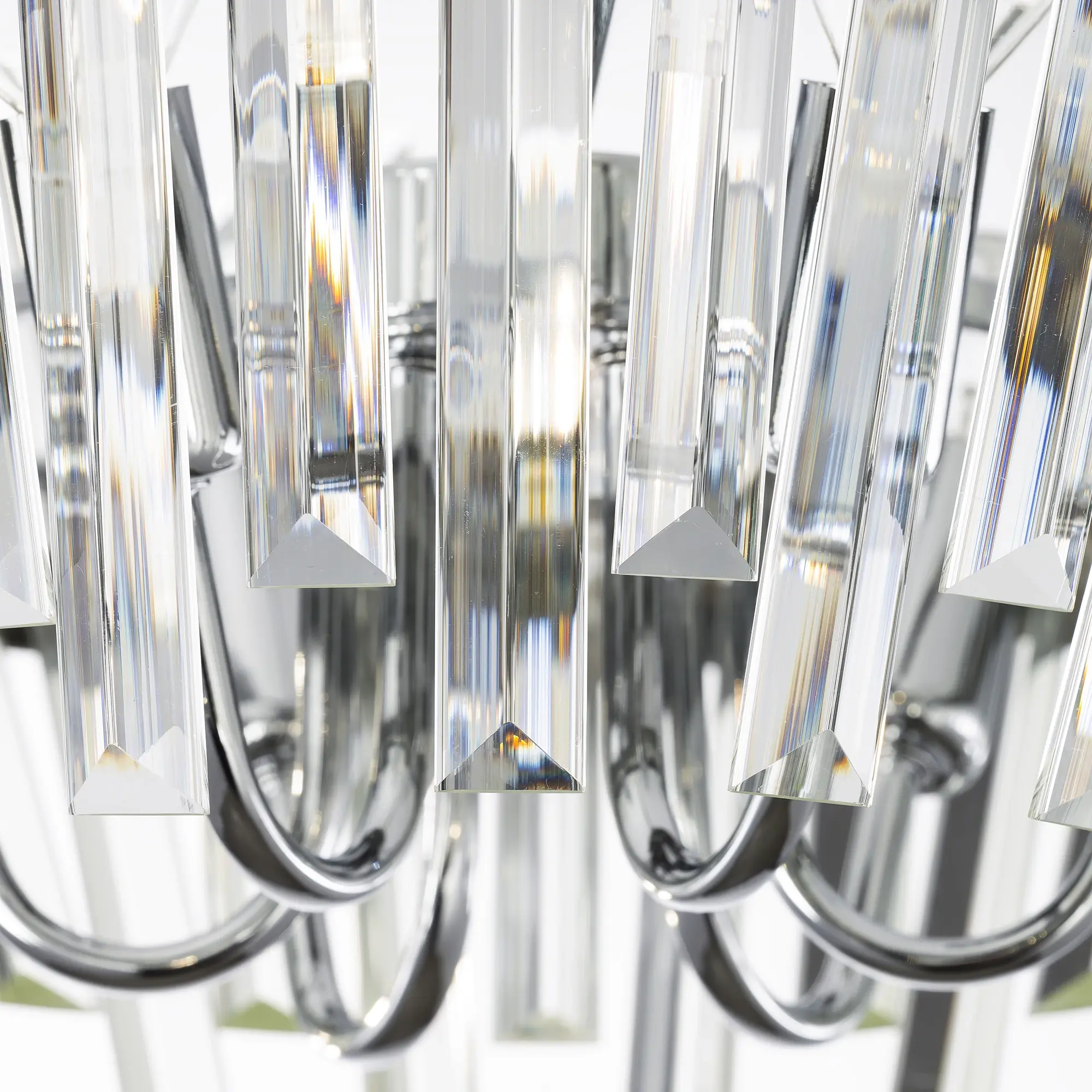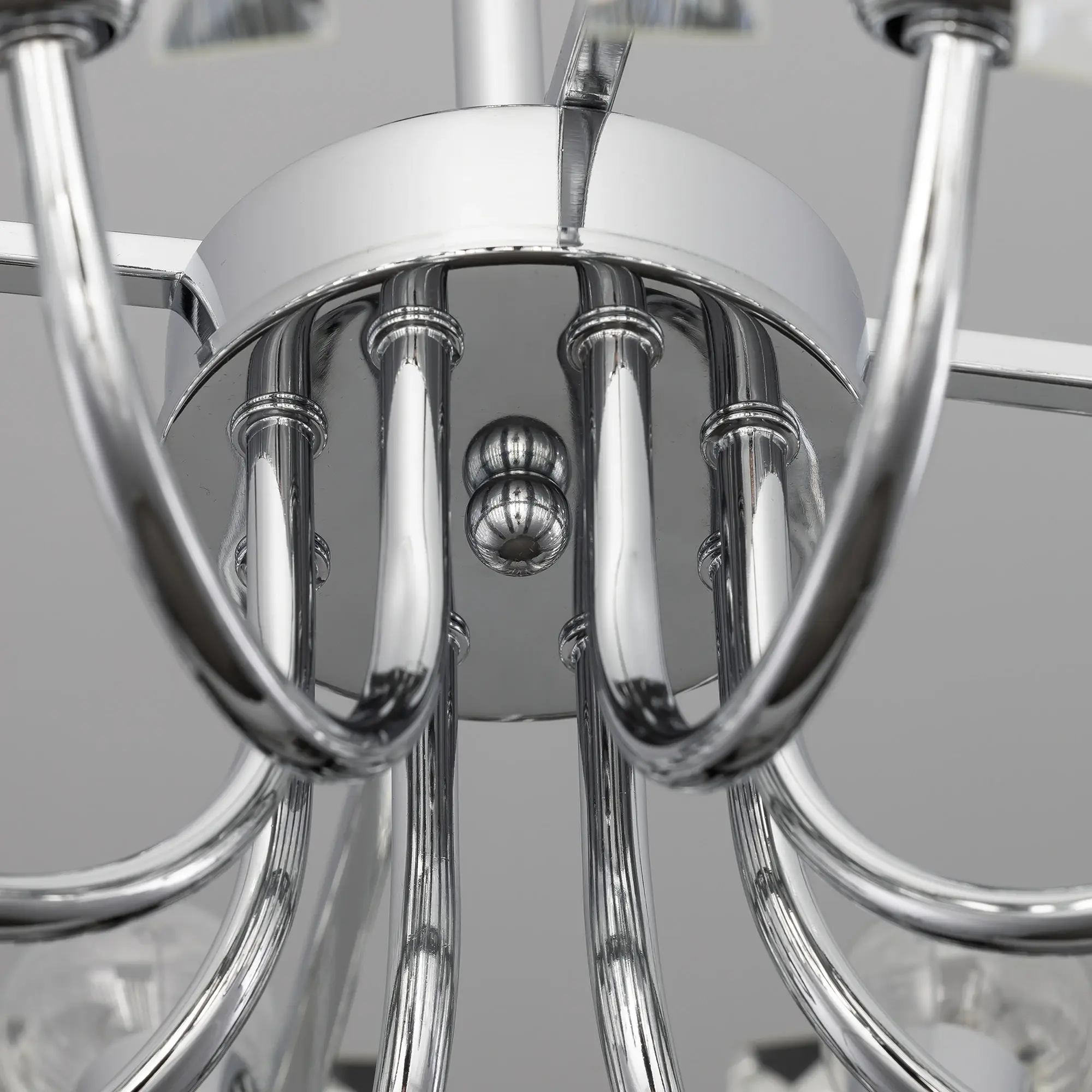 Хрустальная люстра Citilux Вестерос CL307180 выполнена в стиле современной классики. Корпус металлический с глянцевым хромированным покрытием. Хрустальные элементы крупные, кристально прозрачные с современной огранкой, великолепно рассеивают свет.