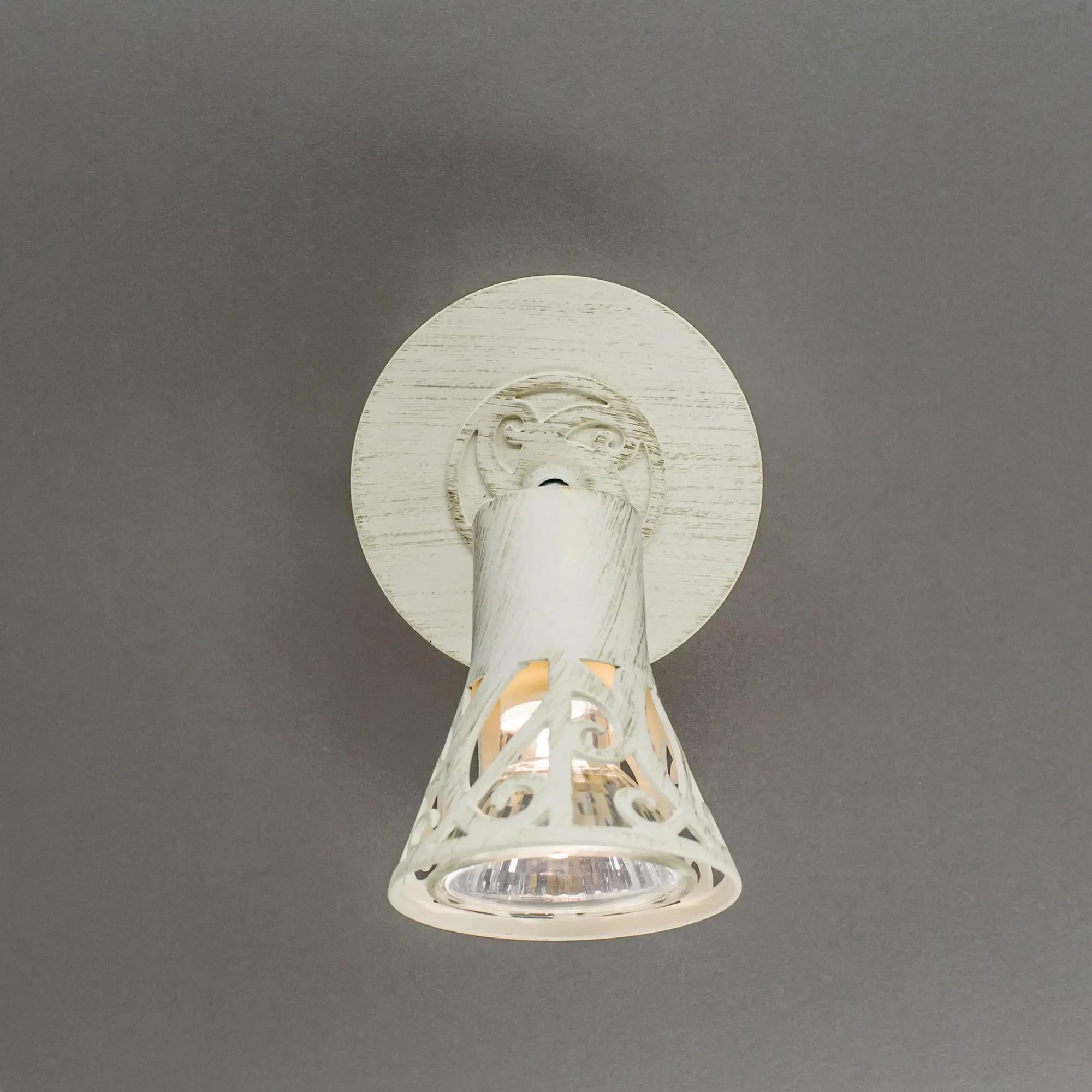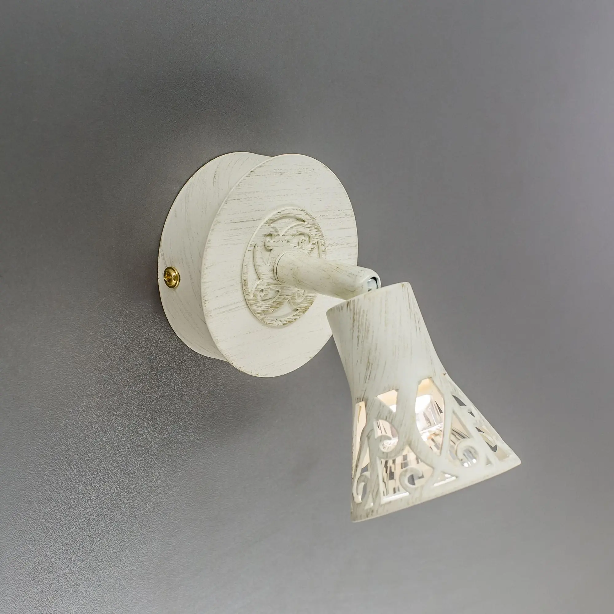 Спот Citilux Винон CL519515 — настенно-потолочный светильник в классическом стиле с металлическим корпусом молочного цвета и золотистой патиной. Плафон поворотный, украшен изящными узорами, можно направить в любую сторону. В изделии используется 1 лампа с цоколем GU10 максимальной мощностью 50Вт для галогенных ламп. Светильник идеально подходит для общего и направленного (акцентного) освещения жилых и общественных пространств,